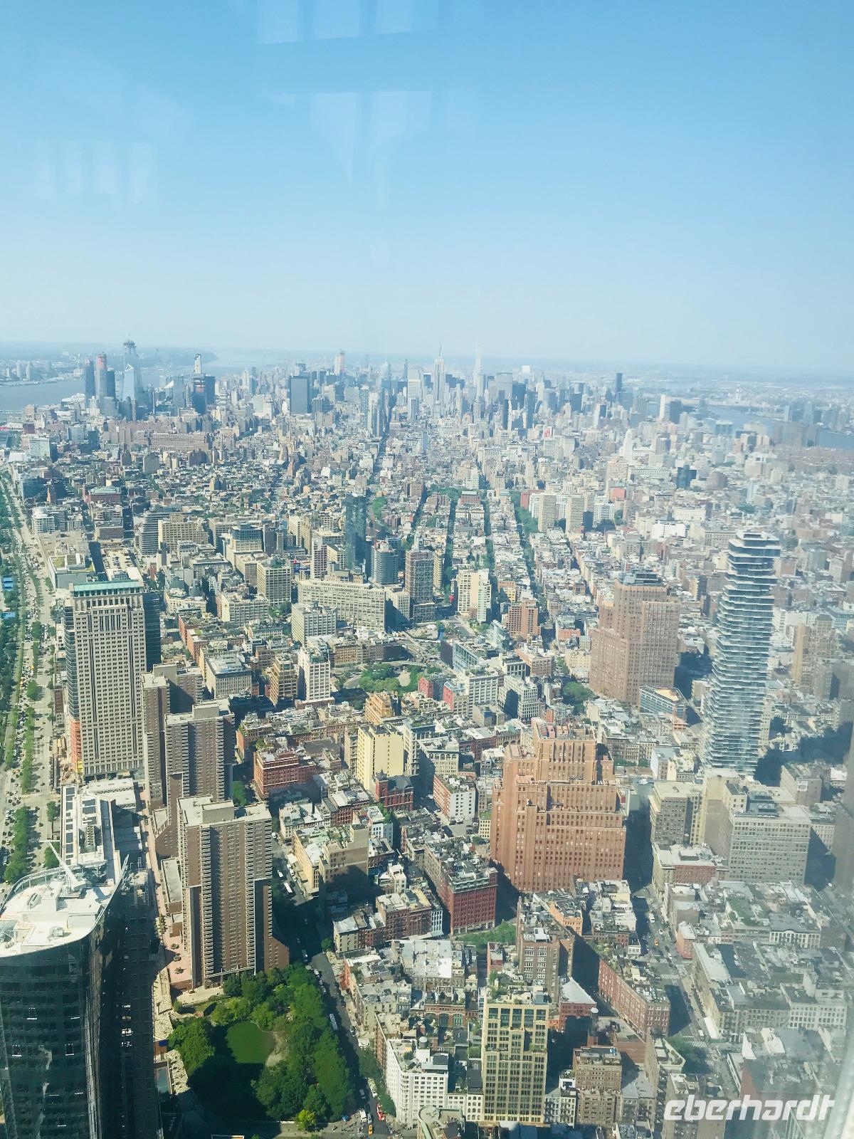 Am Nachmittag trafen wir uns alle am One Trade Center und fuhren gemeinsam hinauf. Allein die Auffahrt ist ein Event für sich, genauso wie die Show, die uns erwartete, bevor wir den Panoramablick über New York aus dem 104. Stockwerk genießen durften.