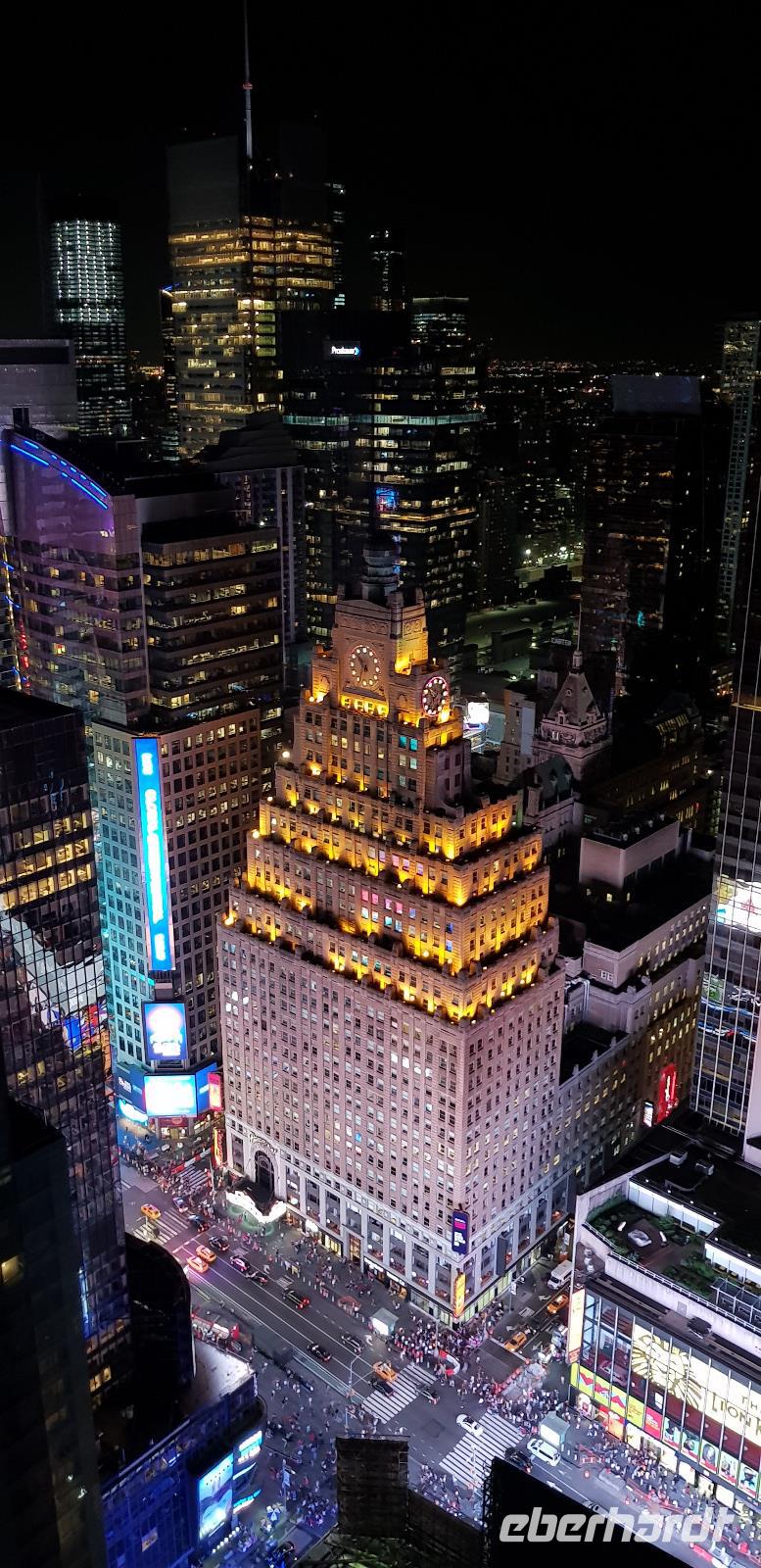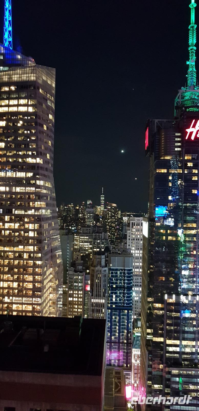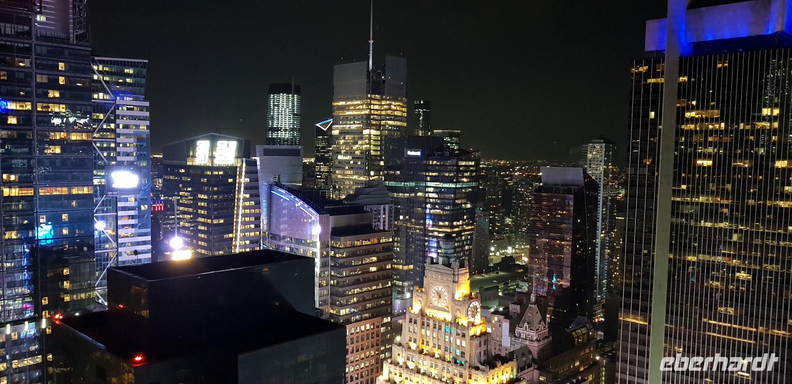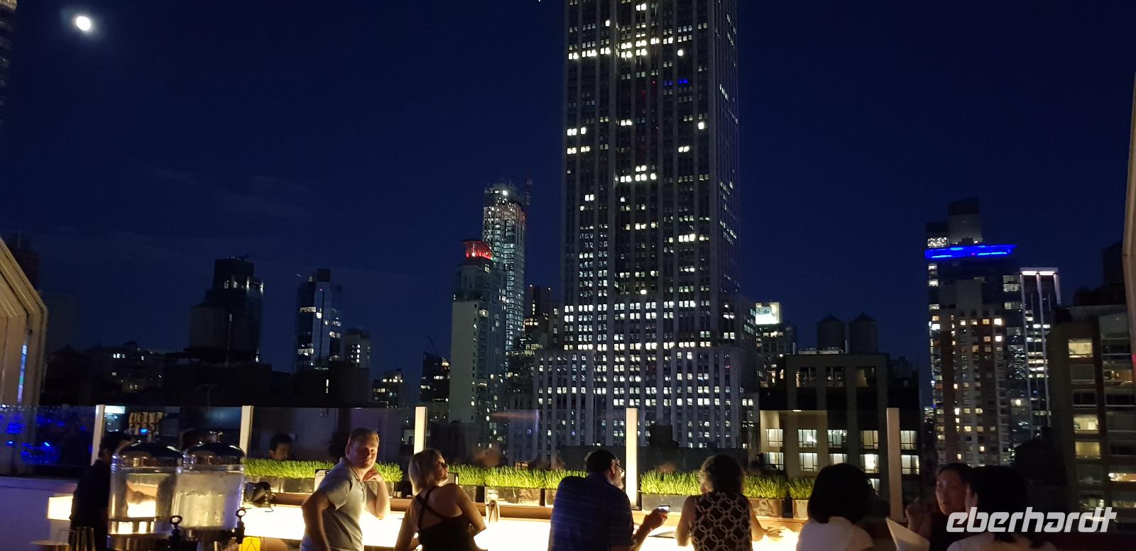 Nach dem Abendessen besuchen wir noch die Skybar „Bar 54" im Hyatt Hotel unweit vom Times Square und genießen die grandiose Aussicht auf das Lichtermeer.
