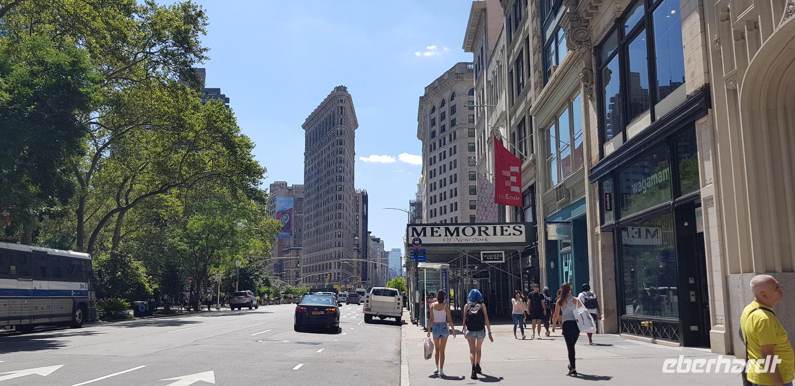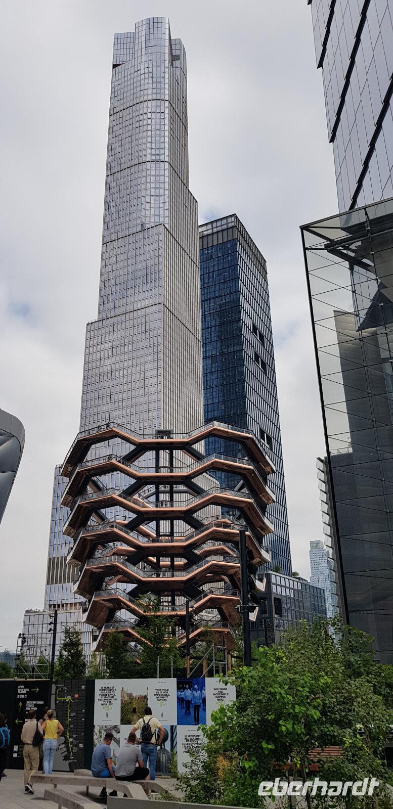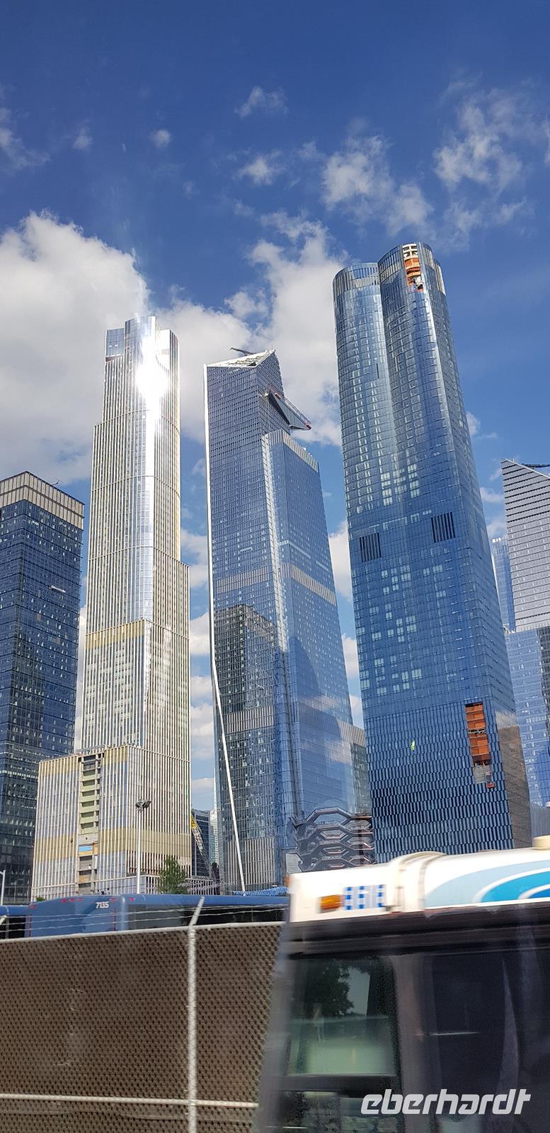 Weiter geht es zum ersten Wolkenkratzer der Stadt - dem Flatiron Building, frei übersetzt: Bügeleisen Gebäude - aufgrund seiner Form eines Bügeleisens. Anschließend erreichen wir Süd-Manhattan und den Ground Zero. Hier befanden sich bis zu den Anschlägen von 9/11 2001 die beiden Twin Towers. Heute erinnert nur noch das 9/11 Memorial mit den beiden Wasserbecken in quadratischer Form der beiden Türme und das Museum an die Terrorattacke von damals. Rings herum hat man neue und modernere Bürotürme errichtet, inklusive dem neuen One World Trade Center mit 542m Höhe, welches wir 2 Tage später noch besichtigen werden. Gleich um die Ecke liegt der Battery Park, von wo aus man einen tollen Blick in Richtung Freiheitsstatue und Ellis Island hat. Weiter geht es über die Manhattan Bridge nach Williamsburg, wo wir uns das jüdische Viertel einmal genauer anschauen. Hier sind wir wieder in einer komplett anderen Welt. Keine Hochhäuser, Ruhe und überall hebräische Schriftzeichen. Nach einer kurzen Fotopause fahren wir wieder nach Manhattan zurück in Richtung Hudson Yards am Hudson River gelegen. Hier fahren wir vorbei an den neu errichteten Wolkenkratzern und schließlich zum Hotel zurück.