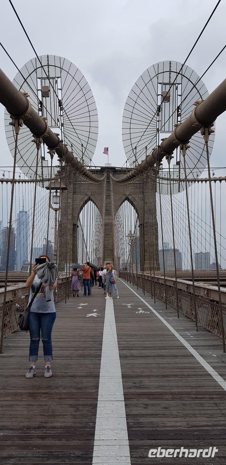 Aber New York hat noch mehr Facetten: gegen Mittag geht es für unsere Gruppe weiter von Manhattan nach Brooklyn. Natürlich darf hier auch ein Spaziergang über die weltberühmte Brooklyn-Bridge nicht fehlen inklusive zahlreicher Fotostopps auf einer der ältesten Hängebrücken der Welt.