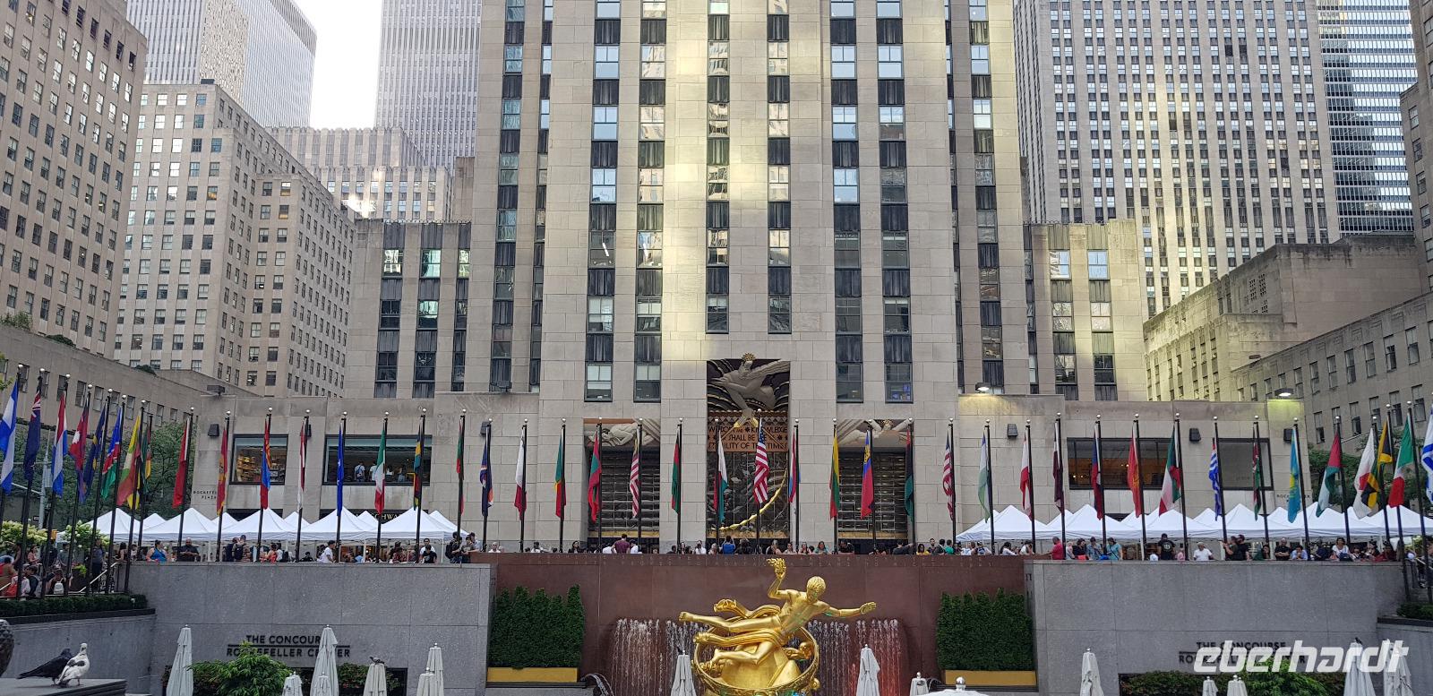 Gestärkt vom typisch amerikanischen Frühstück im Hotel geht es heute für die Gruppe mit der Fähre zunächst nach Liberty Island, auf der die Freiheitsstatue steht. Die Gäste erkunden die Insel auf eigene Faust oder bei einem Rundgang mit deutschsprachigen Audioguides. Anschließend fahren wir weiter nach Ellis Island. Auch hier stehen die kostenlosen Audioguides zur Verfügung. Alle Besucher haben hier die Möglichkeit die Gegend im eigenen Tempo, individuell zu erkunden. Am Nachmittag fahren wir dann mit der Fähre zurück zum Battery Park. Auf dem Weg ins Hotel machen wir außerdem ein kurzen Fotostopp bei Clinton Castle. Am Abend steht ein weiteres New York Highlight auf unserem Plan: das Rockefeller Center. Hier haben die Gäste die Möglichkeit zu Abend zu essen. Den Sonnenuntergang erleben wir vom besten Aussichtspunkt der Stadt: dem Dach des Rockefeller Centers, Top of the Rocks, von dem die Gäste auch einen überragenden Blick auf das Empire State Building, den Central Park und die gesamte Stadt haben.