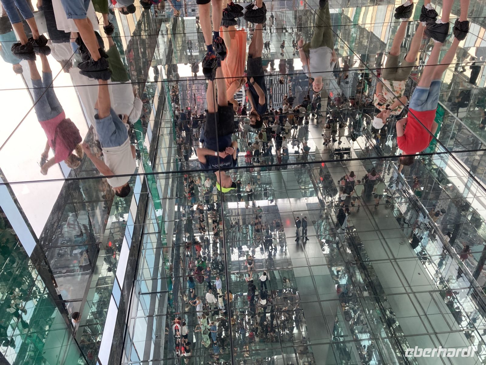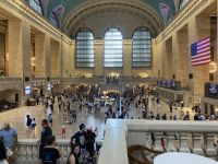 Der Sonntag war ideal für fast völlig staufreies fahren in Manhattan. So konnten wir viele Punkte anfahren und dort aussteigen. Manche dieser Punkte können eventuell an einem normalen Wochentag zeitlich gar nicht geschafft werden. Wir begannen am Lincoln Center, dass für den Sommer seinen Vorplatz umgebaut hatte. An diesem Zentrum der Klassik war jetzt auch Platz für Disco und Salsa! Am Central Park konnte jeder ein Foto mit dem Park im Vordergrund und den Bleistift-Wolkenkratzern im Hintergrund machen. Am Rockefeller Center wurde ebenso ausgestiegen wie beim Bahnhof Grand Central mit seiner imposanten Halle und den Tuschel/Flüster-Ecken. Nächster Halt war der beeindruckende Triumphbogen am Washington Square. Es folgte ein kurzer Spaziergang durch Little Italy und Chinatown. Im Battery Park City Brookfield Place war ein idealer Platz zum Mittagessen. Es gab viele Angebote und beim Essen einen herrlichen Blick über den Hudson. Nächster Stopp: Pier 17 South Street Seaport mit Blick auf Brooklyn Bridge und Brooklyn. Letzter Stopp: Tudor City mit einem versteckten kleinen Park und dem Gang vor das Gebäude der UN und dem Blick auf das deutsche Generalkonsulat. Abends ein weiterer Höhepunkt mit der Auffahrt zur Aussichtsplatform One Vanderbilt ganz in der Nähe des Grand Central. Die Sonne ging unter, die Lichter in den Hochhäusern an. One Vanderbilt ist eine Event Location in großer Höhe, die Stimmung oben ist gut, auch unten auf dem Fußweg zurück zum Hotel oder auf der Fahrt mit der METRO.
