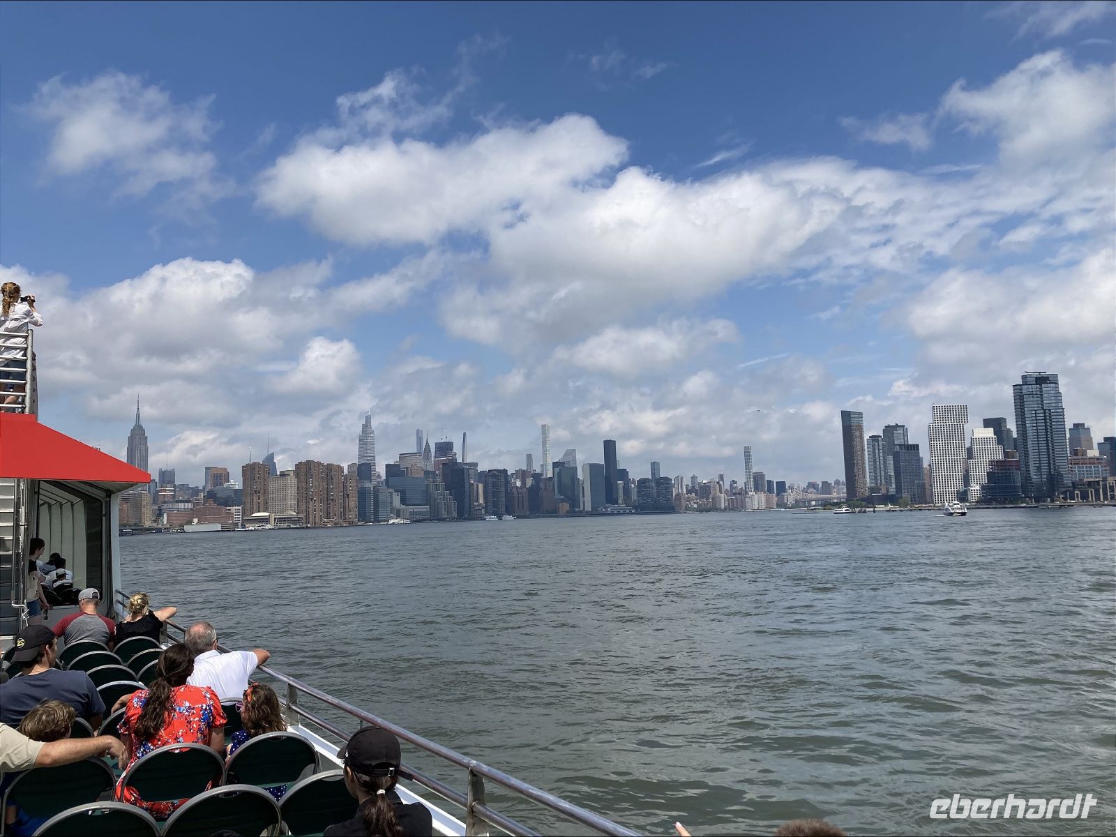 Nach dem Frühstück benutzt die Gruppe zum ersten Mal geschlossen die Wochenkarte der METRO, die alle erhalten haben. Auf eine U-Bahn wartet man in New York nur kurz, die Züge fahren sehr häufig. Wir steigen in der 42. Straße in einen Bus um und kommen direkt beim Schiff an. Unsere Fahrt findet bei herrlichem Wetter zunächst in südlicher Richtung auf dem Hudson Stadt statt, wir biegen in den East River ein, sehen Brooklyn Bridge und Brooklyn, und fahren bei der Rückfahrt dicht an der Statue of Liberty vorbei. Die Ausblicke auf die sky-line Manhattans sind überwältigend. Das neue Stadtviertel Hudson Yards mit The Vessel und The Shed steht als Nächstes auf dem Programm. Danach wandern wir auf der High Line nach Süden. Die ehemalige, erhöhte Güter-Bahnstrecke ist wunderbar eingegrünt, eine echte Oase in der Häuserwüste Manhattan. Mittagspause im quirligen Chelsea Market, dann führt uns der Weg über Little Island, eine wunderbare neue Parklandschaft über dem Wasser des Hudson zurück durch Chelsea zur METRO. Der Rest des Tages lässt sich sehr gut nutzen für eigene Entdeckungen. Einige Gäste fahren hinauf auf das Empire State Building, ganz in der Nähe unseres Hotels, andere nutzen die Zeit, um das 9/11 Museum zu besuchen. Und zum Abendessen findet sich immer ein - oft koreanisches - Lokal in der 32. Straße, um die Ecke von Hotel. Oder steht noch das Kaufhaus MACY'S auf dem Programm? Bitte! Es liegt ganz in der Nähe des Hotels!