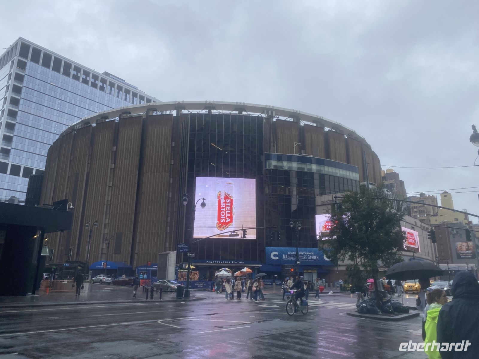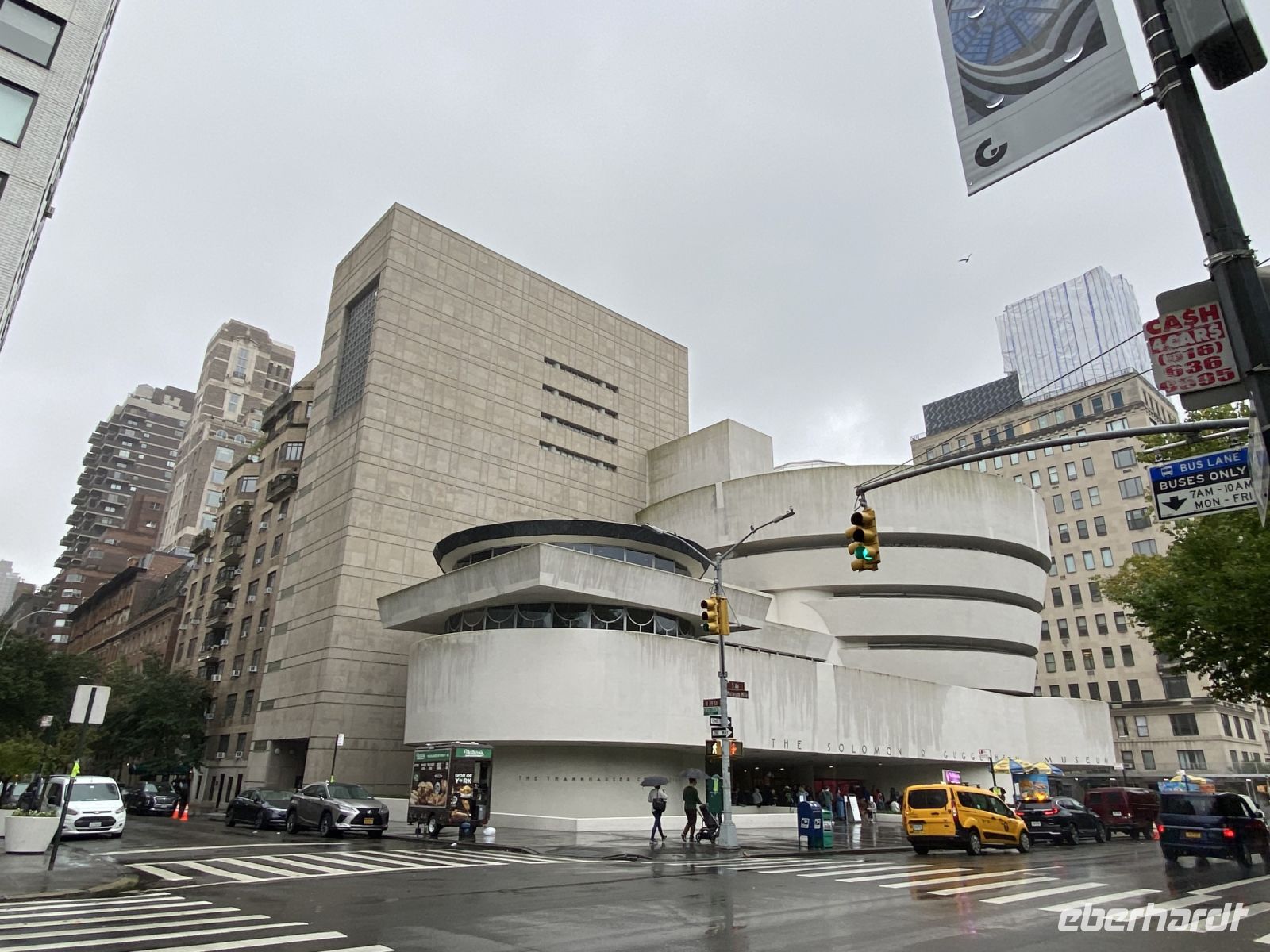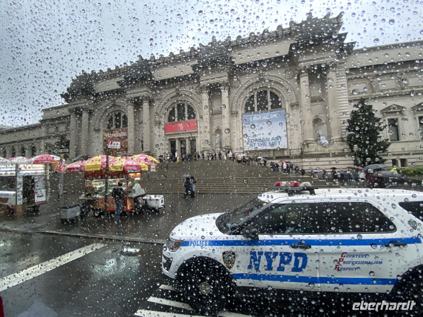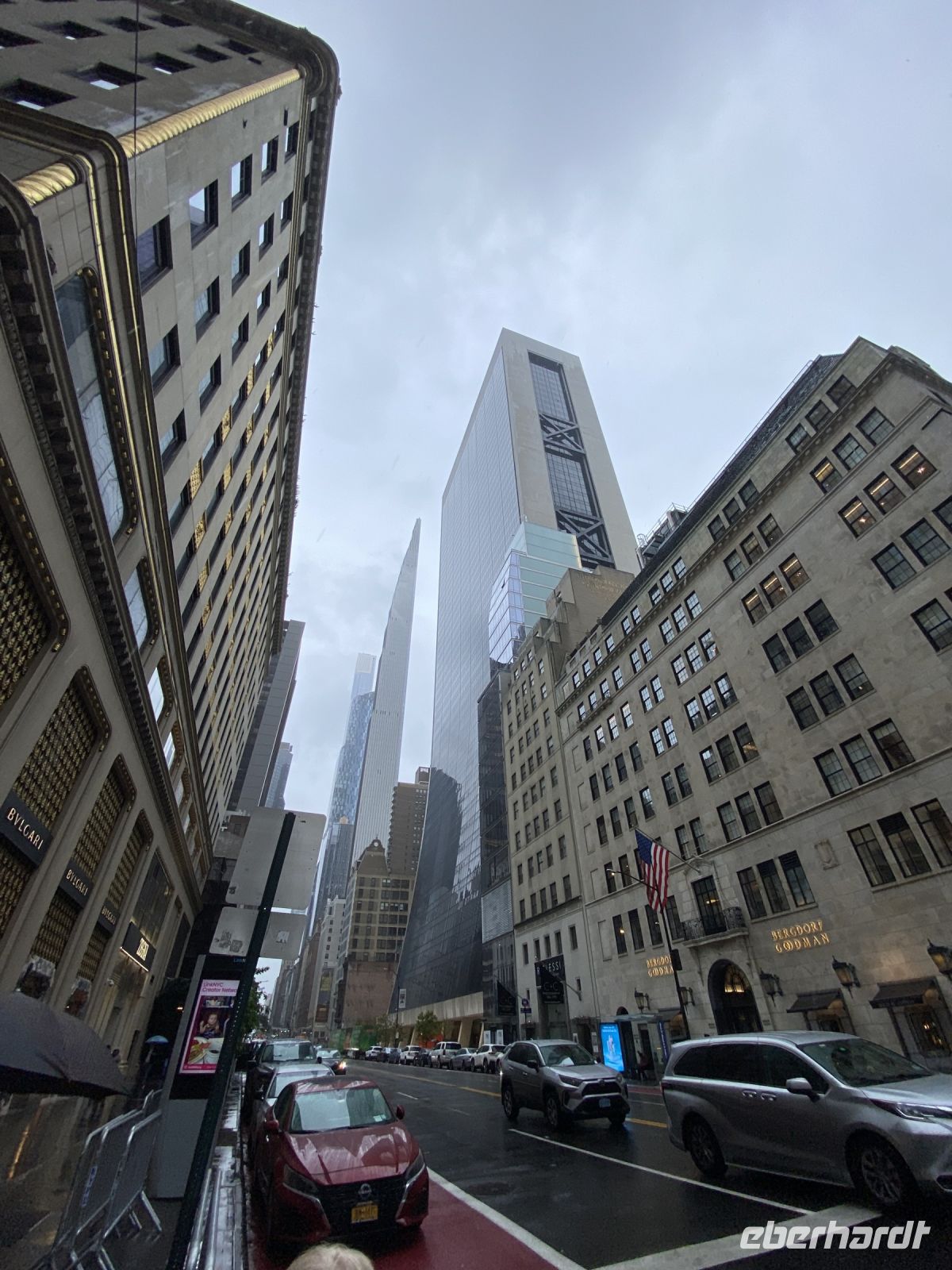 Bewaffnet mit festen Schuhen, Regenjacken und Schirmen stehen wir bereit, um mit Esther Manhattan zu erobern. Auf unserer ganztägigen Stadtrundfahrt fahren wir den Broadway entlang, umfahren den Central Park mit einem Stop am Gedenkort für John Lennon und weiter gehts vorbei am Bügeleisenhaus, an zahlreichen Museen und Geschäften in Mahnhattan. Wir halten selbstverständlich auch an an einem Geschäft….Tiffanys heisst einen immer willkommen, selbst mit patschnassen Regenschirmen. Und weil es sich anbietet, nutzen wir gleich nebenan für eine kurze technische Pause. Der mittlerweile eingeführte, neue 47. Präsident bietet gute Toiletten und schon geht es weiter zum 9/11 Forum, dem Gebiet um die Ereignisse des Terroranschlages. Beeindruckend stehen die Erinnerungsorte, stehen die Neubauten, aber wir werden während unseres Aufenthaltes hierher zurück kehren, denn dieses Areal bietet so viel Geschichte, so viel Beeindruckendes. Esther ist gebürtige Schweizerin, sie wirkt bedrückt in Ihren Ausführungen, lebt sie schon zu lange in New York, die aktuellsten Entwicklungen, die wir nahezu alle global spüren, die Unruhe unter den Menschen findet auch hier statt. Wir hören zu und versuchen den Vergleich. Aber die Stadt ist so enorm, so gross und gewaltig, selbst im Stau stehend versuchen wir jeden Moment ausserhalb unseres Busses einzufangen.