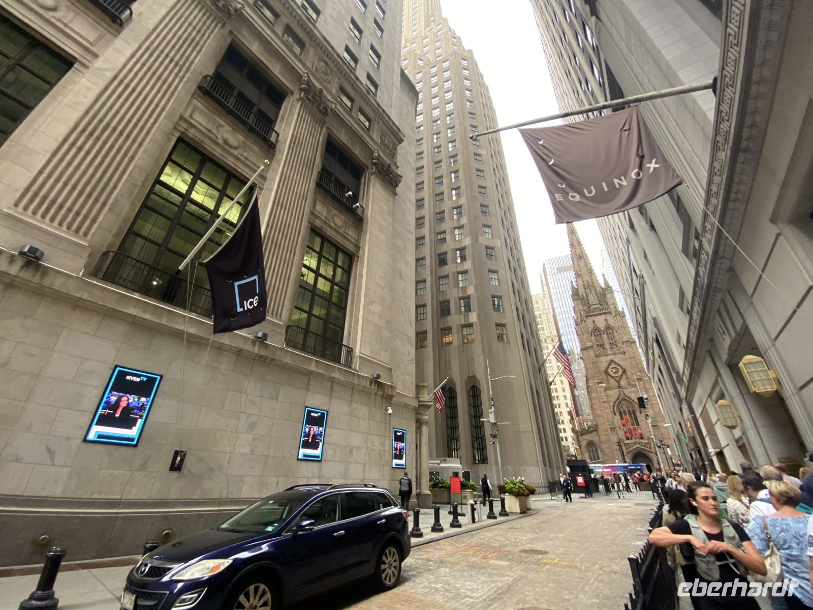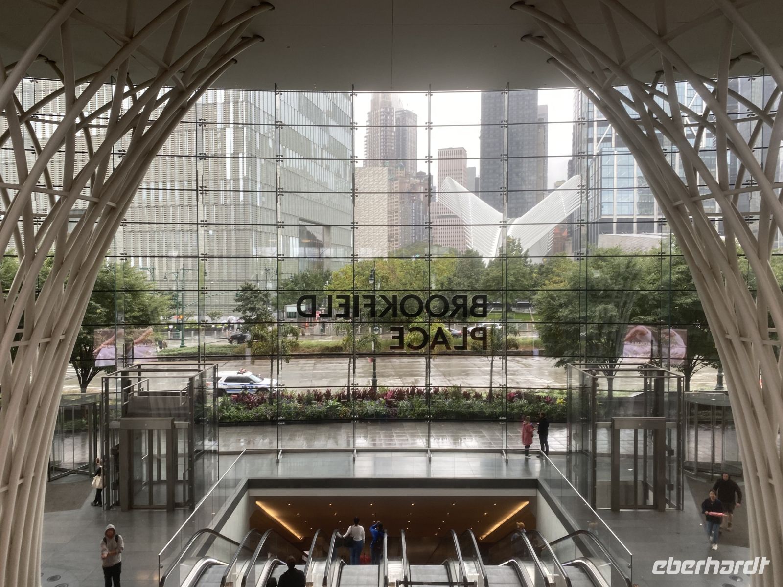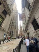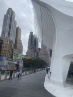 Im Süden Manhattans steigen wir aus und erlaufen Financial District; Charging Bull, Wall Street, Federal Hall und Trinity Church. 9/11 memorial - Areal erreichen wir und man spürt tatsächlich eine Art Bedrücktheit, etliche Marker erinnern an den Terroranschlag vom 11. September….erneut mache ich auch in meiner Reisegruppe die Erfahrung, dass so ziemlich jeder genau weiss, wo er damals war, was er getan hat, als zeitgleich die Türme des WT-Centers zusammengebrochen sind. Das OWTC, gelungener Neubau, höchster Turm, der Stadt führt mit seiner erhabenen Ruhe und dem Ausblick auf die Stadt die Atmosphäre fort, die unten herrscht.