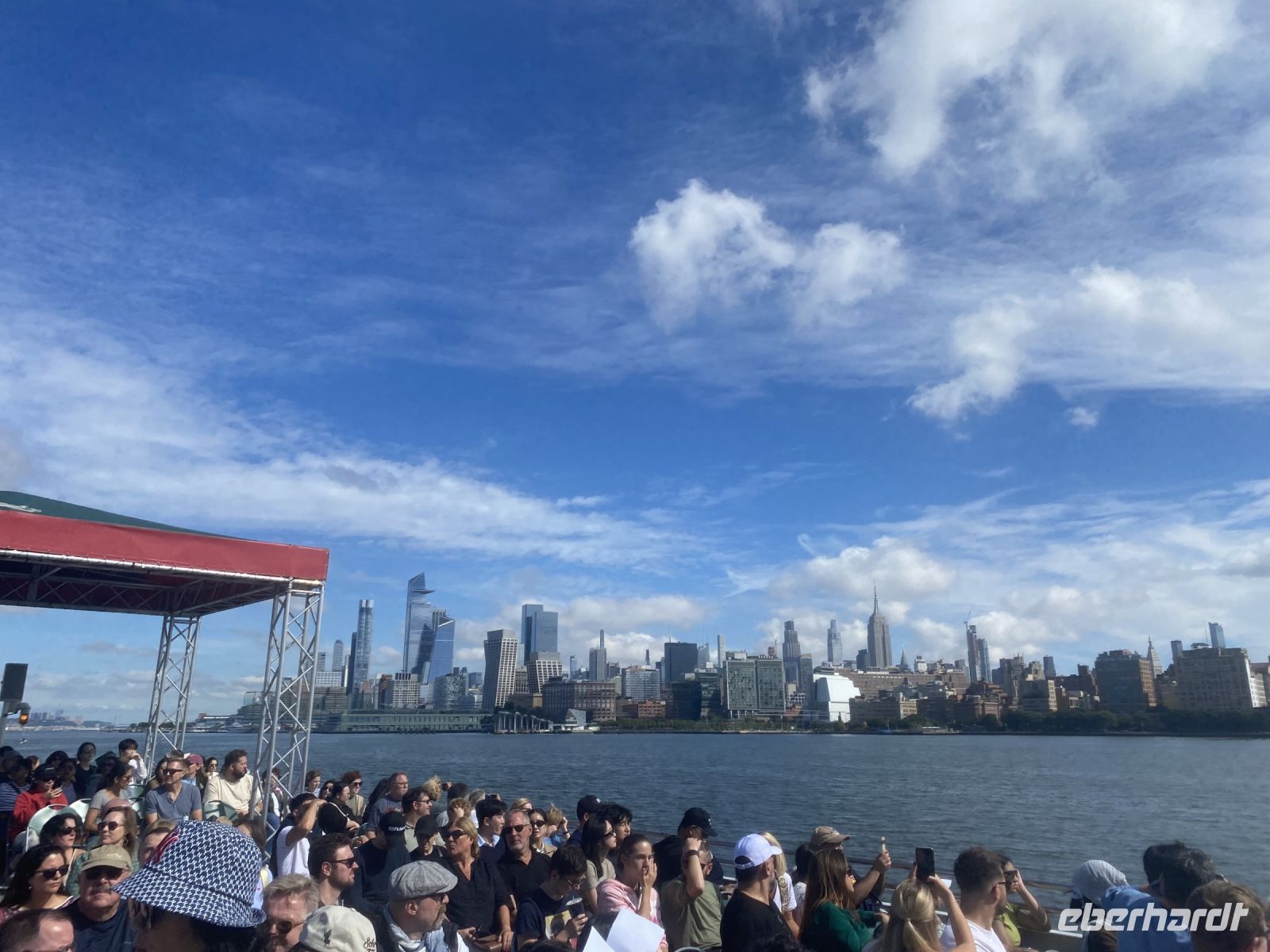 Nahezu alle Gäste haben sich an diesem Tag dazu entschlossen, mit mir Manhattan per Schiff zu umrunden. Das Wetter ist mit uns, keine Regenschirme notwendig, wenn auch dabei……wir laufen einmal auf die andere Seite der Halbinsel zum Pier, um zu unserer Manhattan Cruise zu gelangen.