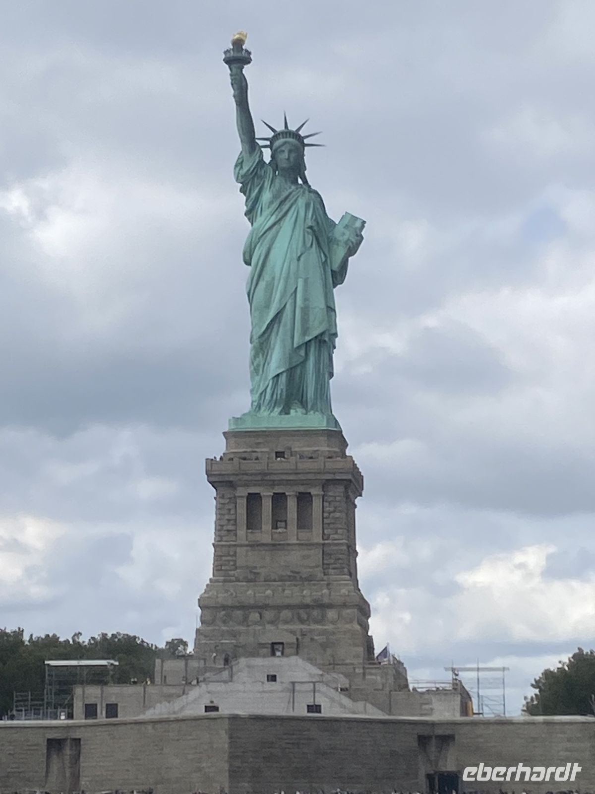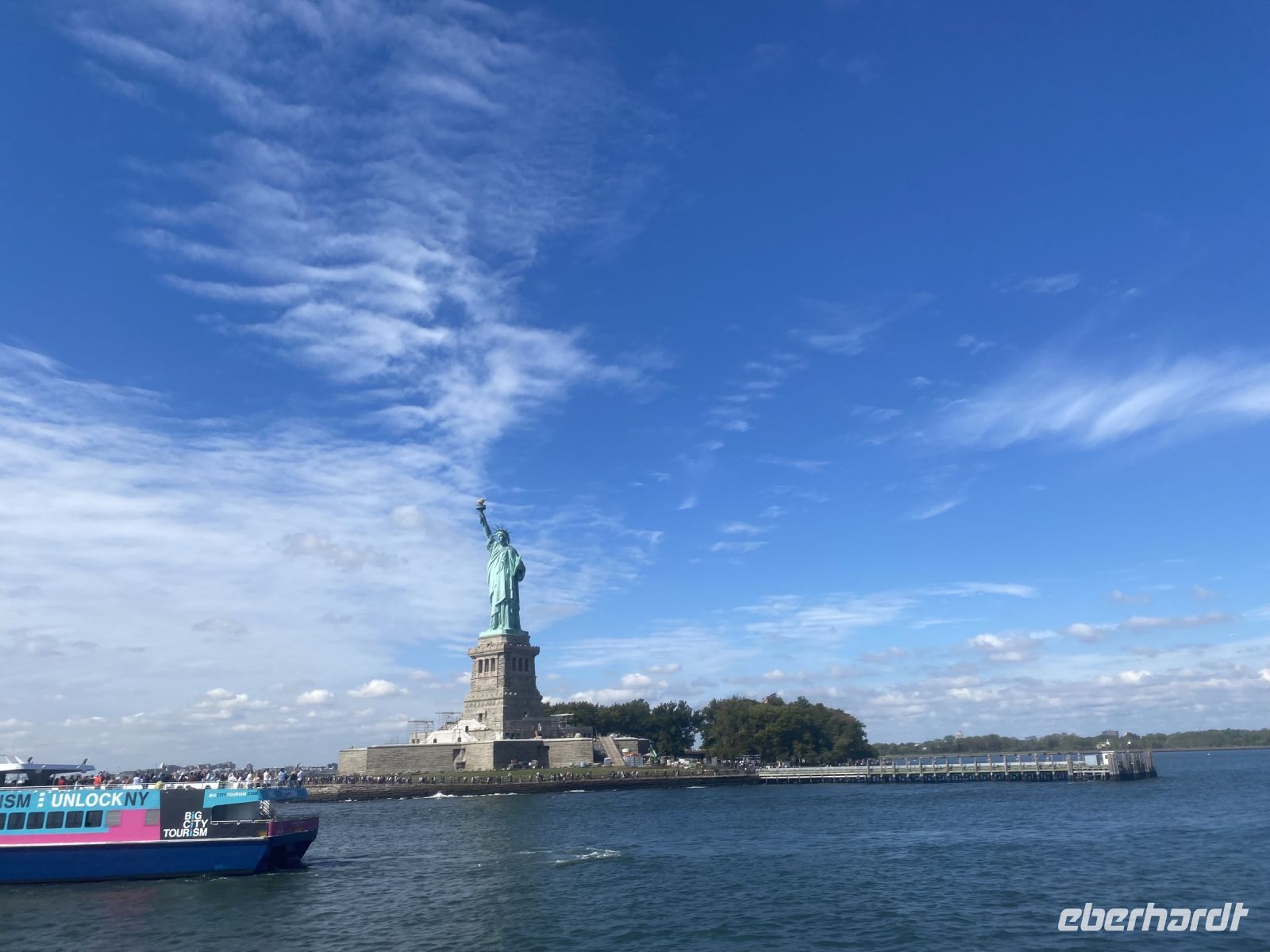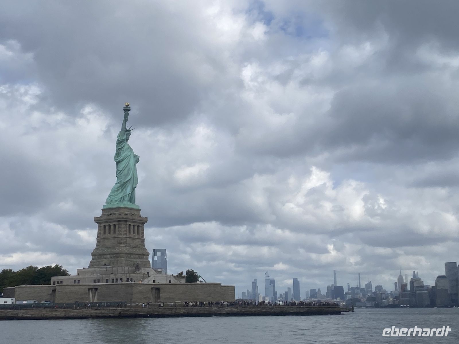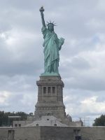 Am frühen Morgen fahren wir wieder in den Süden Manhattans, hier in den Battery Park, wo uns schon kurz nach dem Verlassen der U-Bahn alles in Richtung Anleger zur Freiheitsstatue lenkt….per Boot geht es dann auch nach so einigen Kontrollen los….die Mengen an Menschen, die offensichtlich das selbe Ziel an diesem Tag haben, scheint gewaltig. Aber im Ergebnis ist die Prozedur eine top eingespielte und wir lassen uns von den vielen anderen Touristen gar nicht mehr beeindrucken….alles läuft wie am Schnürchen. Per Kopfhörer erlaufen wir die Insel der Freiheitsstatue, ihre Geschichte sehr beeindruckend. Was für uns heute nicht mehr unmöglich scheint, war zu unserem Glück für die Visionäe eines anderen Jahrhunderts auch schon denkbar, unfassbar mit welchen Mitteln und Möglichkeiten Menschen so etwas wie diese Statue realisiert haben. Aber irgendwie steht die Geschichte, anzusehen im gleichnamigen Museum auf der Insel, auch gleichsam für ganz Manhattan. All die großen und weltbekannten Wolkenkratzer sind einer Zeit entsprungen, in der Technologien wie wir sie heute voraussetzen, undenkbar waren. Die Menschen haben mit körperlichem Einsatz Unwahrscheinliches geschaffen.