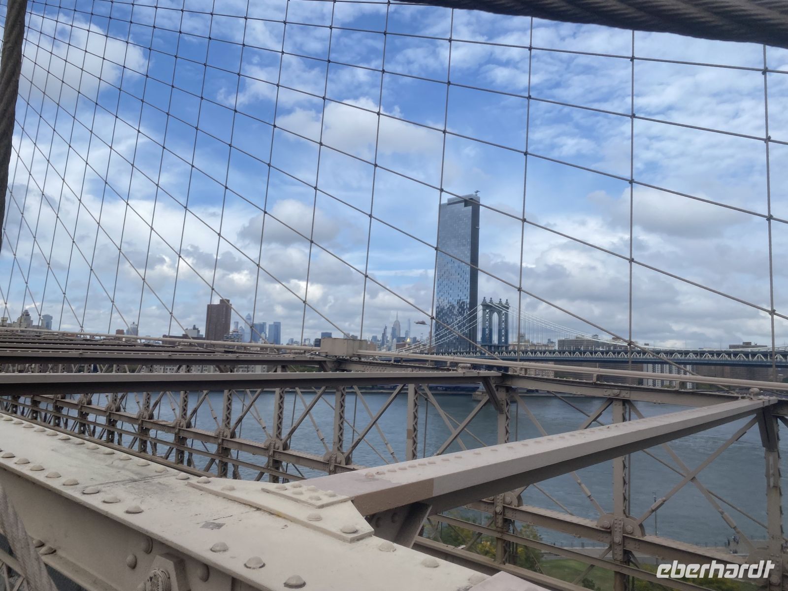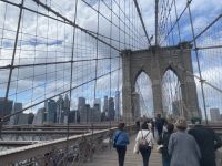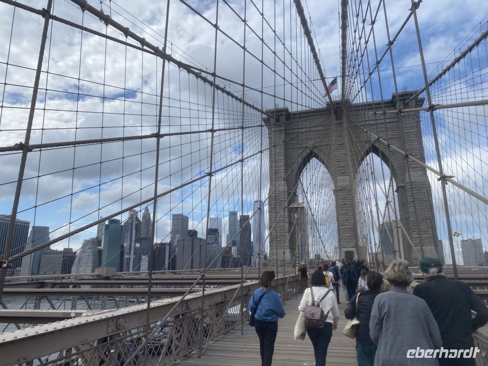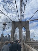 Und wieder halten wir unsere Metrokarten mit hoher Aufmerksamkeit für die sensiblen Einlesegeräte bereit… wir fahren nach Brooklyn. Dabei ist der Stadtteil selbst eher zweitrangig, eines der bedeutendsten Sehenswürdigkeiten der Stadt ist unser Ziel, denn wer kennt sie nicht, die unendlich genutzten Aufnahmen der Brooklyn Bridge, wenn man von der Stadt, die niemals schläft spricht. Und es scheint fast egal, dieses Bauwerk am Tag oder bei Nacht zu überqueren, es ist einfach ein Symbol, ein beeindruckendes. Also schiessen wir hier unsere eigenen Fotos, selbst Reiseleiter müssen es immer wieder tun….ein wunderbarer Moment, genau hier sein zu dürfen….jetzt!