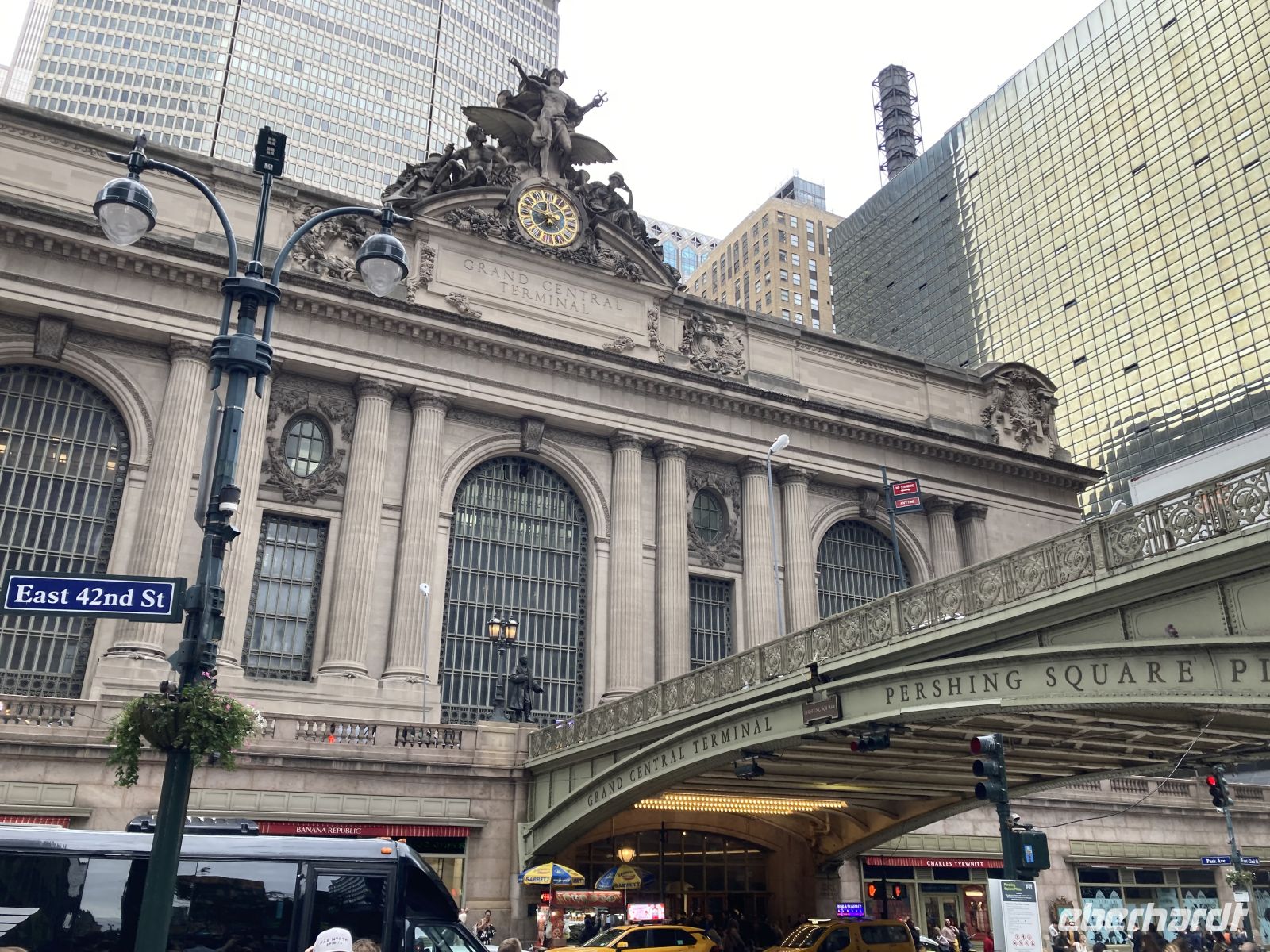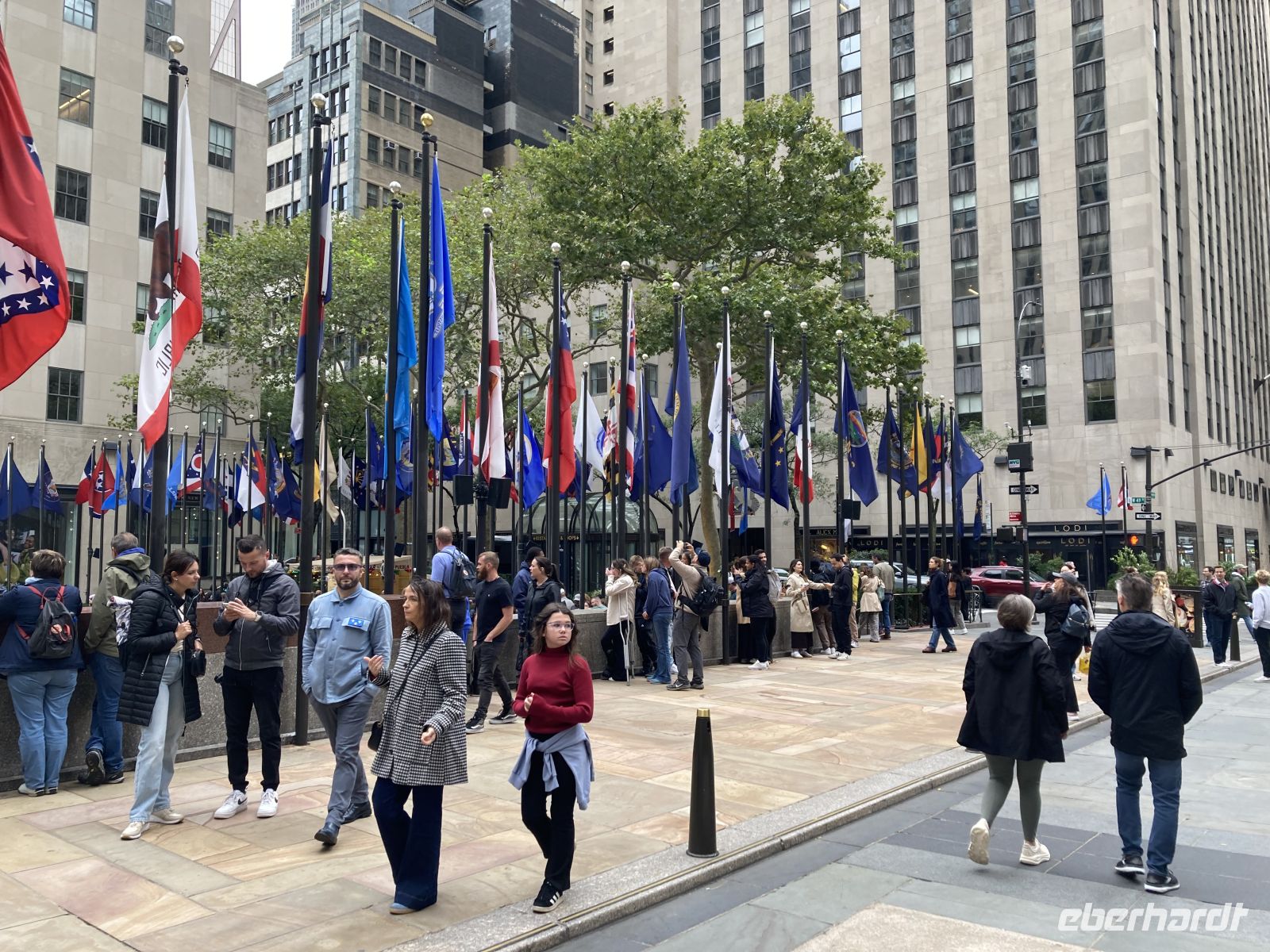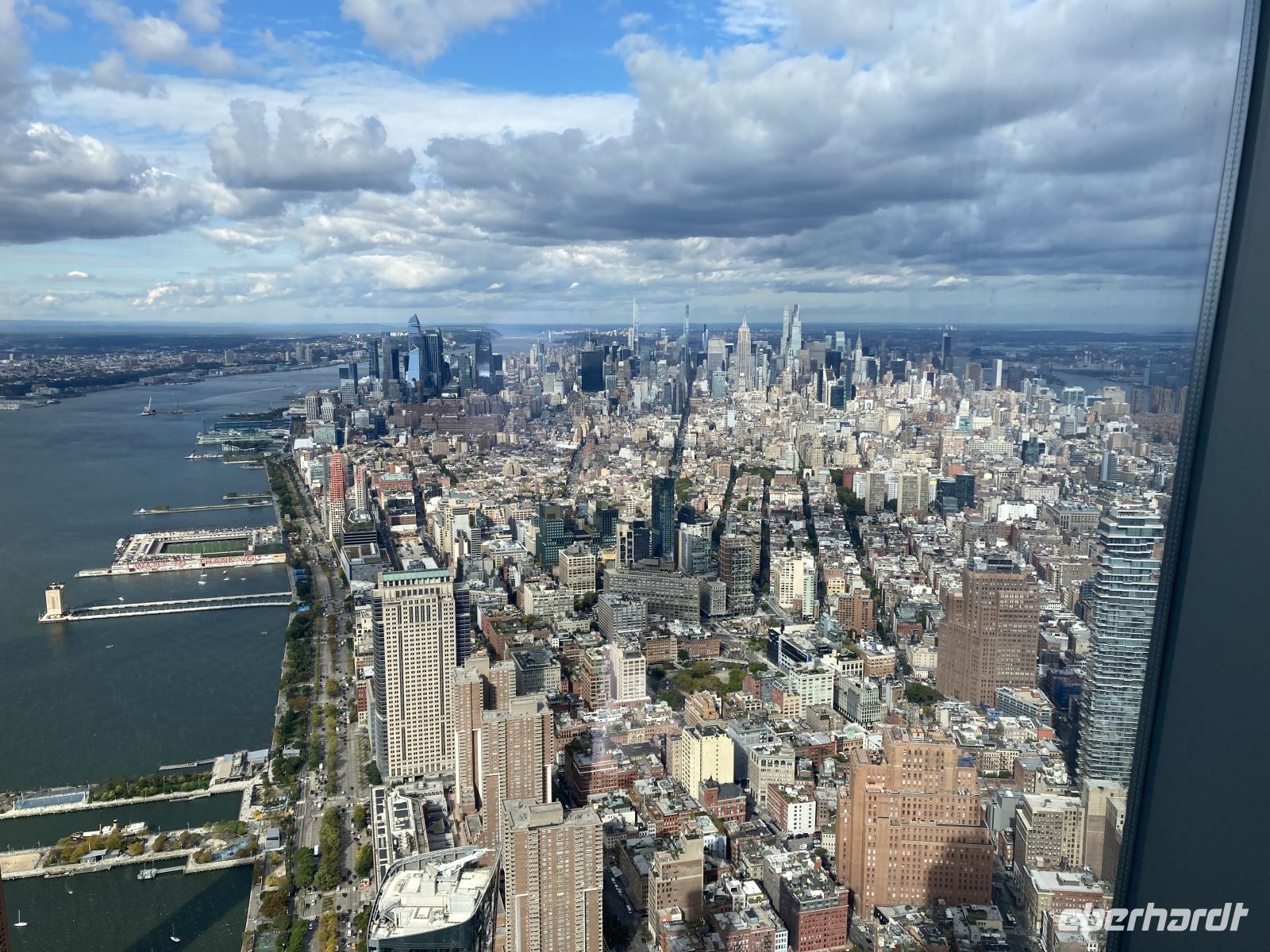 Eine altersmäßig bunt gemischte Gruppe hat sich bei Gate Z 25 des Frankfurter Flughafens versammelt und freut sich auf die nächsten Tage in Manhattan. Schnell ergeben sich erste, freundschaftliche Gespräche. Das Trinkgeld wird eingesammelt, dann geht es in die bewährte B 747 der Lufthansa. Der Flug ist komplett ausgebucht. Die Zeit vergeht schnell. Die Landung ist mehr als pünktlich. Wir kommen schnell durch die Einreiseschalter, mit der von EBERHARDT zur Verfügung gestellten Information für die Beamten ist das sehr leicht. Alle Koffer sind mitgekommen. Unsere Stadtführerin Ingeborg wartet schon mit dem Bus und führt uns in schneller Fahrt zum Hotel in Downtown Manhattan. Nach dem Einchecken und kurzer Erfrischungspause im Hotel geht es zu Fuß zum Time Square, der uns überwältigend hell erleuchtet begrüßt. Viele Fotos werden gemacht, dann geht es zum Dinner im „Hard Rock Cafe“. Hinterher, in Deutschland ist es schon sehr spät geworden, geht es noch einmal über den Times Square, denn die Fotogelegenheiten sind einfach zu verlockend. Gegen 22:00 Uhr fallen alle erschöpft und erfüllt ins Bett. Ihre Uhren haben alle 6 Stunden zurückgestellt.