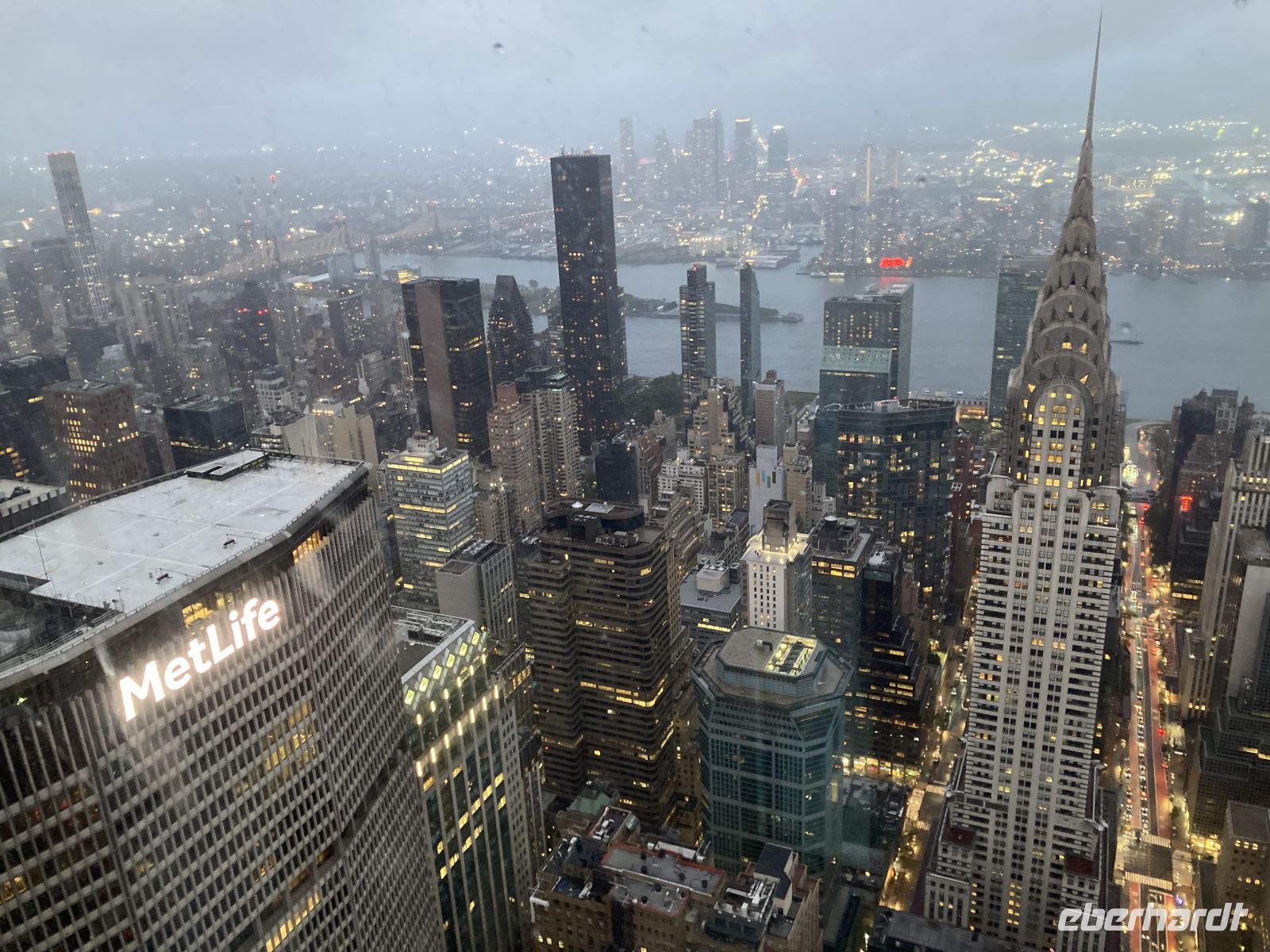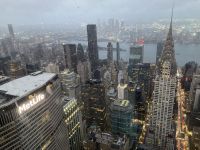 Nach kurzem Stopp im Hotel ein weiterer Höhepunkt des Tages: die Auffahrt zum TOP OF THE ROCK im höchsten Gebäude des Rockefeller Center. Wieder ein atemberaubender Blick über das hell erleuchtete Manhattan. Viele Gebäude erkennen wir wieder, der Times Square leuchtet hell unter uns.