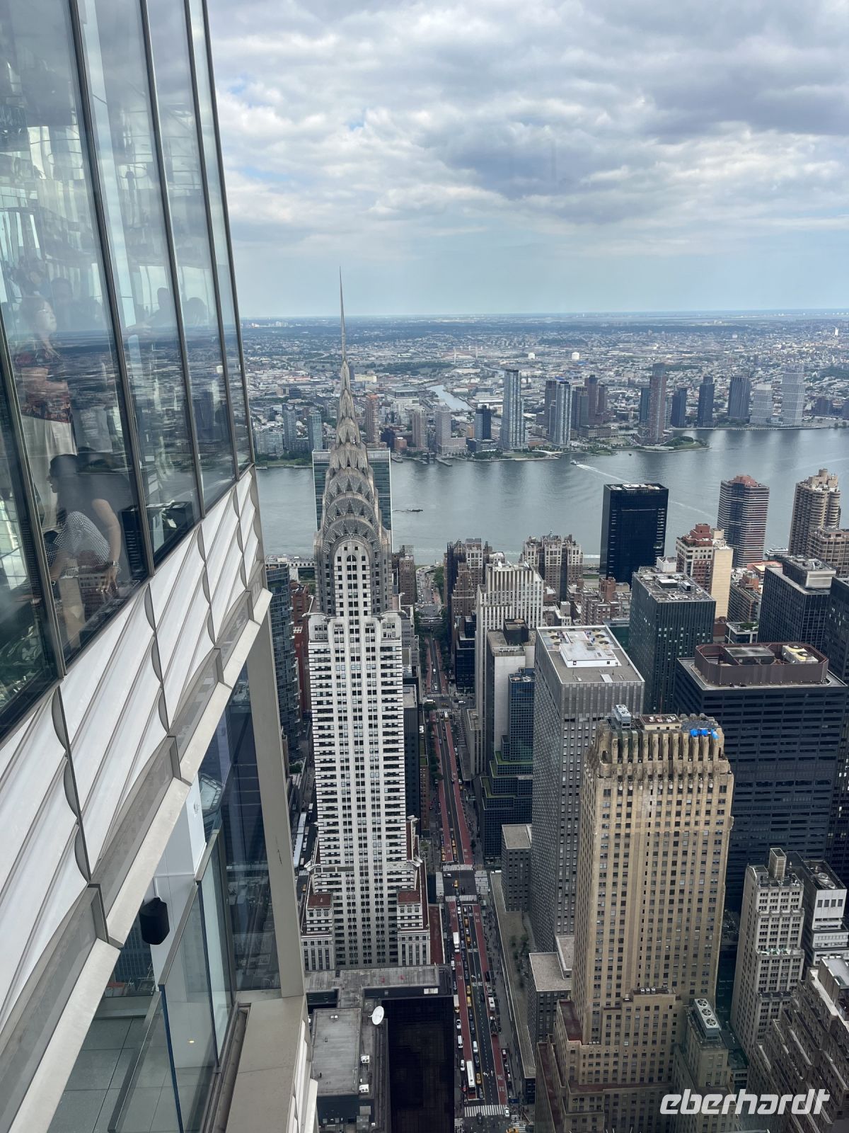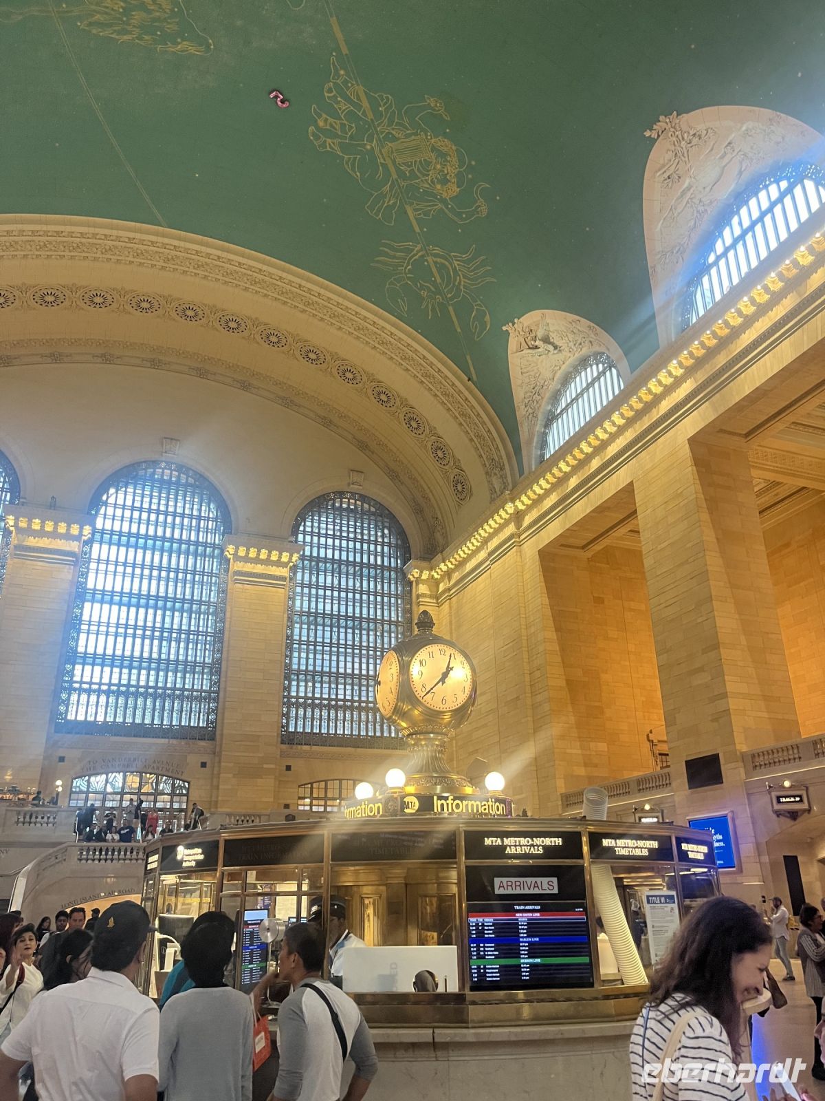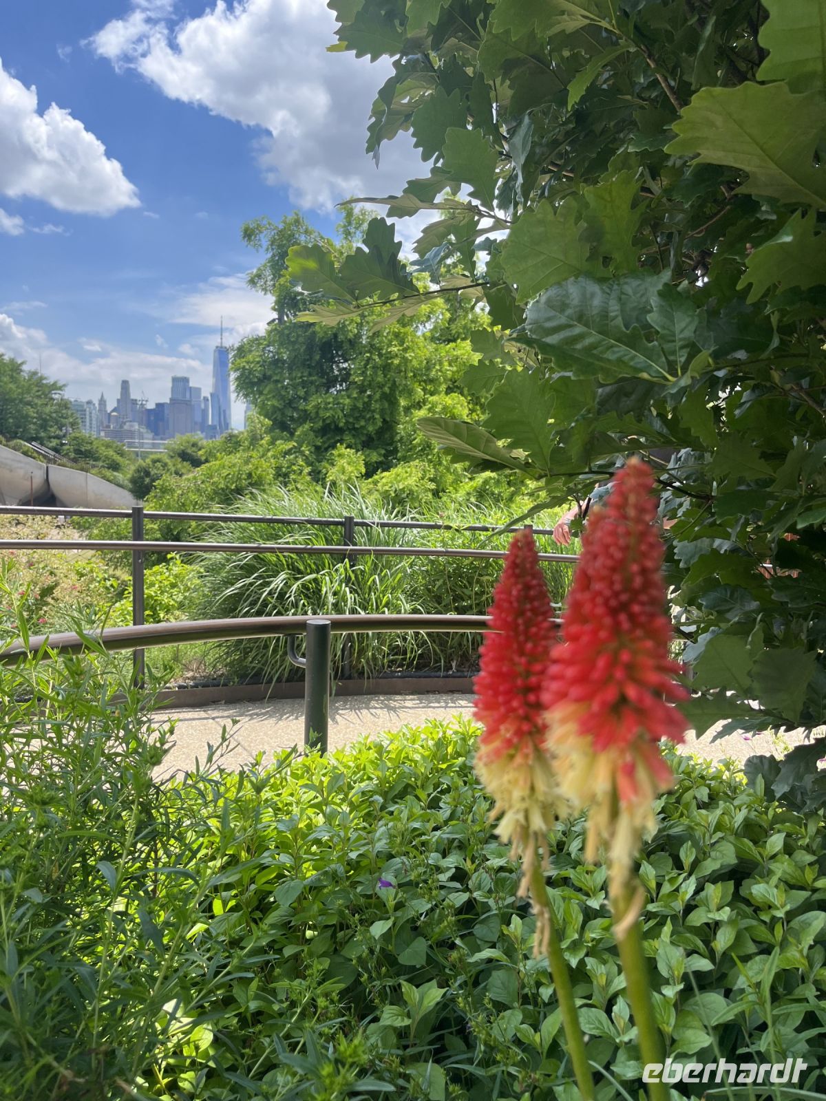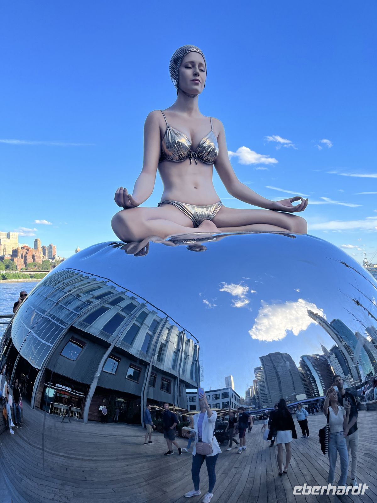 Heute nehmen wir die lila Linie direkt nach Hudson Yards. Hudson Yards ist einer der neueren Stadtteile Manhattans. Der Bau des Komplexes begann Ende 2012, und der erste Teil wurde Anfang 2019 eröffnet. Hier gibt es viel zu tun und zu sehen. The Vessel und andere markante Bauwerke verleihen dem Gebiet einen besonderen Charakter. Vor The Vessel haben wir auch einen tollen Ausblick auf die Aussichtsplattform The Edge in schwindelerregender Höhe. Wir nehmen uns noch kurz Zeit, um uns in dem angrenzenden Einkaufszentrum die Luxusboutiquen von Dior und Louis Vuitton anzusehen. Allerdings zeigt das "Eier steicheln" an der Wall Street doch noch keine Wirkung, so dass wir es beim Schauen belassen. Von hier aus führt uns der Weg an der Konzerthalle The Shed vorbei direkt auf die High Line. Sie ist eine 2,33 Kilometer lange, nicht mehr als solche genutzte Güterzugtrasse im Westen von Manhattan, die von 2006 bis 2019 zu einer Parkanlage, dem High Line Park, umgebaut wurde. Überall gibt es kleine Bänke, die zum Verweilen einladen. Wir spazieren entlang bis zur 14. Straße. Anschließend besuchen wir den Chelsea Market, der mit allerlei Geschäften und Spezialitäten lockt. Hier finden wir auch einen Stand mit Berliner Currywurst und deutschem Bier. Ein schönes Fotomotiv. Von hier aus satten wir Little Island einen kleinen Besuch ab. Der angelegte Park sieht natürlich aus der Ferne ganz besonders aus. An sich ist es nur ein Park, kann aber zu Recht als grüne Oase im Hudson bezeichnet werden. Es gibt Wanderwege, die zu den höchsten Punkten der Insel führen und wunderschöne Ausblicke auf Manhattan, New Jersey und den Hudson. Nach dem Besuch nehmen wir die Metro in Richtung Bryant Park, den wir kurz durchqueren, um zur Nationalbibliothek von New York zu kommen, die vor allem durch ihre pompösen Deckengemälde berühmt ist. Von hier aus trennen uns nur wenige Meter zu Fuß von unserer Aussichtsplattform des Summit One Vanderbilt Gebäudes gegenüber vom Grand Central Terminal. Die Aussichtsplattform des Summit One Vanderbilt erstreckt sich über drei Etagen des beeindruckenden Wolkenkratzers. Von hier aus haben wir nicht nur einen einzigartigen Blick auf das Empire State Building, das Chrysler Building, den Bryant Park und den Times Square, die sich alle in der Nähe befinden, sondern es bietet auch ein Kunsterlebnis, durch welches man hindurchgehen kann. Innen ist alles verspiegelt und es gibt einen Raum mit überdimensionalen Luftballons, die durch die Gegend fliegen. Danmit entstehen einmalige Fotomotive. Vermutlich war es für uns die meist beeindruckendste Aussichtsplattform auf unserer Reise.