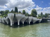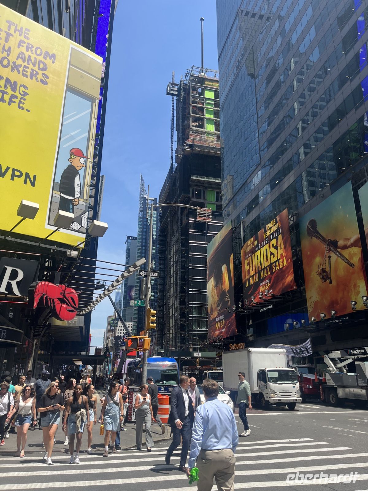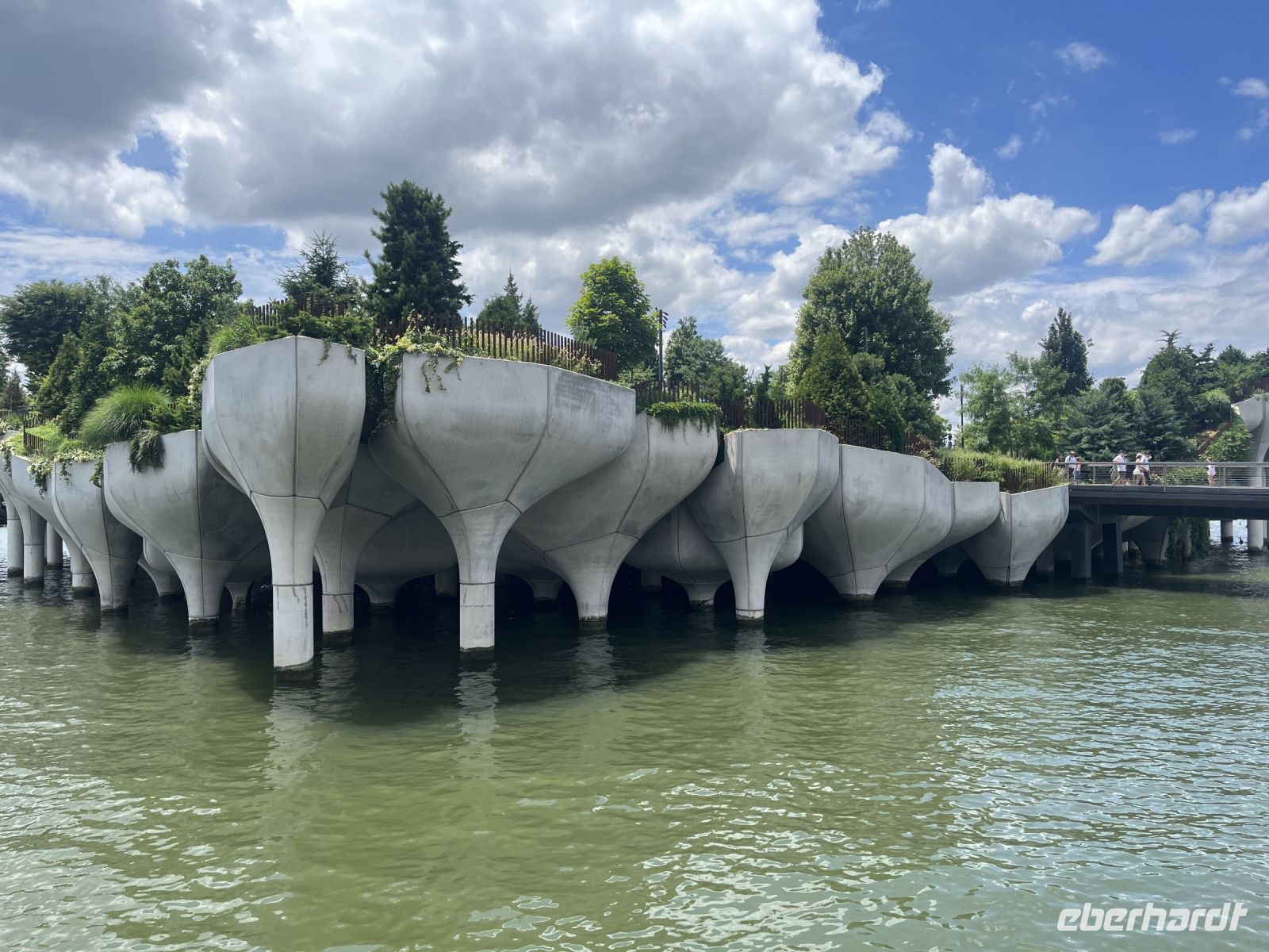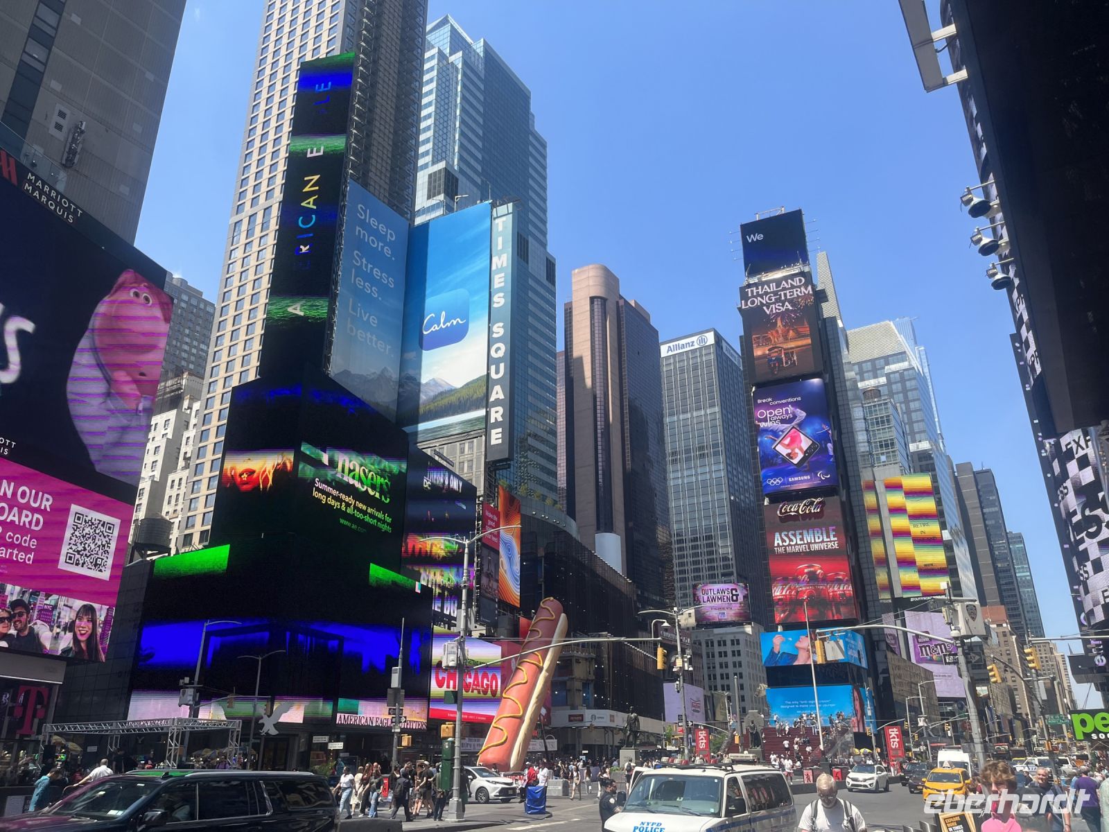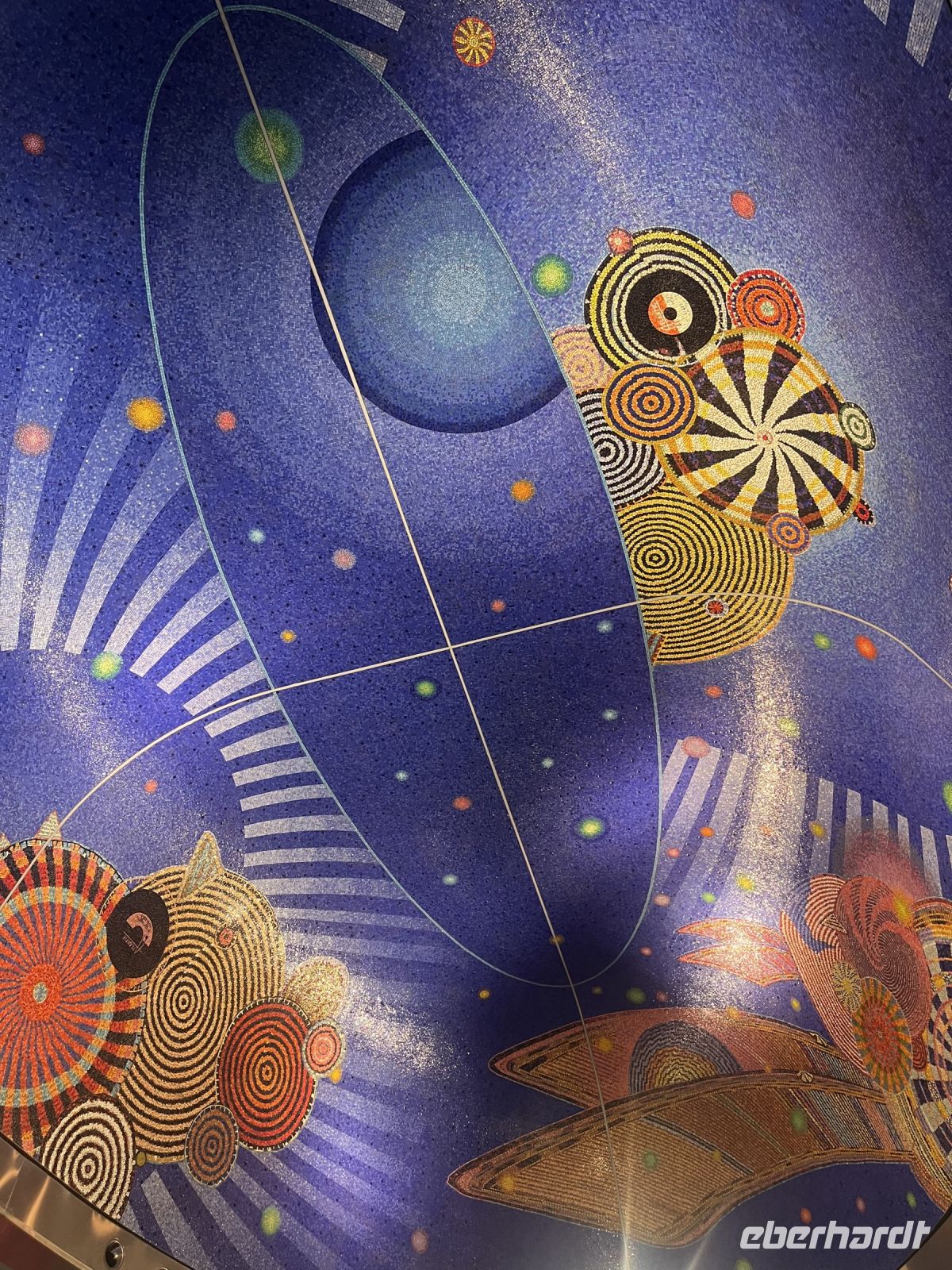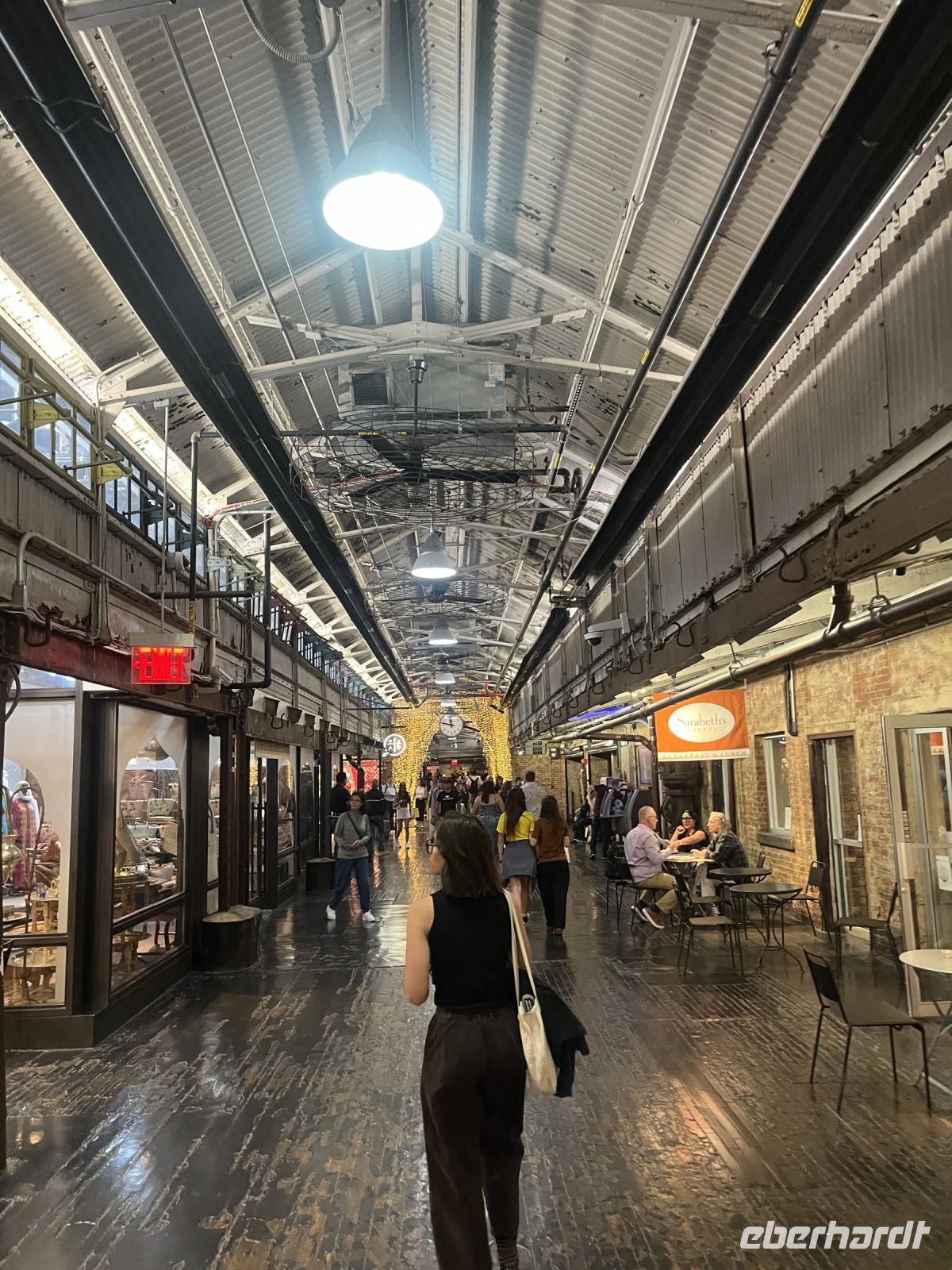 Heute nehmen wir die lila Linie direkt nach Hudson Yards. Hudson Yards ist einer der neueren Stadtteile Manhattans. Der Bau des Komplexes begann Ende 2012, und der erste Teil wurde Anfang 2019 eröffnet. Hier gibt es viel zu tun und zu sehen. The Vessel und andere markante Bauwerke verleihen dem Gebiet einen besonderen Charakter. Vor The Vessel haben wir auch einen tollen Ausblick auf die Aussichtsplattform The Edge in schwindelerregender Höhe. Wir nehmen uns noch kurz Zeit, um uns in dem angrenzenden Einkaufszentrum die Luxusboutiquen von Dior und Louis Vuitton anzusehen. Allerdings zeigt das "Eier steicheln" an der Wall Street doch noch keine Wirkung, so dass wir es beim Schauen belassen. Von hier aus führt uns der Weg an der Konzerthalle The Shed vorbei direkt auf die High Line. Sie ist eine 2,33 Kilometer lange, nicht mehr als solche genutzte Güterzugtrasse im Westen von Manhattan, die von 2006 bis 2019 zu einer Parkanlage, dem High Line Park, umgebaut wurde. Überall gibt es kleine Bänke, die zum Verweilen einladen. Wir spazieren entlang bis zur 14. Straße. Anschließend besuchen wir den Chelsea Market, der mit allerlei Geschäften und Spezialitäten lockt. Hier finden wir auch einen Stand mit Berliner Currywurst und deutschem Bier. Ein schönes Fotomotiv. Von hier aus satten wir Little Island einen kleinen Besuch ab. Der angelegte Park sieht natürlich aus der Ferne ganz besonders aus. An sich ist es nur ein Park, kann aber zu Recht als grüne Oase im Hudson bezeichnet werden. Es gibt Wanderwege, die zu den höchsten Punkten der Insel führen und wunderschöne Ausblicke auf Manhattan, New Jersey und den Hudson. Nach dem Besuch nehmen wir die Metro in Richtung Bryant Park, den wir kurz durchqueren, um zur Nationalbibliothek von New York zu kommen, die vor allem durch ihre pompösen Deckengemälde berühmt ist. Von hier aus trennen uns nur wenige Meter zu Fuß von unserer Aussichtsplattform des Summit One Vanderbilt Gebäudes gegenüber vom Grand Central Terminal. Die Aussichtsplattform des Summit One Vanderbilt erstreckt sich über drei Etagen des beeindruckenden Wolkenkratzers. Von hier aus haben wir nicht nur einen einzigartigen Blick auf das Empire State Building, das Chrysler Building, den Bryant Park und den Times Square, die sich alle in der Nähe befinden, sondern es bietet auch ein Kunsterlebnis, durch welches man hindurchgehen kann. Innen ist alles verspiegelt und es gibt einen Raum mit überdimensionalen Luftballons, die durch die Gegend fliegen. Danmit entstehen einmalige Fotomotive. Vermutlich war es für uns die meist beeindruckendste Aussichtsplattform auf unserer Reise.