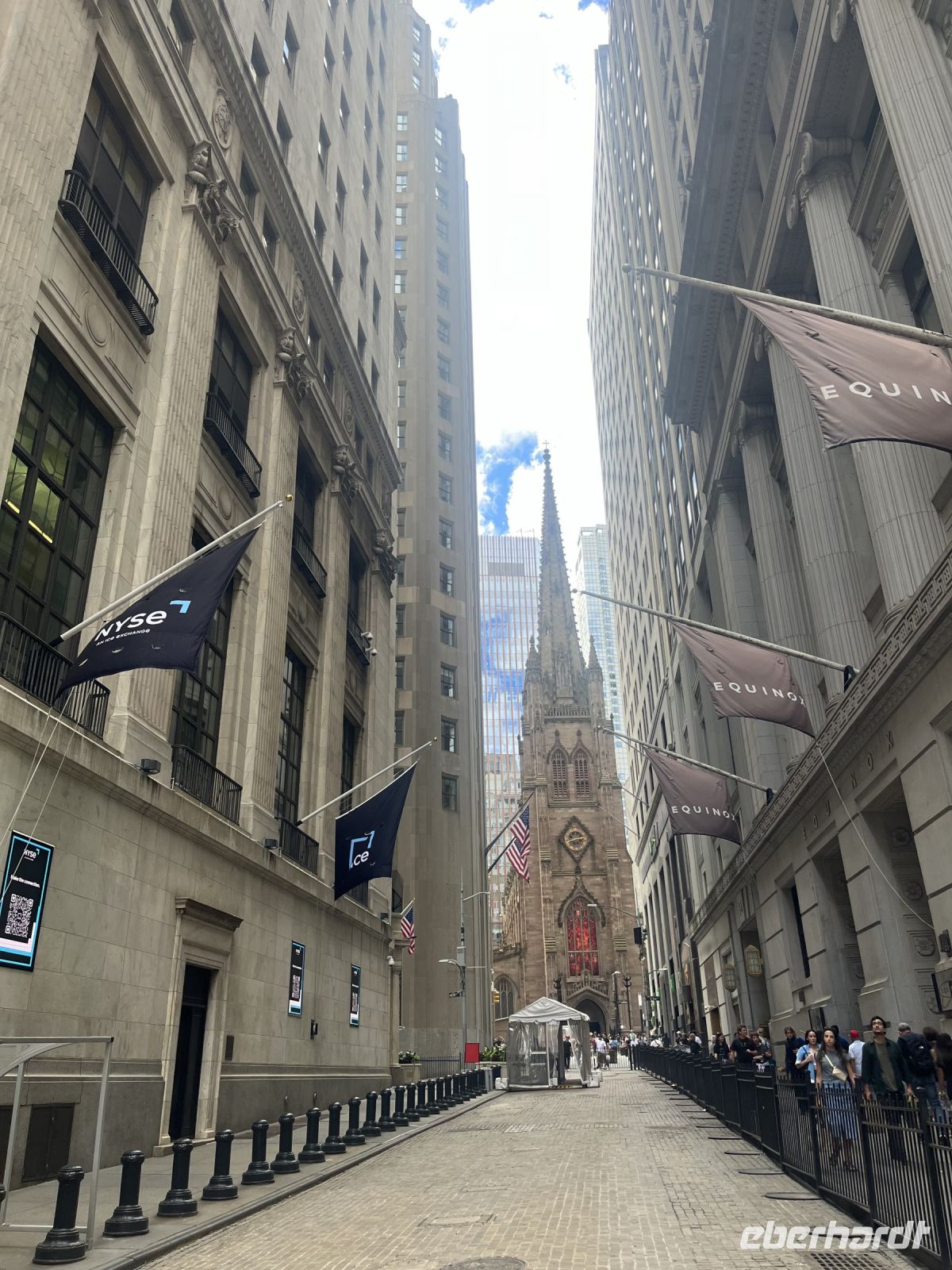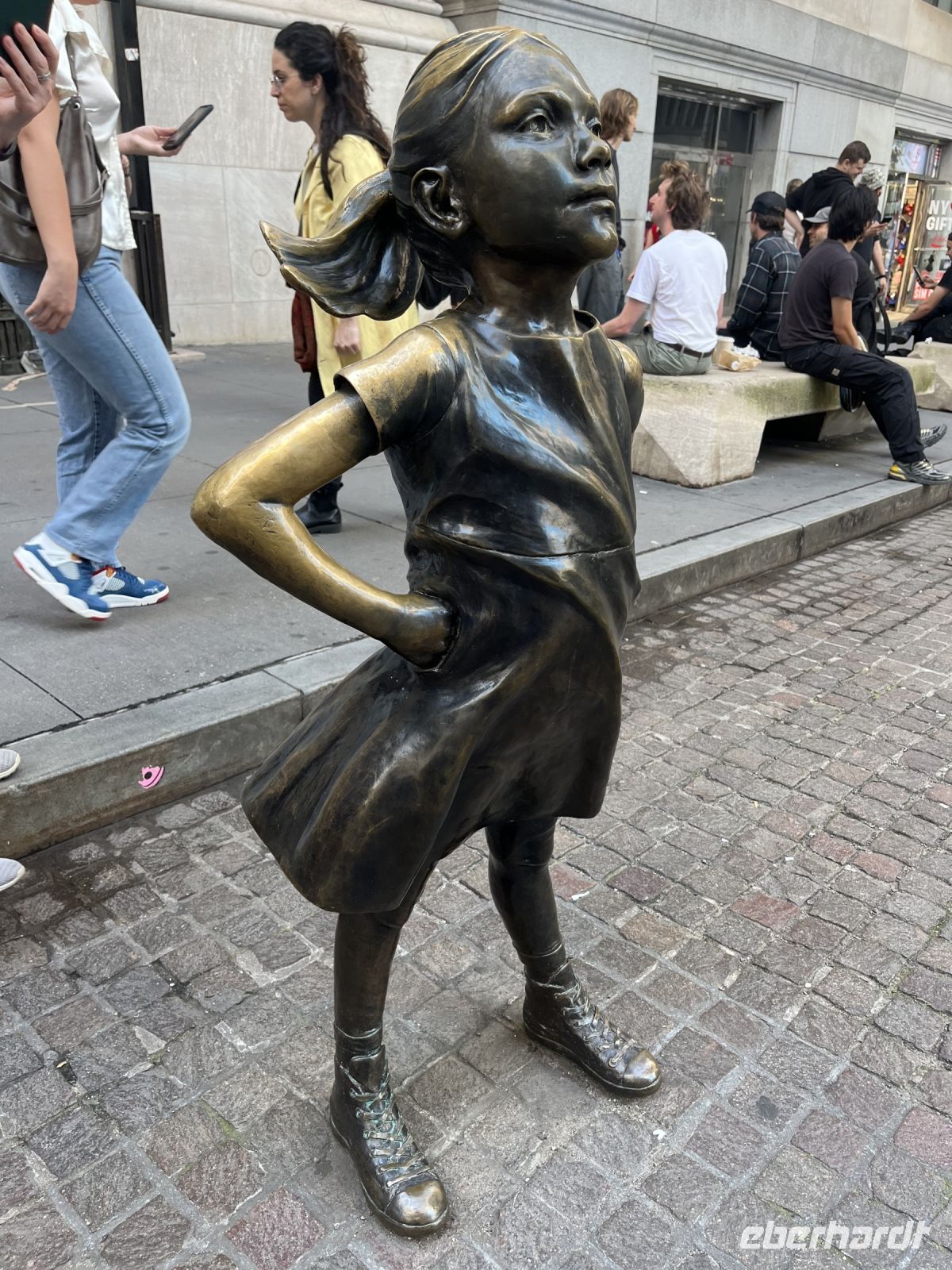 Heute führt uns unsere Reise noch einmal zur Wall Street, denn wir haben einige Spots noch nicht aus nächster Nähe betrachtet. So nehmen wir die gelbe Linie und fahren bis zur Rector Street. Von hier aus besuchen wir zunächst die Trinity Church. Sie ist eine der ältesten Kirchen New Yorks. Im deutschsprachigen Raum kennt man diese auch als Dreifaltigkeitskirche New Yorks. Gerade der Kontrast zwischen den Wolkenkratzern der Wall Street und der historischen Kirche aus dem Jahr 1846 ist reizvoll und ein wunderschönes Fotomotiv. Dann führt uns der Weg zu Fuß zum New York Stock Exchange mit dem Fearless Girl. Das kleine Mädchen wurde zum Weltfrauentag 2017 errichtet und steht für die Geschlechtergerechtigkeitsbewegung in der ganzen Welt und für die Rolle der Frauen in Führungspositionen. Anschließen laufen wir weiter die Wall Street entlang zum Charging Bull. Es soll Reichtum bringen, wenn man seine Eier streichelt und so machen wir dies natürlich, obwohl ich selbst nach mehrmaligen New York Besuchen immer noch nicht im Geld schwimme :-) Einen Versuch ist es aber allemal wieder wert. Entlang der Cedar Street laufen wir zum 9/11 Distrikt und sehen unterwegs die Feuerwehrwache. Die Gedenkstätte für die Feuerwehrleute, die bzgl. des Anschlags am 11.September gestorben sind, befindet sich schräg gegenüber dem 9/11 Memorial an der Wand der Feuerwache Ladder 10.