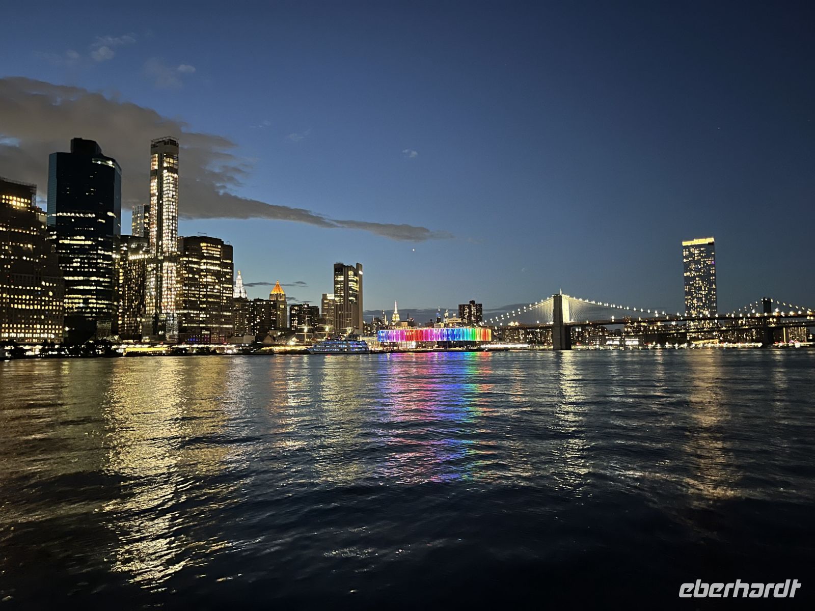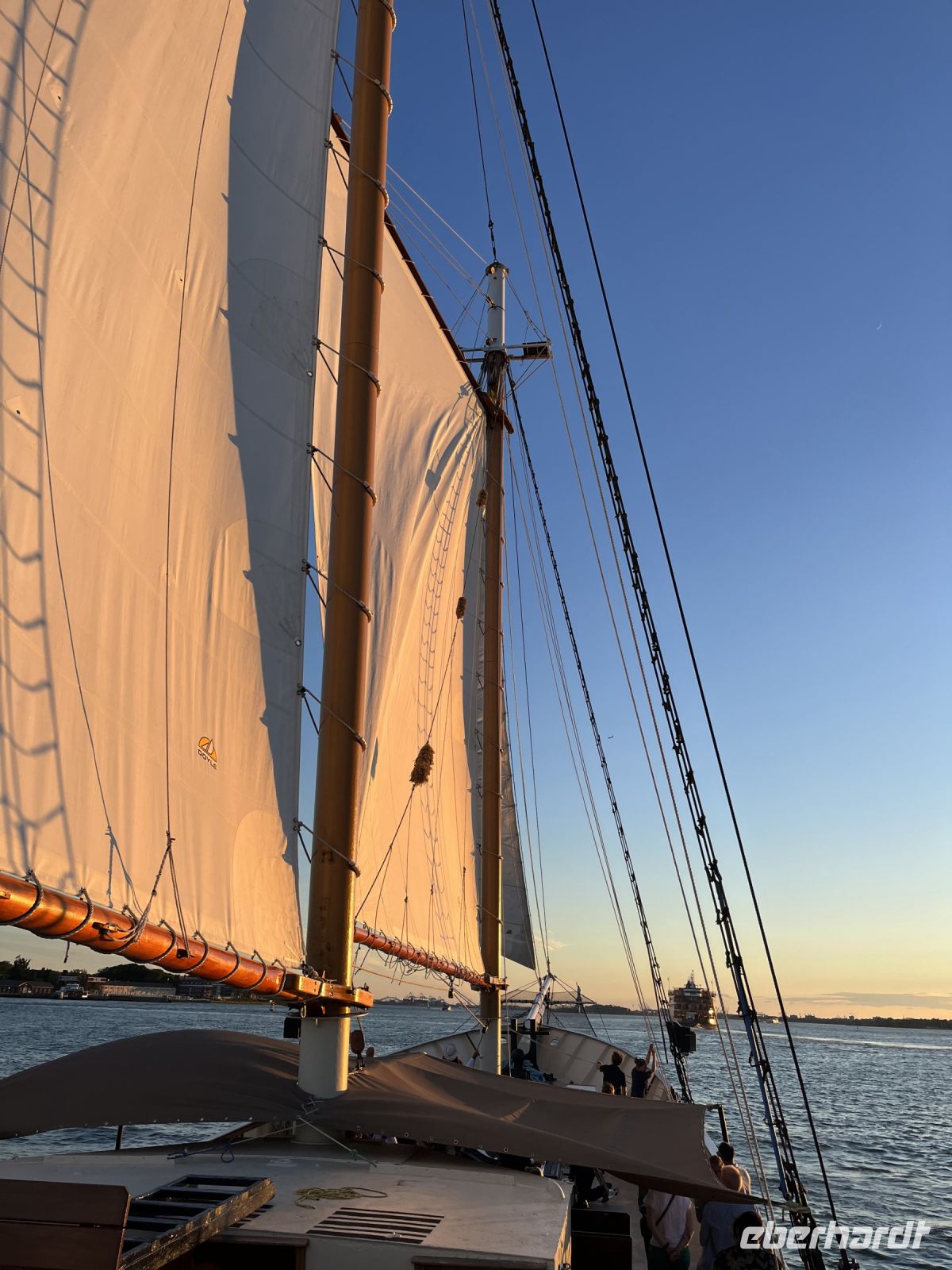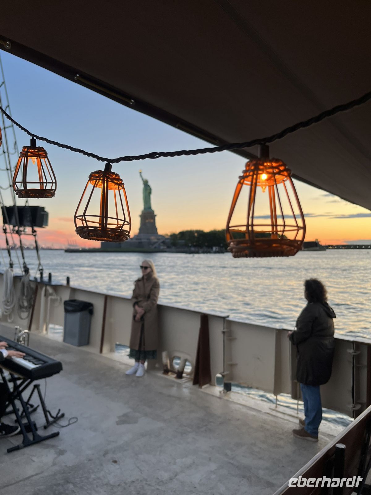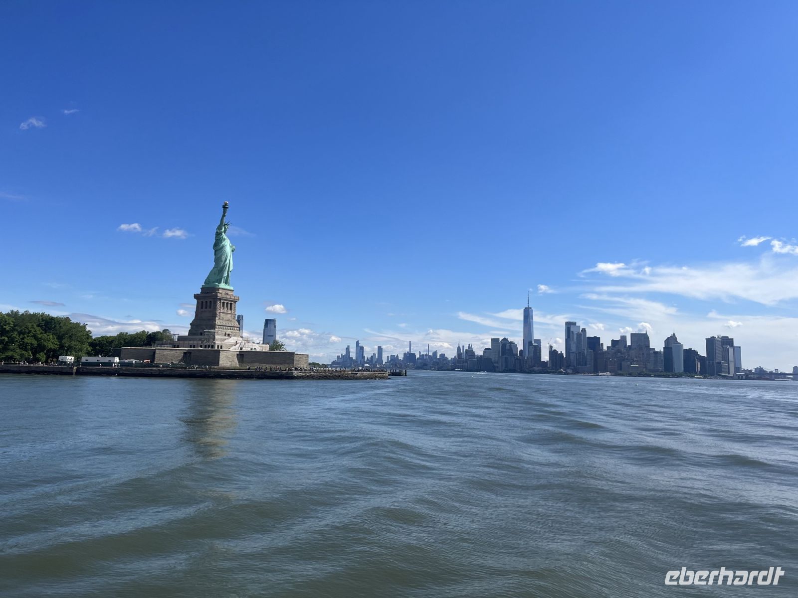 Wer ein echter New Yorker sein will, der isst zum Frühstück Bagels oder Toast mit Frischkäse, Waffeln oder Haferbrei. Doch auch an Obst, Schinken und Käse fehlte es uns nicht. Wir sind eben in Amerika und passen uns gern an. Gestärkt holt uns Asja und unser freundlicher Busfahrer Louis zu unserer ganztägigen Stadtrundfaht ab, so dass wir heute einen guten Eindruck über die Stadt gewinnen. Wir fahren zunächst zum Central Park, die grüne Lunge New Yorks. Der Park wird an manchen Tagen von über 500.000 Menschen besucht. Die New Yorker lieben ihren grünen Central Park, die Natur und Ruhe inmitten der Stadt sowie die vielen Sehenswürdigkeiten, Aktivitäten und Events, die es dort zu entdecken gibt. Natürlich halten wir am Dakota House, wo John Lennon erschossen wurde und besuchen die Strawberry Fields mit dem schwarz-weißen Mosaik mit der Aufschrift "Imagine", das an John Lennon erinnert. Da heute in New York die Puerto Rican Day Parade sattfindet, passen wir unser Programm etwas an. Viele Gäste haben sich gewünscht, nach Harlem zu fahren und so legen wir dort einen kleinen Stopp ein und spazieren entlang des Apollo Theaters etwas durch Harlem. Weiter geht es zur Grand Central Station, nicht nur bekannt aus vielen Filmen, sondern auch für die weltberühmte Clock und die Deckenmalereien. Wir unternehmen einen kleine Rundgang und sehen auch, wo man Austern essen kann. Hier verbringen wir auch unsere Mittagspause und der ein oder andere gönnt sich ein Lobster Brötchen oder einen echten New Yorker Hot Dog. Danach geht es für uns mit einem Fotostopp am Flatiron Building, dem Bügeleisenhaus, zur Wall Street. Wir erfahren viel Wissenswertes über den Börsencrash und über die New York Stock Exchange. Später im Bus fahren wir auch vorbei am Charging Bull und verstehen auch, warum wir nicht zu Fuß hingelaufen sind. Anschließend führt uns Asja durch den 9/11 Distrikt. Wir sehen das 9/11 Memorial sowie das Museum. Eine etwas bedrückende Stimmung, die hier herrscht. Wir sehen außerdem den Oculus, einer der schönsten und teuersten Bahnhöfe der Welt und Verkehrsdrehscheibe von Manhattan. Fast vier Milliarden Dollar hat der Bahnhof gekostet und auch wir sind fasziniert von dem mytischen Vogel. Außerdem können wir auch einen Blick auf das One World Trade Center erhaschen. Anschließend geht es für eine kurze Erfrischungspause zurück zum Hotel. Am frühen Abend treffen wir uns wieder und nutzen heute zum ersten Mal die New Yorker Subway. Durch unsere Wochentickets können wir so ideal New York City erkunden. Oft klappt der Durchgang mit der Metrocard nicht beim ersten Mal, aber wir gewöhnen uns daran und sind am Ende der Reise richtige Vollprofis. Sicher werdet ihr noch im Schlaf die Karten durchziehen :-) Wir nehmen die rote Linie bis zum Pier 17 South Street Seaport, von dem unser Segeltörn mit der Manhattan Sail startet. Die renovierten, original erhaltenen alten Handelshäuser mit vielen Läden und Restaurants, das Museum, renovierte Segelschiffe sowie der frühere Fish Market mit Blick auf die Brooklyn Bridge und dem auf der anderen Seite gelegenen Stadtteil von Brooklyn, ziehen viele Menschen an. So sind auch wir begeistert und spazieren noch ein wenig am Pier, bevor unser Segelschiff ablegt. Wir genießen eine einmalige Atmosphäre bei Jazz-Musik und kühlen Cocktails und segeln etwa 2 Stunden in den Sonnenuntergang. Wir trauen unseren Augen kaum, als wir die New Yorker Skyline, Brooklyn mit seiner berühmten Brooklyn Bridge und die Freiheitsstatue im Abendlicht bei Sonnenuntergang sehen. Ein einmaliges Erlebnis und für viele von uns das Highlight dieser Reise. Die Atmosphäre ist weitaus intimer, als auf den großen Schiffen der Circle Line Cruises und so kann man dieses Erlebnis besonders genießen. Anschließend nehmen wir die Metro zurück zum Hotel und fallen nach einem ereignisreichen Tag in unsere Betten.