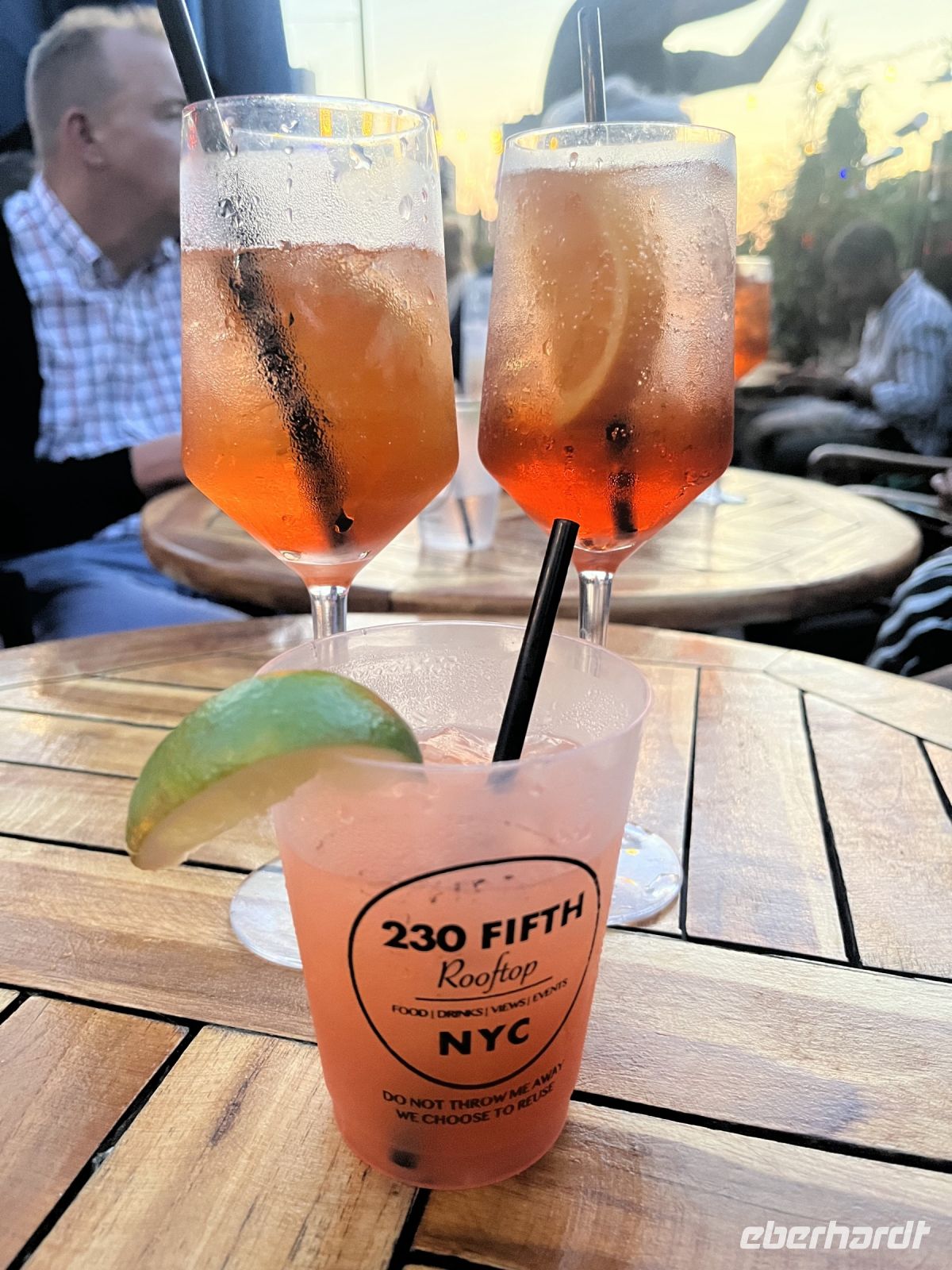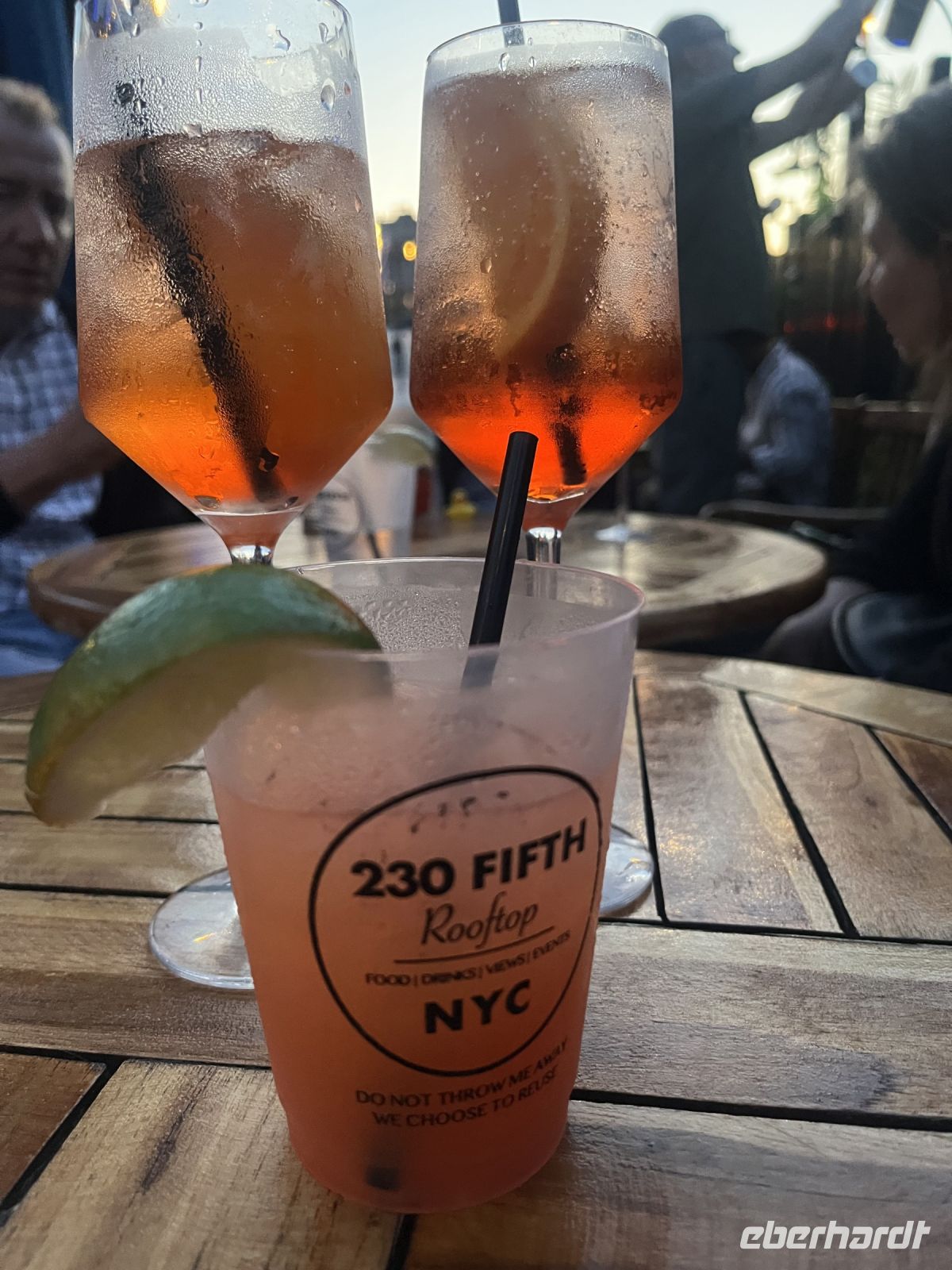 Einige Gäste treffen sich am Abend nochmal mit mir, um in der berühmten Rooftop Bar 230 Fifth einen Cocktail zu genießen. Von hier aus hat man einen atemberaubenden Blick auf das Empire State Building, das nachts seine Farbe ändert. Wir genießen einen Aperol oder einen anderen Cocktail und lassen die letzten Tage noch einmal Revue passieren.
