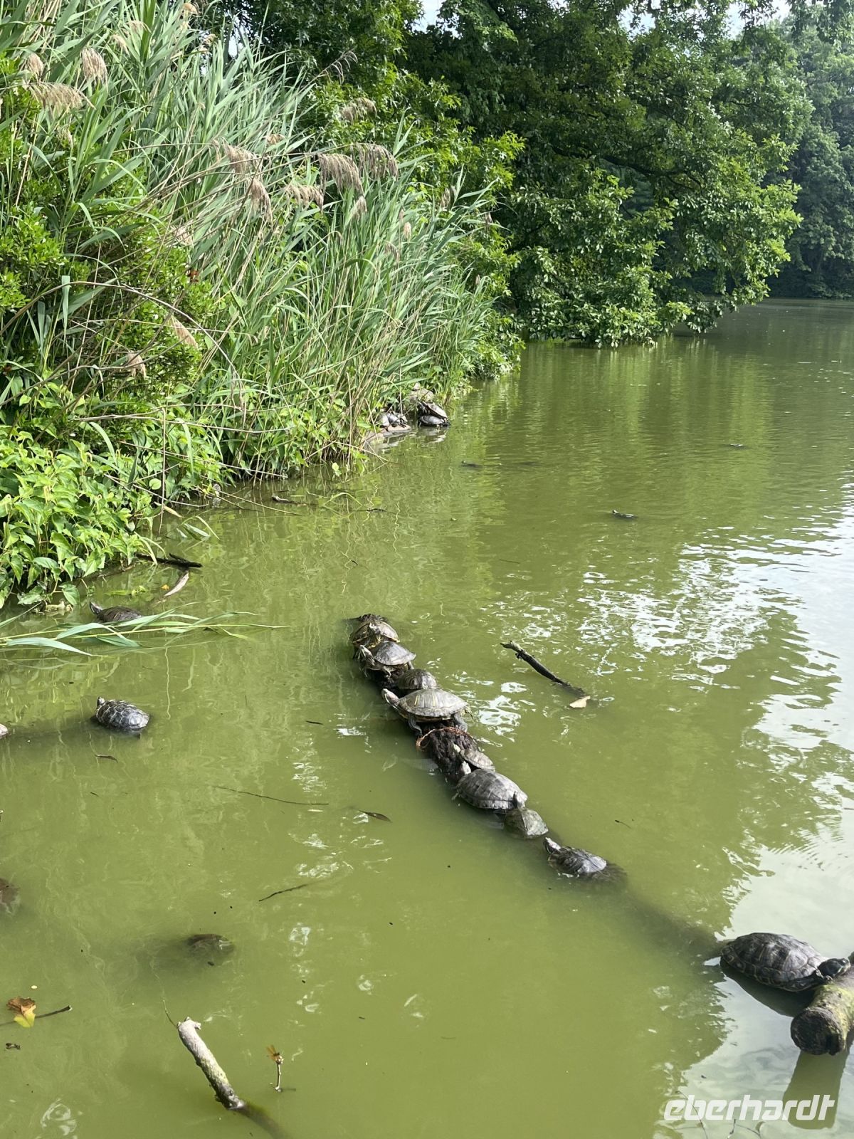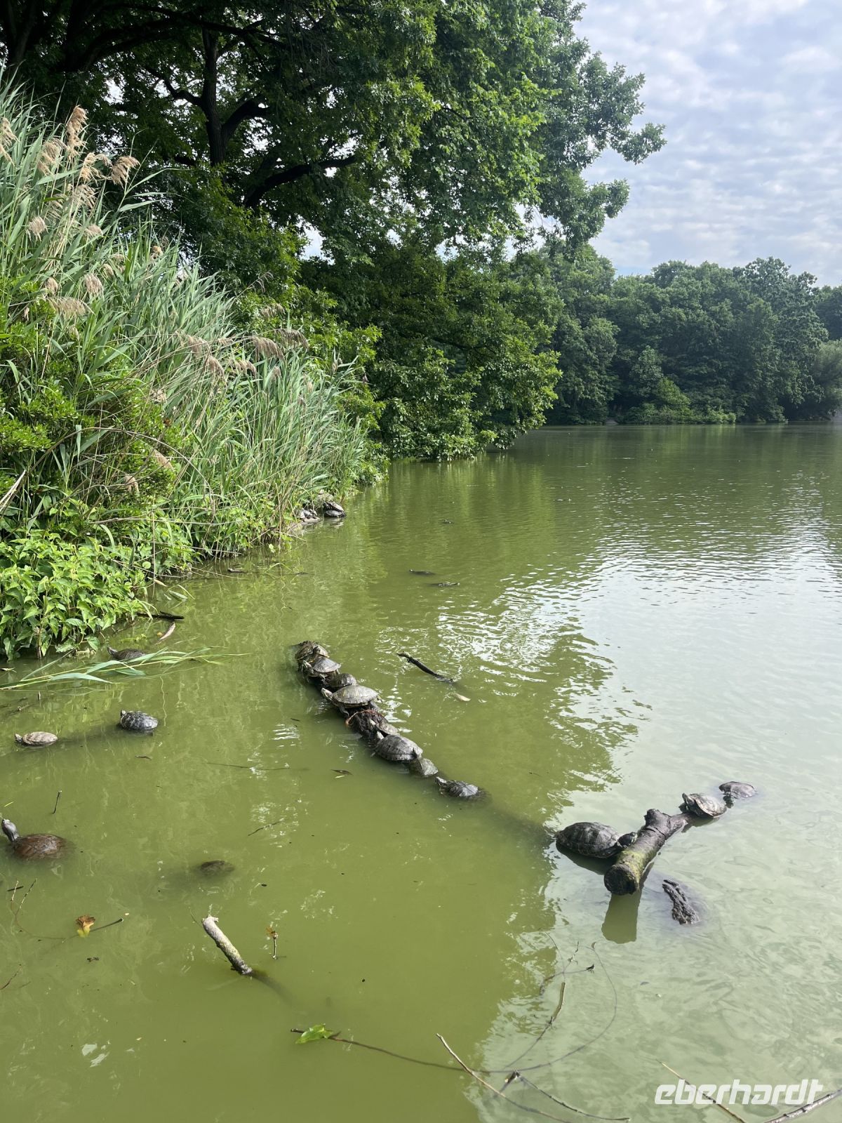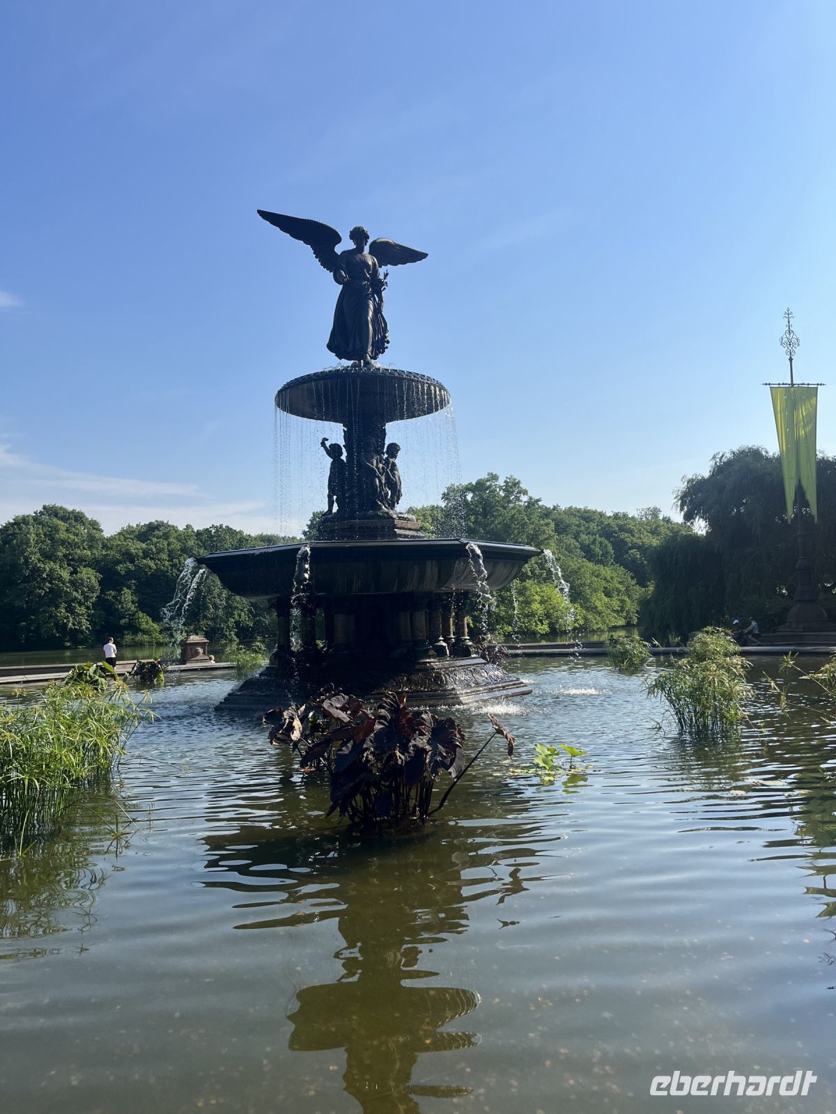 Huete müssen wir nochmal früh aufstehen, denn der Großteil der Reisegruppe folgt mir zu einem Vormittagsausflug in den berühmten Central Park. Der Central Park erstreckt sich auf einer Länge von 4,07 km von der 59. bis zur 110. Straße zwischen der Fifth Avenue und der Eighth Avenue und ist auch als die Grüne Lunge New Yorks bekannt. Mit 341 Hektar immt er etwa sechs Prozent der Bodenfläche Manhattans ein und zählt zu den größten Parkanlagen weltweit. Jährlich besuchen rund 25 Millionen Menschen den Park. Wir folgen Ihnen und nehmen den Eingang an der 6. Avenue, die uns zum Literary Walk führt. Entlang des Weges sehen wir neben vielen Joggern auch ausgelassene Hundebesitzer, deren Vierbeiner hier ohne Leine frei herumlaufen können. Wir müssen auch feststellen, dass die New Yorker Hunde äußerst gut erzogen sind und kaum bellen. Wir genießen das rege Treiben und das Grün um uns herum. Der Literary Walk führt uns geradewegs zu den Bethesda Terrassen und zum berühmten Bethesda Brunnen, der schon in vielen Filmen eine zentrale Rolle gespielt hat und sicher jedem aus der Fernsehserie "Friends" ein Begriff ist. Wir laufen noch ein Stück weiter zum Central Park Boathouse und sehen unterwegs viele Schildkröten, die hier ihre morgendliche Joggingrunde absolvieren. Der Rückweg zur Metrostation an der 72. Straße führt uns vorbei an der Bow Bridge und am Denkmal von John Lennon, das wir bereits während der Stadtrundfahrt gesehen haben. Ein letztes Mal nehmen wir dann unsere Metrokarten in die Hand und fahren zurück zum Hotel, so dass ein jeder noch Zeit hat, seine sieben Sachen zu packen. Pünktlich um 12:00 Uhr holt uns unser Bus ab und wir fahren zum Flughafen. Der Abschied fällt schwer, aber viele sind sich sicher, nochmal wiederzukommen. Der Check-In und die Sicherheitskontrolle laufen problemlos und so fliegen wir pünktlich mit Lufthansa zurück nach Frankfurt am Main.