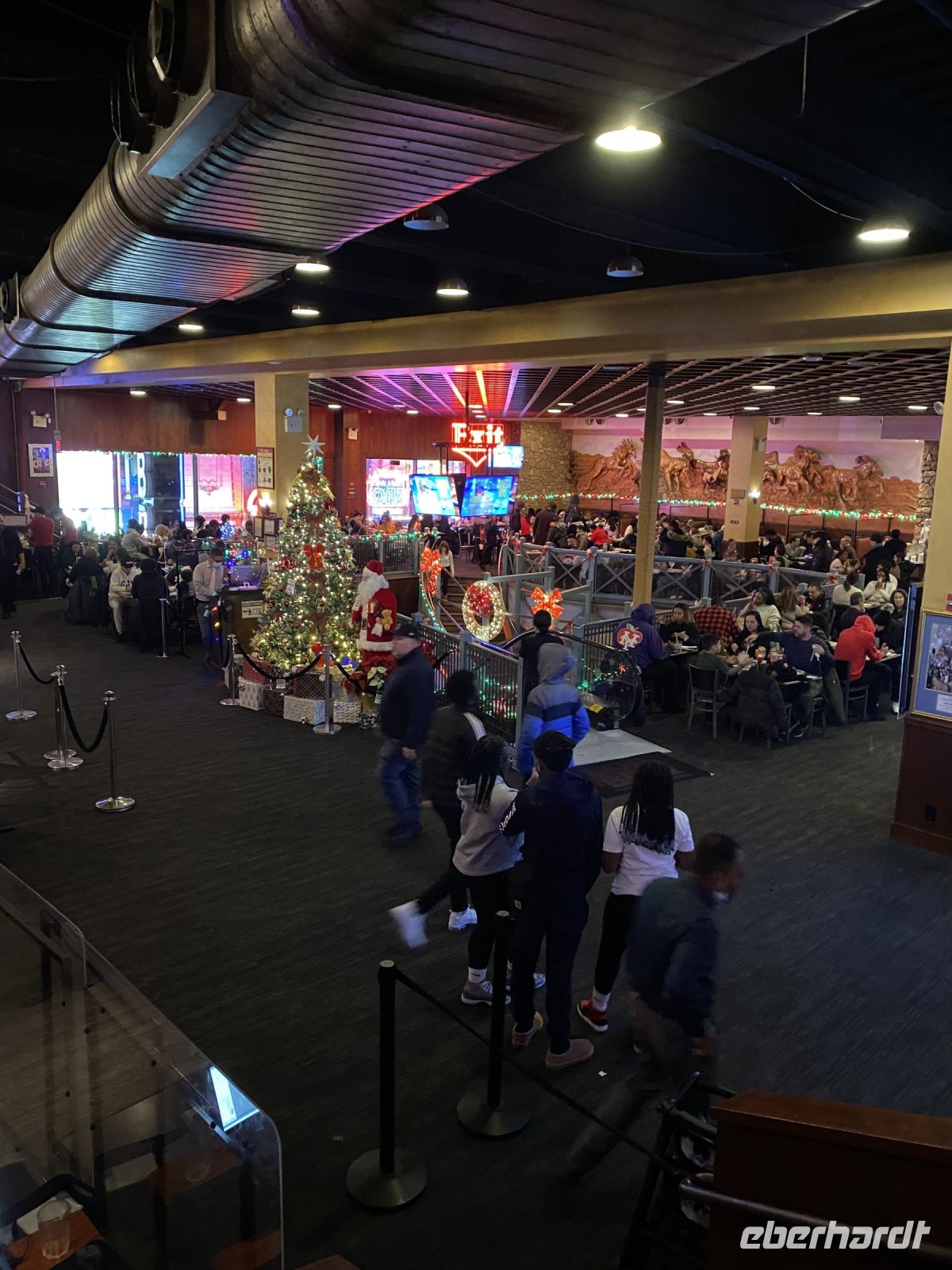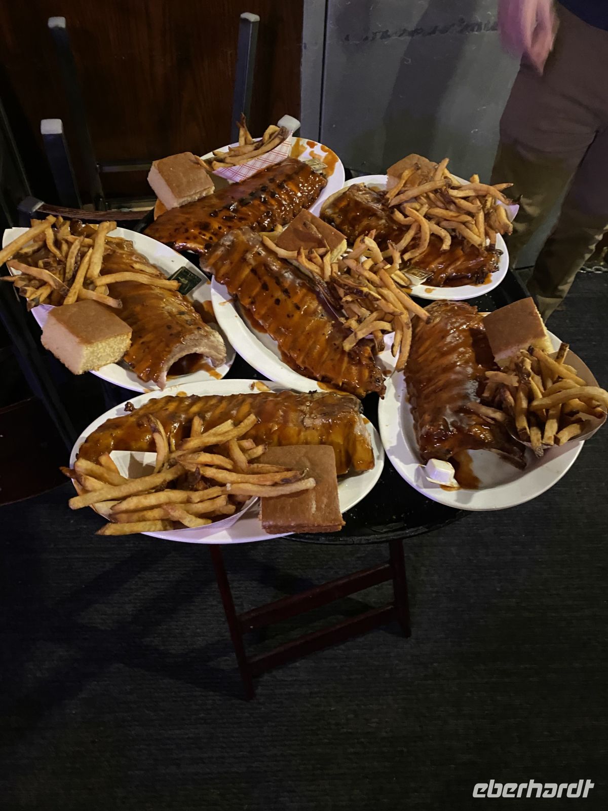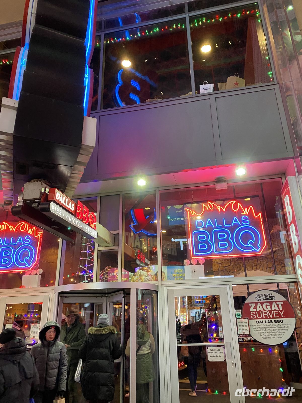 Heute haben wir eine Reservierung im Dallas BBQ in der Nähe vom Time Square. Viele Menschen stehen noch vor dem Restaurant an und im Inneren herrscht ein reges Treiben. Auf einer Art Galerie finden wir unseren Platz an zwei Tischen. Nach der üppigen Vorspeise sind die meisten schon satt, doch danach folgt noch ein großer Teller mit Rippchen, Pommes und Maisbrot. Typisch amerikanisch eben. Als Verdauungsspaziergang drehen wir eine Runde über den Time Square, gar nicht so einfach bei den ganzen Menschenmassen hier zusammenzubleiben. Es werden bereits die Bühnen und Lautsprecher für den Silvesterabend aufgebaut. Doch so hat man es sich in New York vorgestellt, laut und viel Trubel. Zurück im Hotel fallen wir nur noch müde ins Bett und sind gespannt auf die nächsten Tage.