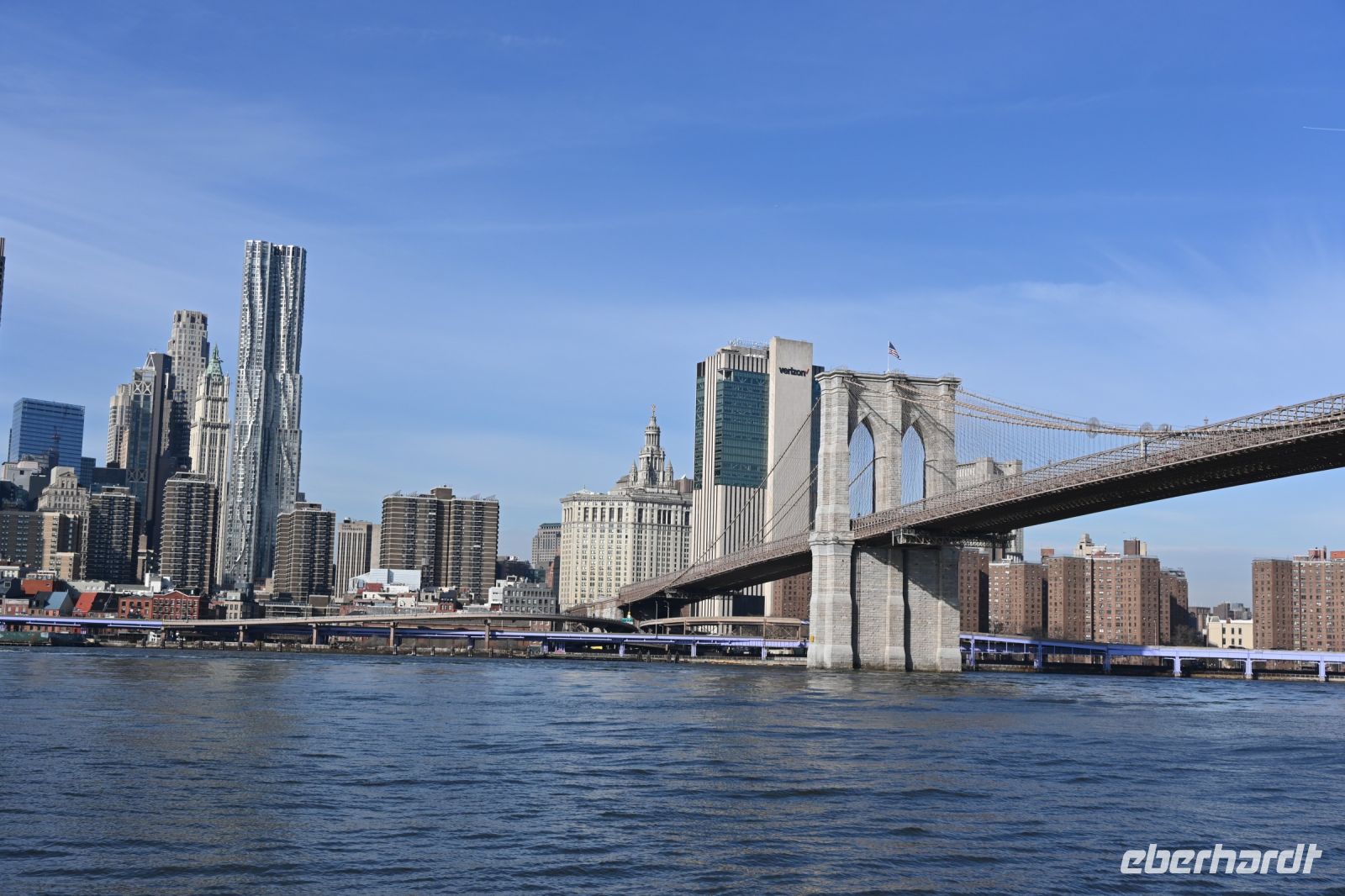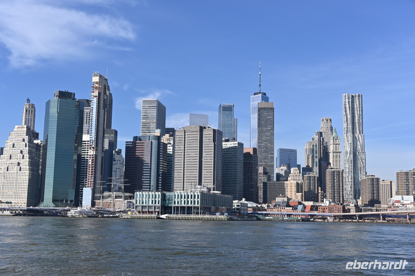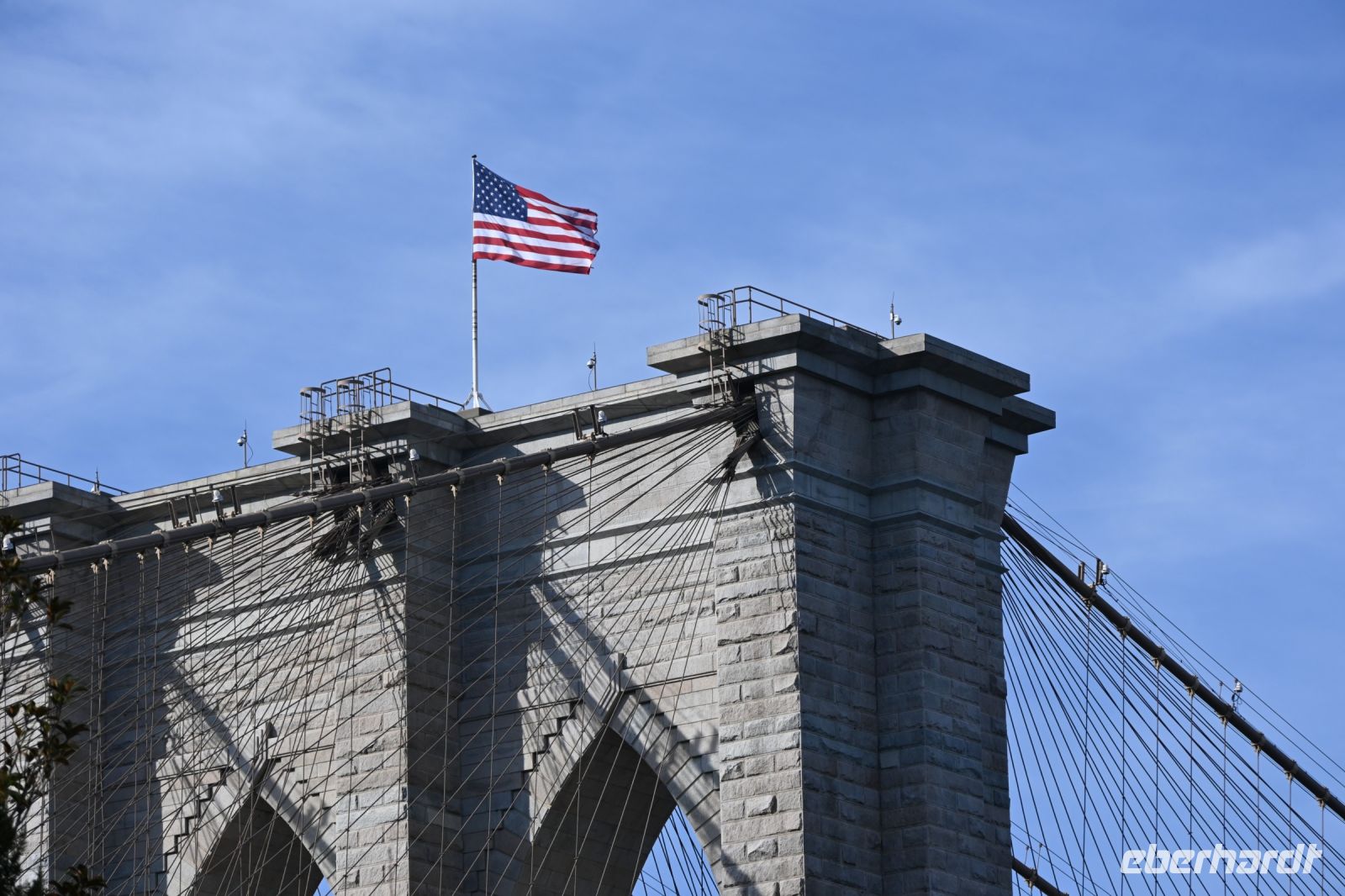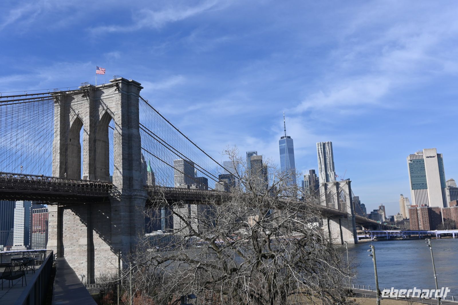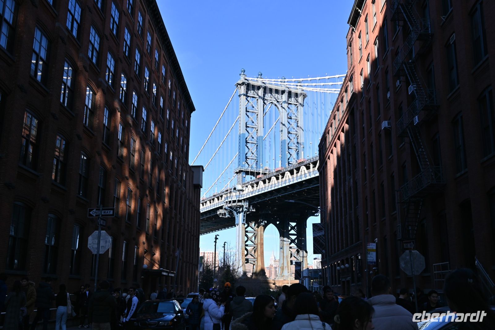 Da wir heute viel Zeit haben und der Verkehr uns auch keinen Strich durch die Planung macht, schaffen wir es noch, uns einen weiteren Stadtteil von New York anzuschauen. Zwischen Chinatown und Little Italy geht es über die Manhattan Bridge nach Brooklyn. Hier zeigt Fatima uns den Stadtteil DUMBO (Down Under the Manhattan Bridge Overpass), also der Bereich unter der Überführung der Manhattan Bridge. Aus den Kopfsteinpflasterstraßen und Backsteingebäuden ist hier ein Wohn- und Geschäftsviertel entstanden. Wenige Meter an der Brooklyn Bridge hat man einen großartigen Blick auf die Skyline von Manhattan. Wer sich davon losreißen kann, hat Zeit für einen Hot Dog an den bekannten Buden oder dem besten Eis der Stadt bei „The Brooklyn Ice Cream Factory“. Die Kugel kostet zwar sieben Dollar, jedoch reicht eine für zwei Personen und der Geschmack ist es auch definitiv wert.