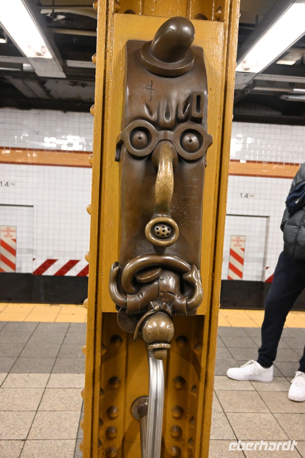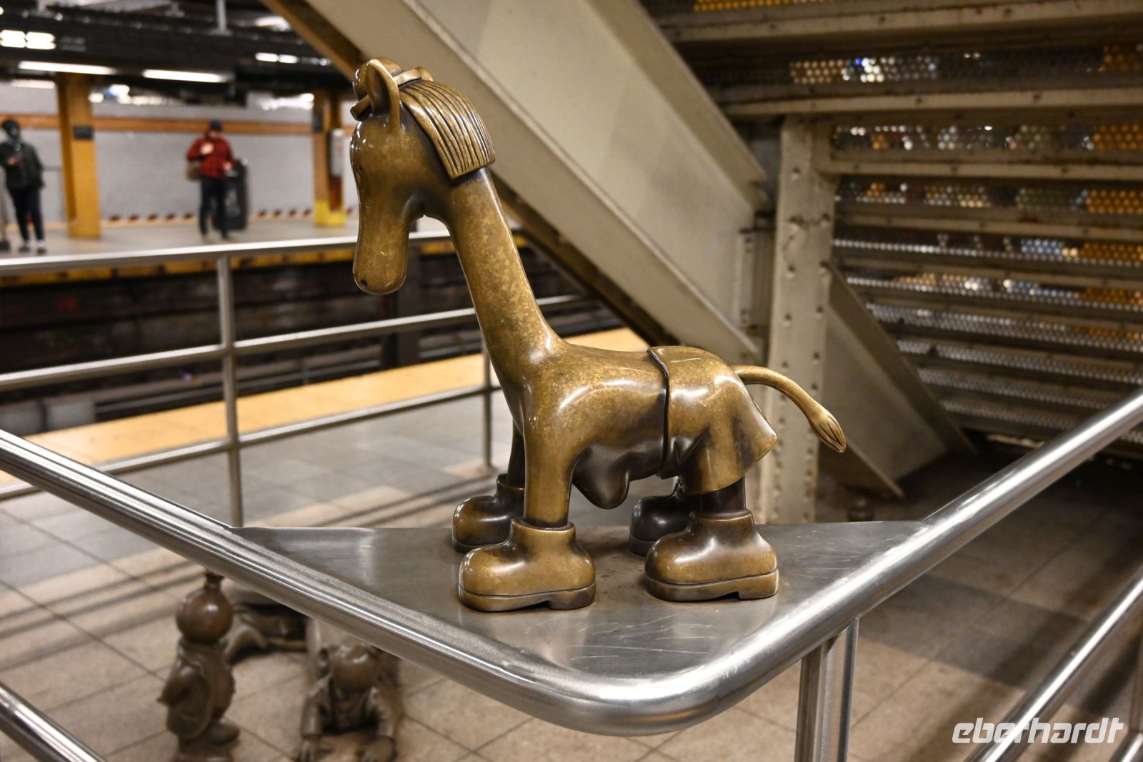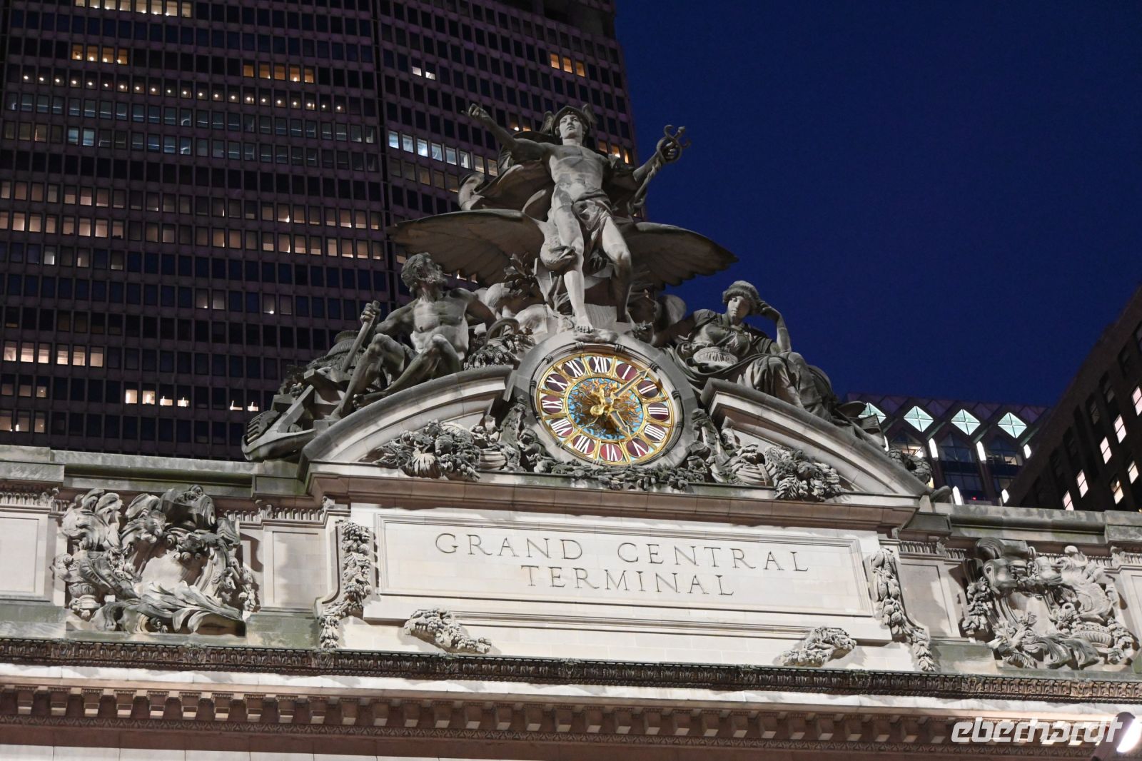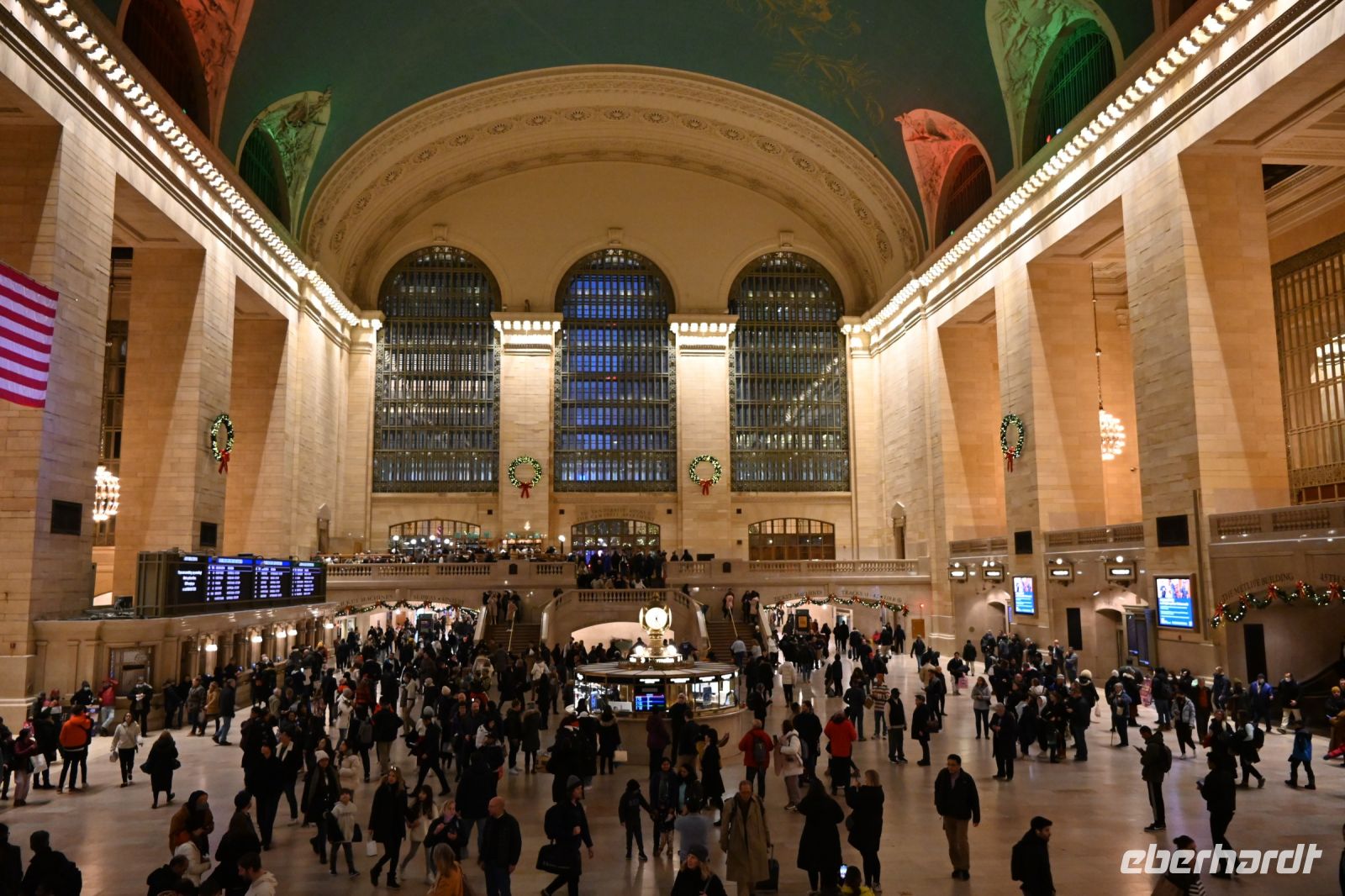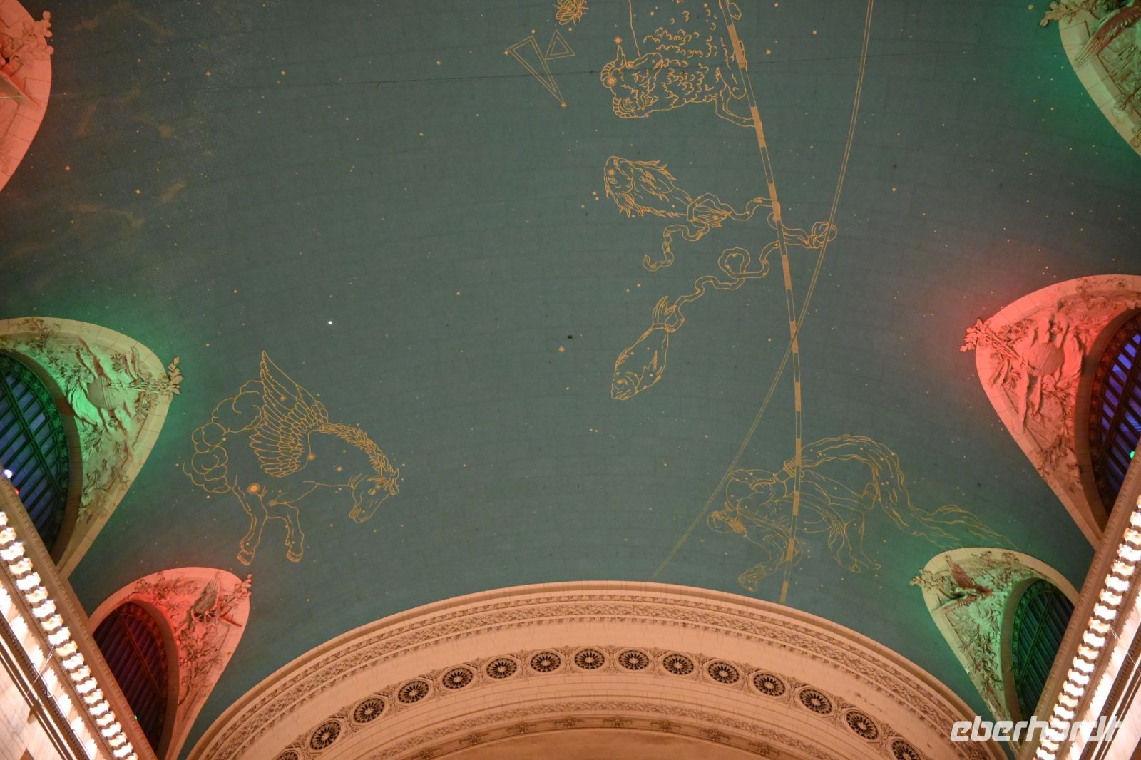 Zu unserem letzten Stopp fahren wir durch den Stadtteil Hudson Yards, welcher erst seit 2009 entsteht. Insgesamt wird es hier mal 16 Wolkenkratzer geben. Entlang der 42. Straße vorbei am Time Square gelangen wir zum Grand Central Terminal, dem Hauptbahnhof von New York und der größte Bahnhof der Welt. Hier gibt es auf zwei Ebenen 44 Bahnsteige mit 67 Gleisen. Täglich wird der Bahnhof von fast 1 Million Menschen genutzt. Wir wollen von hier aber noch nicht so schnell weg und wollen uns nur das astrologische Wandbild mit seinen 2.500 Sternen anschauen, sowie den Flüsterbogen im Untergeschoss ausprobieren. Wir sind erstaunt, das klappt ganz wunderbar!