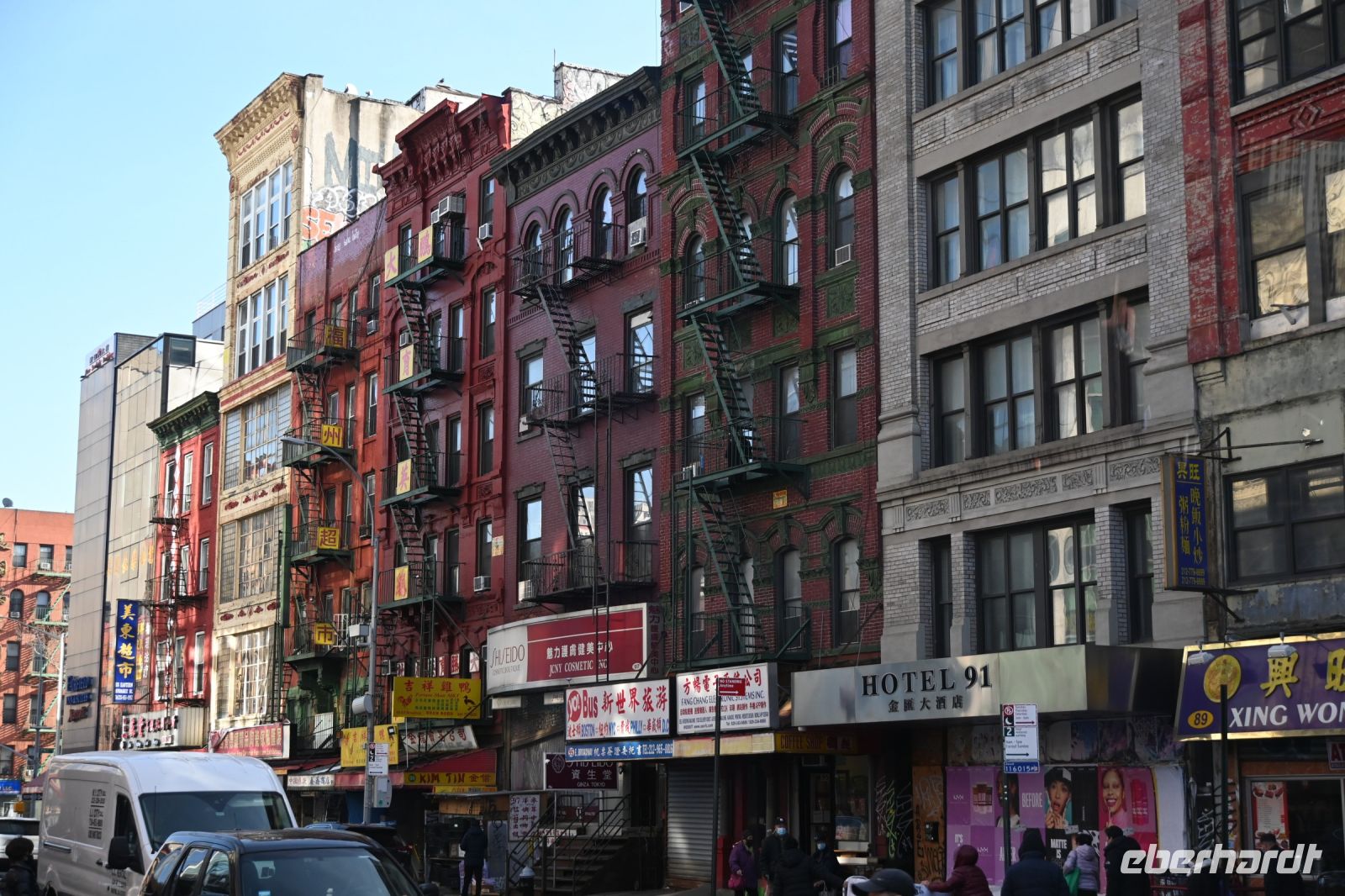 Zurück nach Manhatten geht es wieder über die gleichnamige Brücke. Von hier hat man ein tollen Blick über die Stadt und den East River. Kurz vor der Mittagspause machen wir noch einen kleinen Umweg durch Chinatown. Man hat hier wirklich das Gefühl in einer anderen Stadt zu sein. Busfahrer Frank kommt von hier und kennt sich bestens aus. An nur noch wenigen Geschäften kann man die englische Sprache lesen und an den kleinen Ständen kann man viele chinesische Spezialitäten kaufen. Ein Geheimtipp von Fatima: ein kleiner Laden mit gebratenen Dumblings. Die haben die Kostprobe definitiv bestanden!