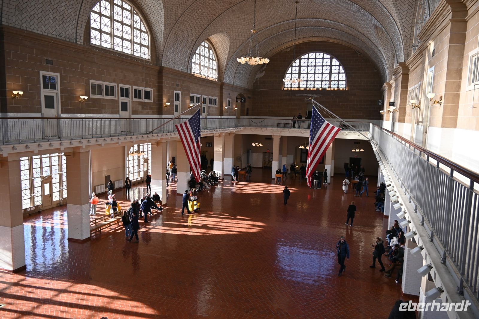 Am Mittag setzen wir mit der Fähre nach Ellis Island über. Die Einwanderer Insel der USA. Zwischen 1892 und 1954 kamen über zwölf Millionen Menschen hier her, um ein neues Leben in der USA zu beginnen. Allein 1903, im stärksten Jahr der Einwanderung, waren es rund 1,3 Millionen. Von überall her kamen die Menschen, die politisch verfolgt, ausgegrenzt oder von Armut betroffen waren. Circa zwei Prozent wurden wieder zurückgeschickt, da sie einen der medizinischen oder anderen Tests nicht bestanden hatten. So wurden oft Familien für immer getrennt. Im Museum hier auf Ellis Island kann man die Geschichte hier nachverfolgen. Um sich alles genau anzuschauen, braucht man wahrscheinlich einen ganzen Tag. Da wir noch weitere Pläne haben, nehmen wir die Fähre um 15.30 Uhr zurück ans Festland.