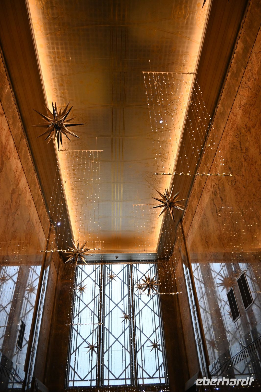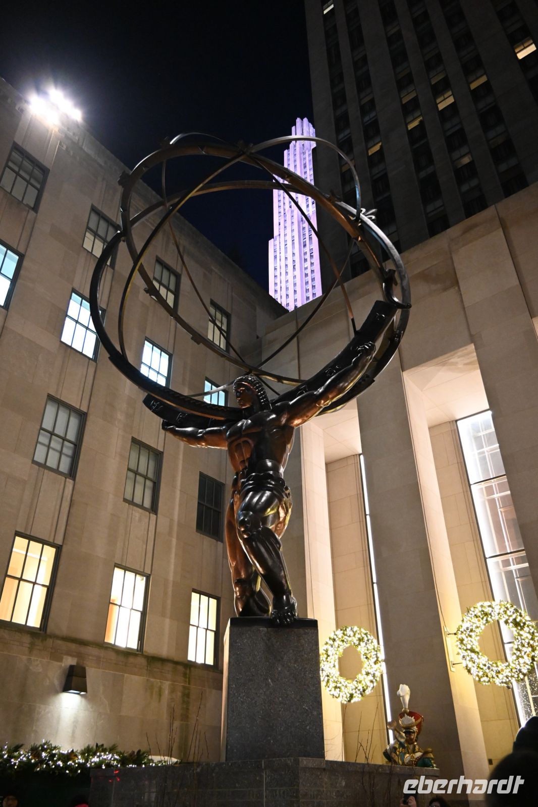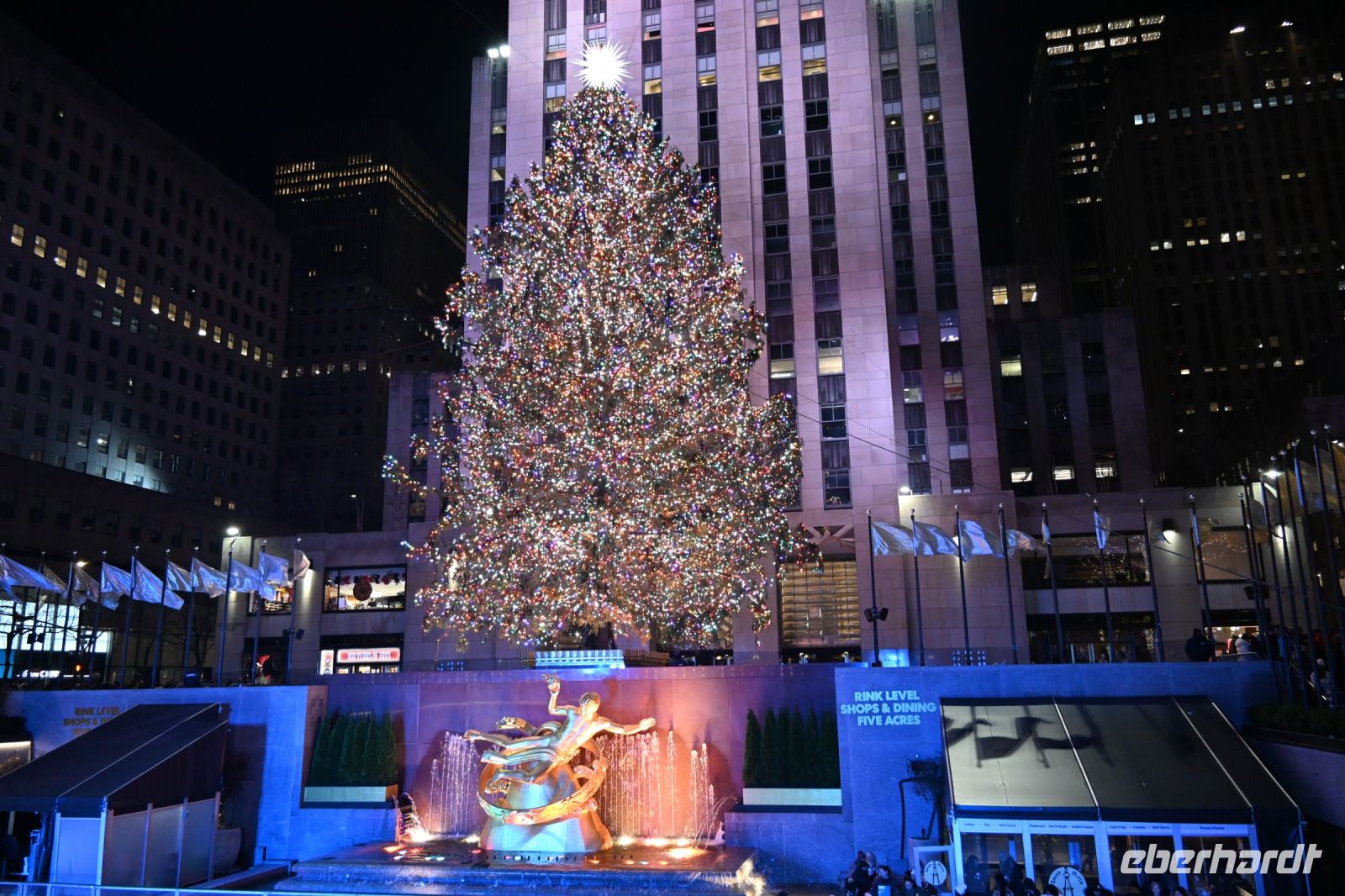 Jedoch ist die Zeit etwas begrenzt, so langsam fangen auch unsere Mägen an zu knurren und wir machen und auf den Weg zum Restaurant. Heute genießen wir ein Menü im „Fogo de chão Brazilian Steakhouse“. Das besondere hier ist, dass die Kellner mit einem Fleischspieß direkt an den Tisch kommen und einem dort das Fleisch frisch abschneiden. Alle weiteren Beilagen bekommt man am Buffet. Hier wird jeder satt. Als Nachspeise bekommen wir noch drei verschiedene Kuchenspezialitäten. Auf nicht mit vollem Magen direkt in Bett zu fallen, machen wir noch einen kleinen Spaziergang inklusive einem Besuch am berühmten Weihnachtsbaum im Rockefeller Center. Ein schönes Highlight zum Ende des Tages.