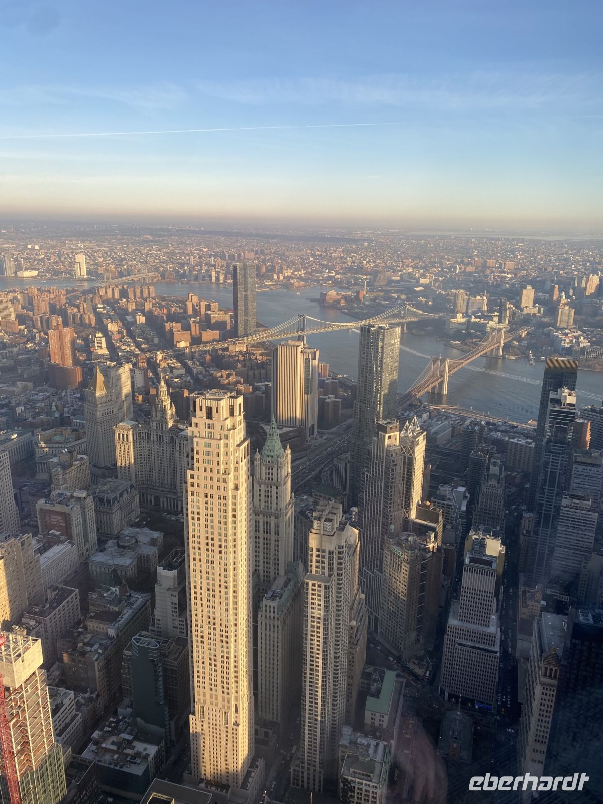 Am Nachmittag treffen wir uns wieder, um uns die Stadt noch einmal von oben anzuschauen. Von der 102. Etage des One World Trade Centers, welches direkt neben dem Ground Zero erbaut wurde, hat man einen tollen Blick über Manhattan mit all seinen Wolkenkratzern. Das One World Trade Center hat die höchste Aussichtplattform von New York und ist auch das höchste Gebäude der USA.