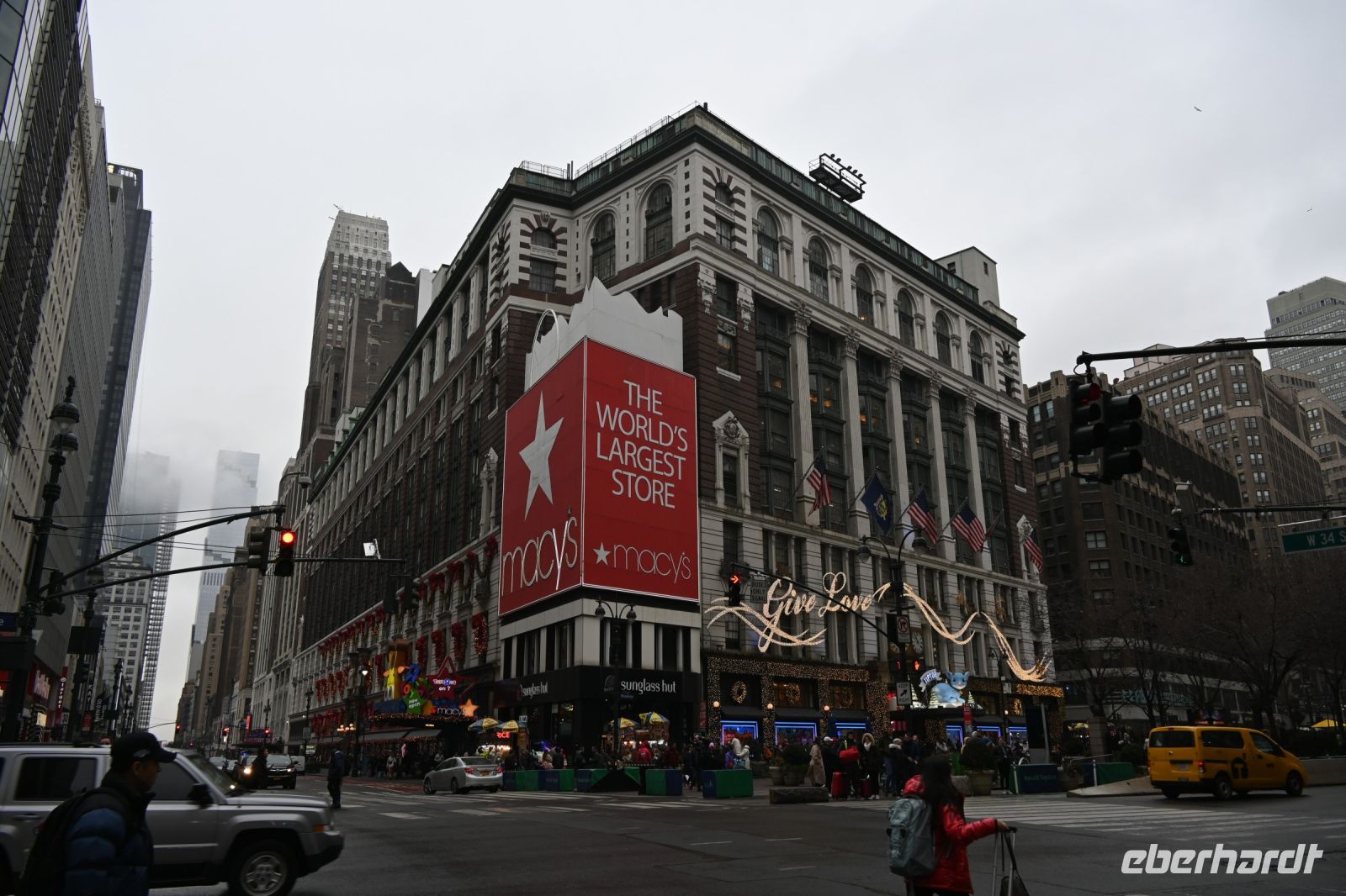 Der weitere Nachmittag steht zur freien Verfügung. Die meisten nutzen diese und besuchen das Kaufhaus Macys. Es ist das größte von New York und erstreckt sich über elf Etagen in zwei Häusern. Gar nicht so unwahrscheinlich sich hier zu verlaufen. Rund um den Time Square dominiert heute die Polizei. Bei abendlichen Event werden eine Million Menschen erwartet. Zum Glück haben wir etwas anderes vor.