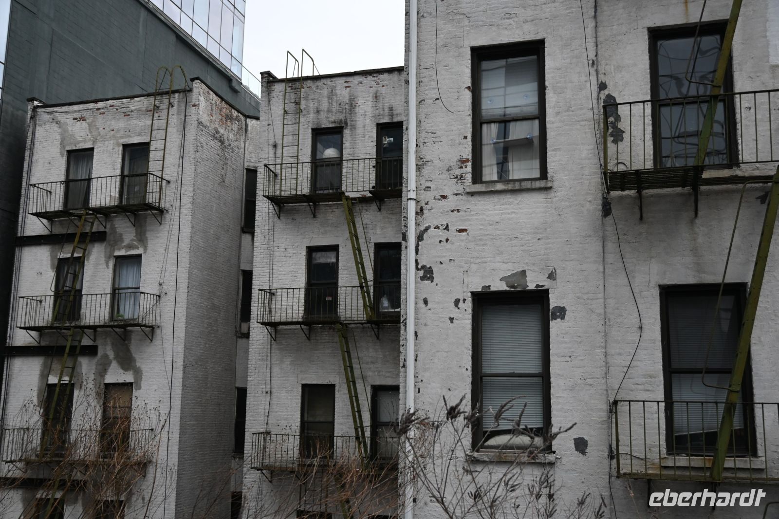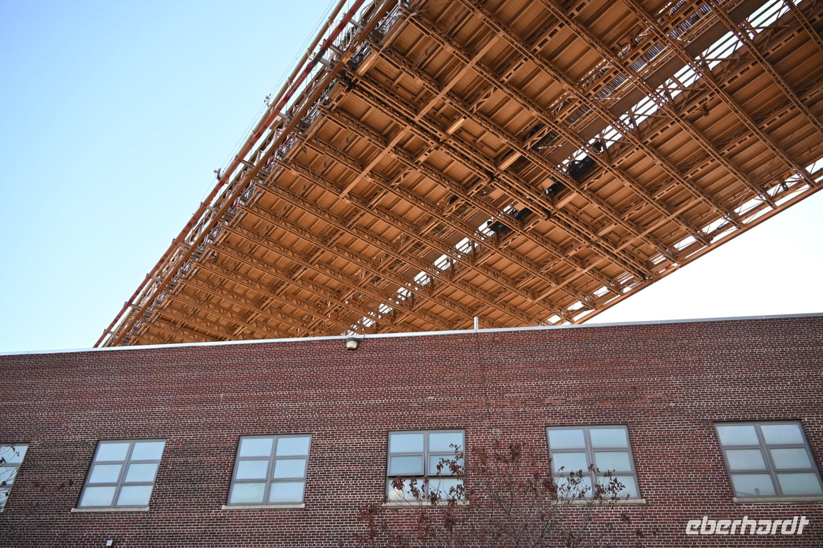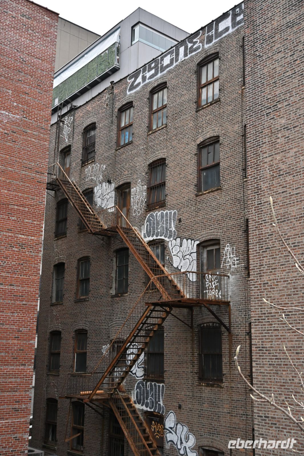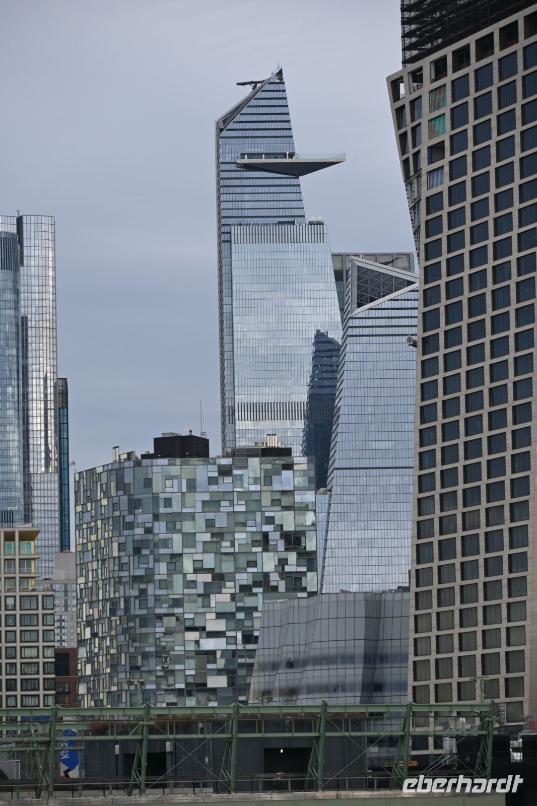 Am letzten Tag macht uns das Wetter wieder schwer uns auf den Abschied vorzubereiten. Da wir bereits 11.30 Uhr vom Flughafentransfer abgeholt werden, müssen wir unseren letzten Ausflug um 8 Uhr starten. Daher haben wir aber wieder fast leere U-Bahnen und auch vor Ort ist nicht viel los. Wir fahren bis in den Stadtteil Hudson Yards und steigen direkt an der Aussichtsplattform "Vessel" aus. Hier ist alles noch schön mit Lichterketten geschmückt. Hier gibt es direkt einen Aufstieg zur High Line. Die stillgelegte Bahntrasse wurde als Fußgängerweg ausgebaut und man kann auf dem 2,5 Kilometer langen Weg spazieren gehen. Wir bewegen uns einige Meter über der Straße und bekommen einen neuen Blick auf die Stadt. Leider ist hier nun auch Winter und wir können uns nur vorstellen, wie schön die Büsche und Blumen im Frühjahr hier aussehen werden.