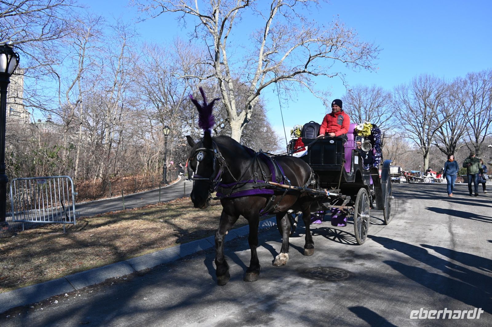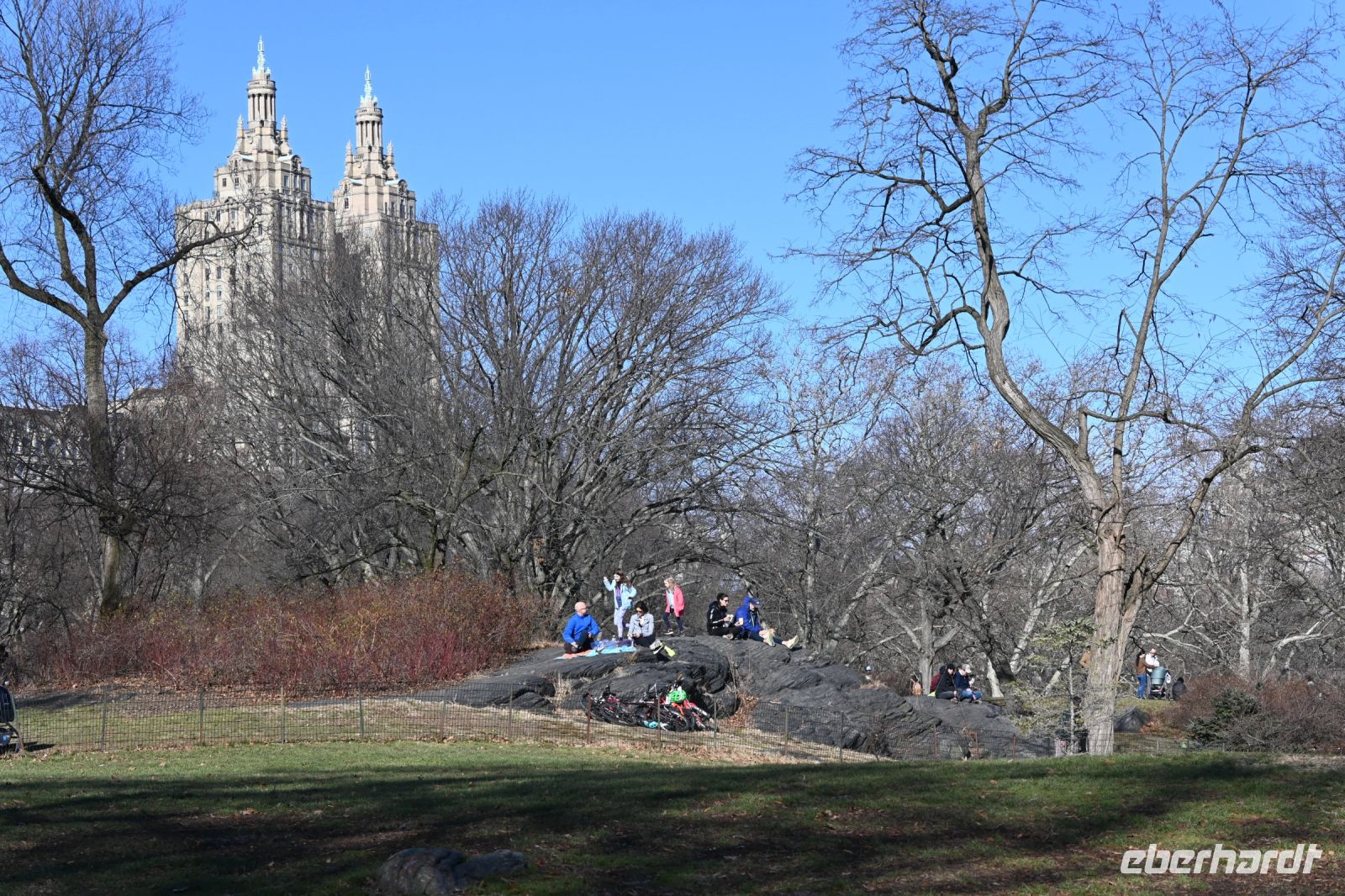 Gegen 1 Uhr legen wir wieder an und nehmen den Weg zurück zum Hotel. Nach etwas Schlaf begrüßt uns wieder die Sonne. Unser Plan ist ein ausgedehnter Neujahrsspaziergang. Vom Hotel aus laufen wir entlang der 5th Avenue. Wir kommen an der St. Patrick's Cathedral und am Trump Tower vorbei. Am bekannten Plaza Hotel nehmen wir den Weg in den Central Park. An der Schlittschuhbahn stehen bereits zahlreiche New Yorker und Touristen an, um ein paar Runden in der Sonne zu drehen. Auf der "Mall" gibt es die Möglichkeit verschiedene Kunstwerke zu kaufen oder einfach nur die Eichhörnchen zu beobachten. Nach einer kleinen Pause mit Gebäck und Getränken im Außenbereich, wer hätte gedacht, dass das am 01. Januar möglich sein kann, kommen wir noch am John Lennon Denkmal vorbei. Hier ganz in der Nähe, am Dakota Building wurde John Lennon 1980 erschossen und jedes Jahr trafen sich die Fans hier, um ihm zu gedenken.