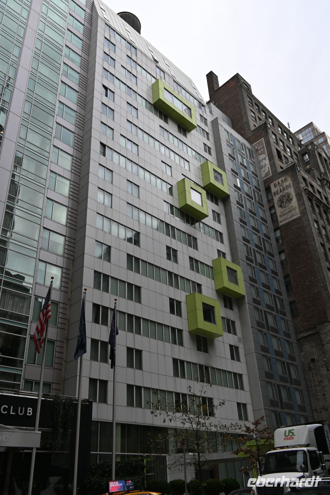 Zum Abendessen haben wir heute einen ganz besonderen Platz. Direkt über den Köpfen der vielen Menschen im Hotel Marriott genießen wir ein leckeres 2-Gang-Menü mit Blick auf den Time Square.