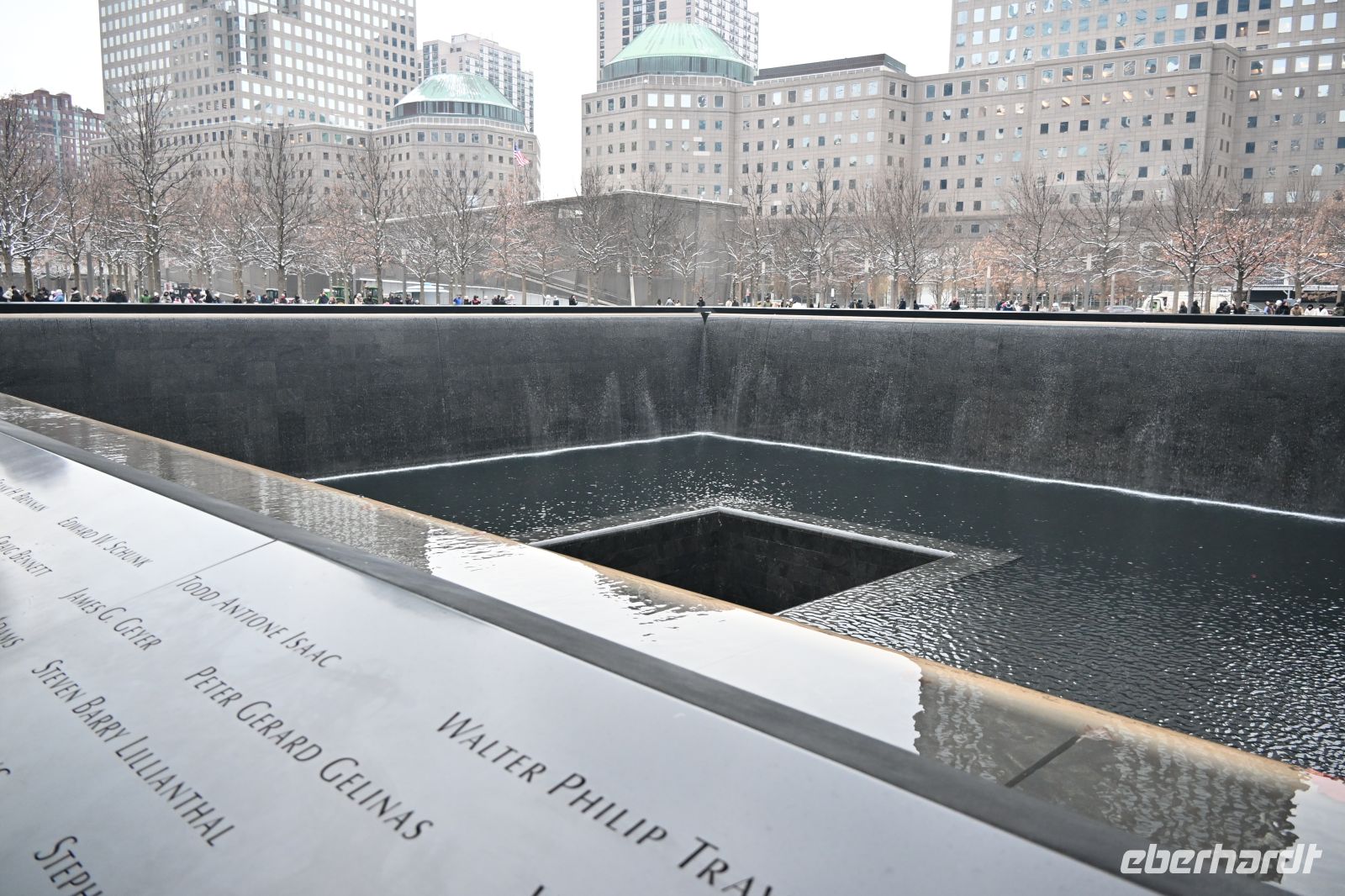 Unseren letzten Halt für heute machen wir im Finanzviertel, dass direkt an das 9/11 Memorial anschließt. Wir machen einen Spaziergang und besuchen den Charging Bull, die Wall Street, den Oculus und enden am Denkmal zum Anschlag am 11. September 2001. Jeder New Yorker hat seine eigene Geschichte zu diesem Tag und so erzählt uns Lisa auch Ihre. Kurz vor dem Anschlag auf die Zwillingstürme war sie noch im Gebäude und wollte Tickets abholen. Dort, wo die zwei Türme standen, sind jetzt riesige Wasserbecken mit allen Namen der getöteten Menschen.