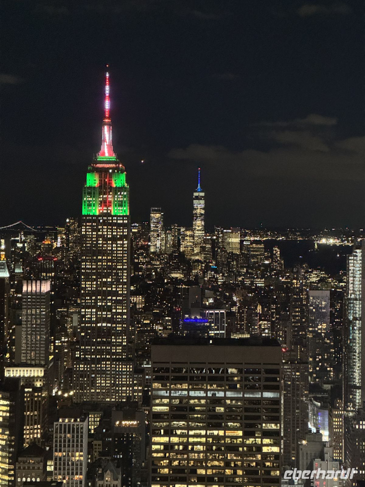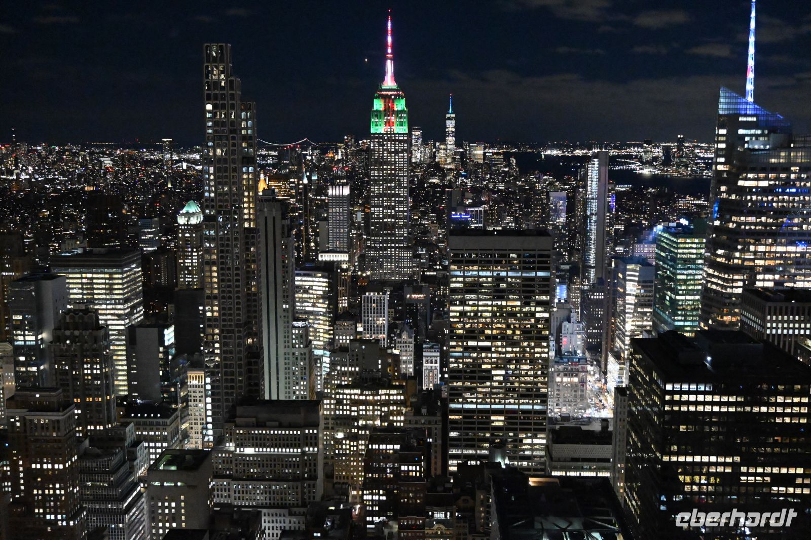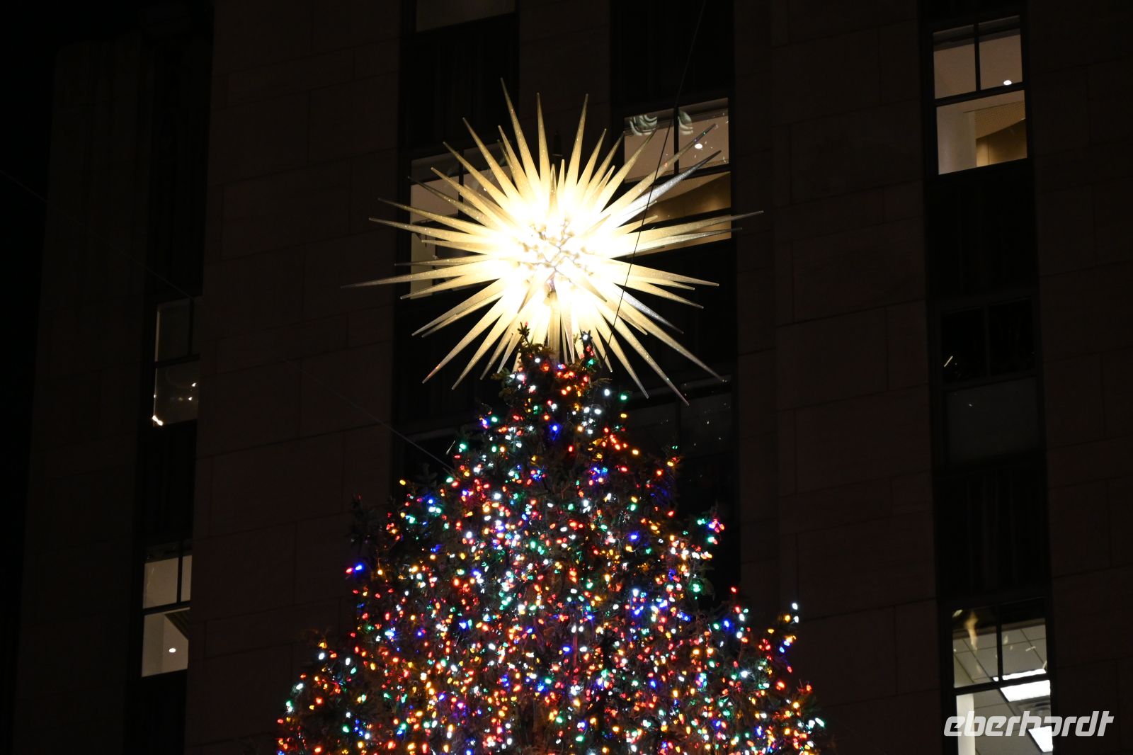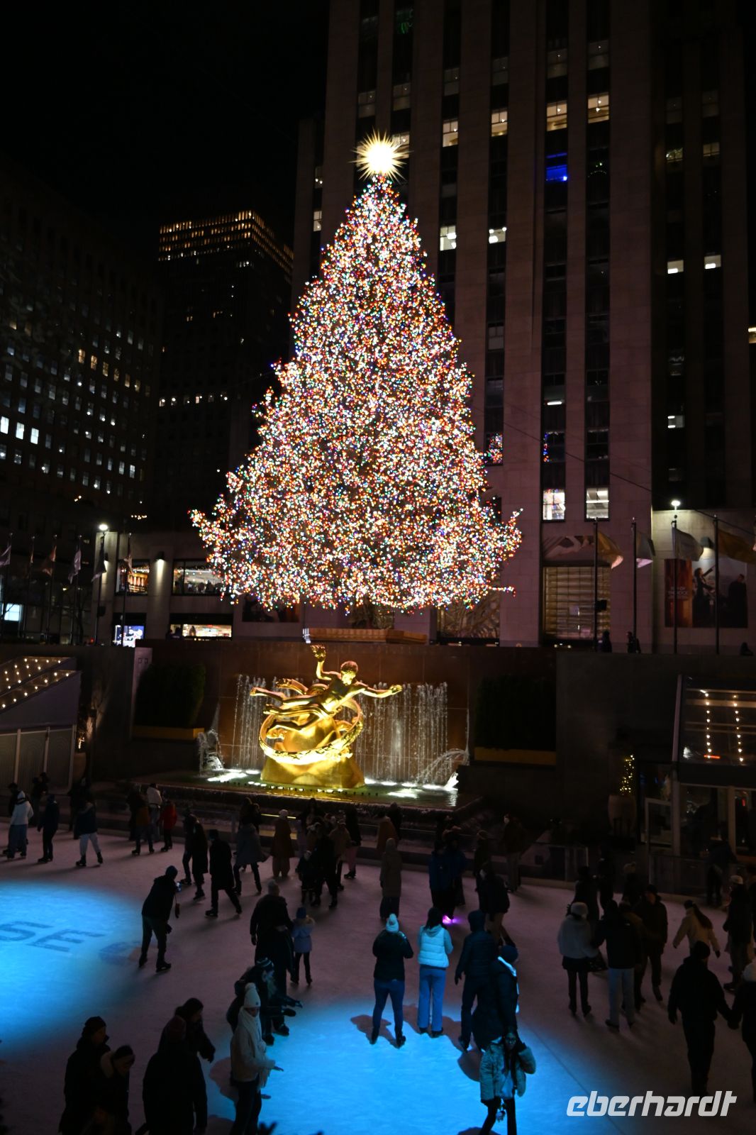 Am Nachmittag wird ein Teil der Gruppe das 9/11-Museum besuchen, das sich unter dem Memorial befindet und den Besuchern die schockierenden Ereignisse des Terroranschlags näherbringt. Jeder nimmt sich Zeit, wie er möchte, und wir treffen uns erst am Abend wieder im Hotel. Ein zweites Mal wollen wir heute hoch hinaus. Wie gewohnt pünktlich, haben noch etwas Zeit, uns umzusehen. Am Rockefeller Center steht der berühmte Weihnachtsbaum der Stadt, eine Tradition, die bereits von den Bauarbeitern zu Zeiten des Baus des Centers eingeführt wurde und bis heute fortgeführt wird.