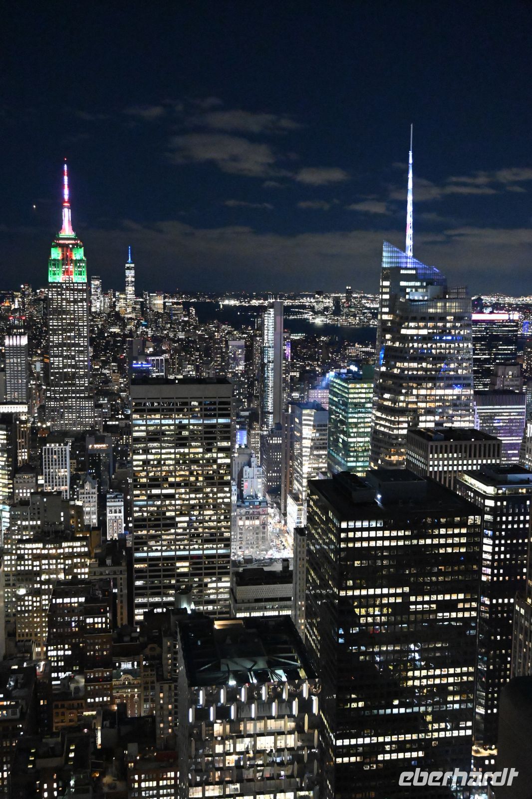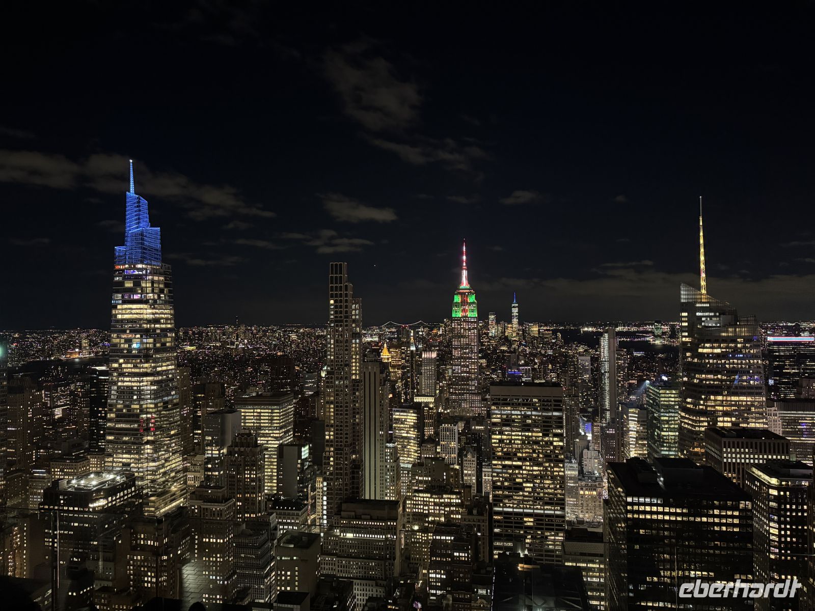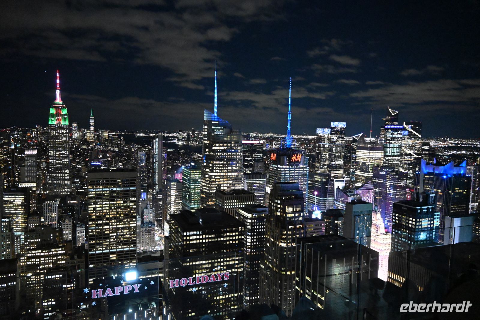 Am Nachmittag wird ein Teil der Gruppe das 9/11-Museum besuchen, das sich unter dem Memorial befindet und den Besuchern die schockierenden Ereignisse des Terroranschlags näherbringt. Jeder nimmt sich Zeit, wie er möchte, und wir treffen uns erst am Abend wieder im Hotel. Ein zweites Mal wollen wir heute hoch hinaus. Wie gewohnt pünktlich, haben noch etwas Zeit, uns umzusehen. Am Rockefeller Center steht der berühmte Weihnachtsbaum der Stadt, eine Tradition, die bereits von den Bauarbeitern zu Zeiten des Baus des Centers eingeführt wurde und bis heute fortgeführt wird.
