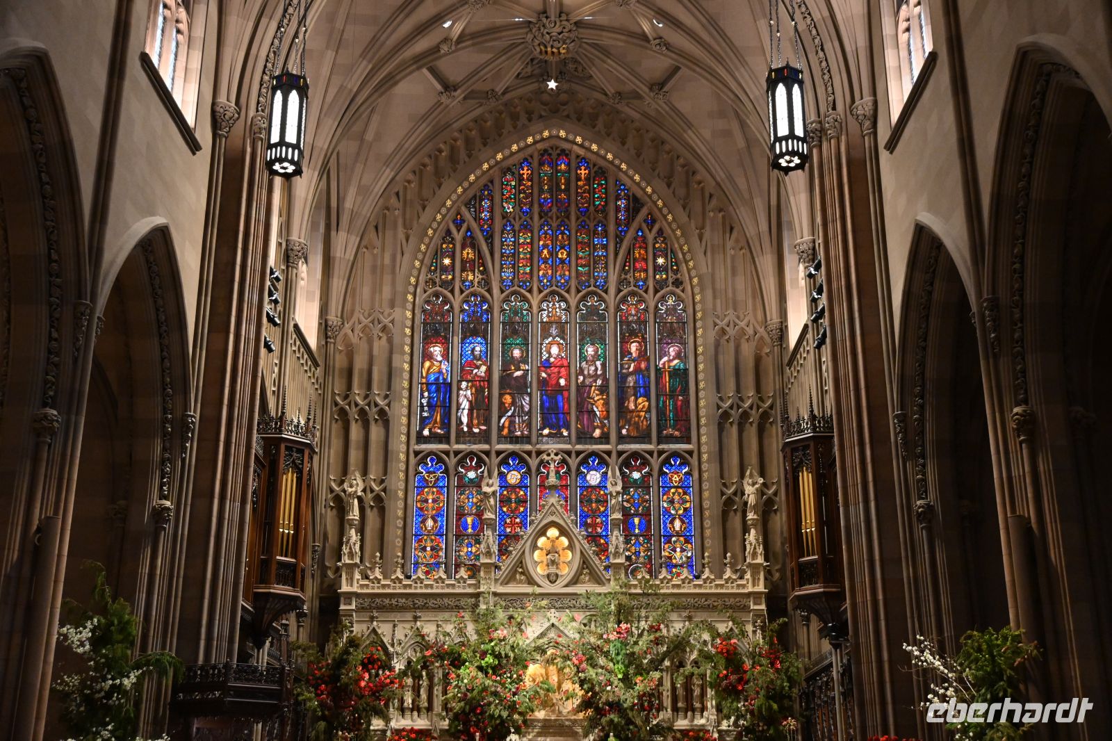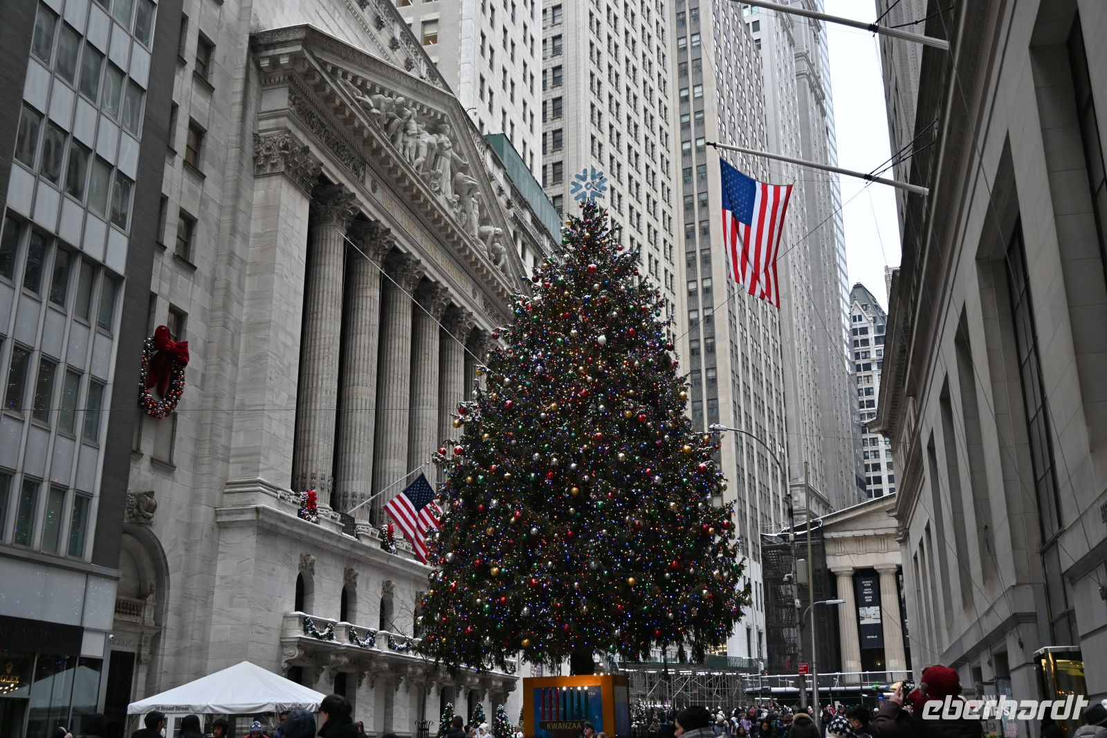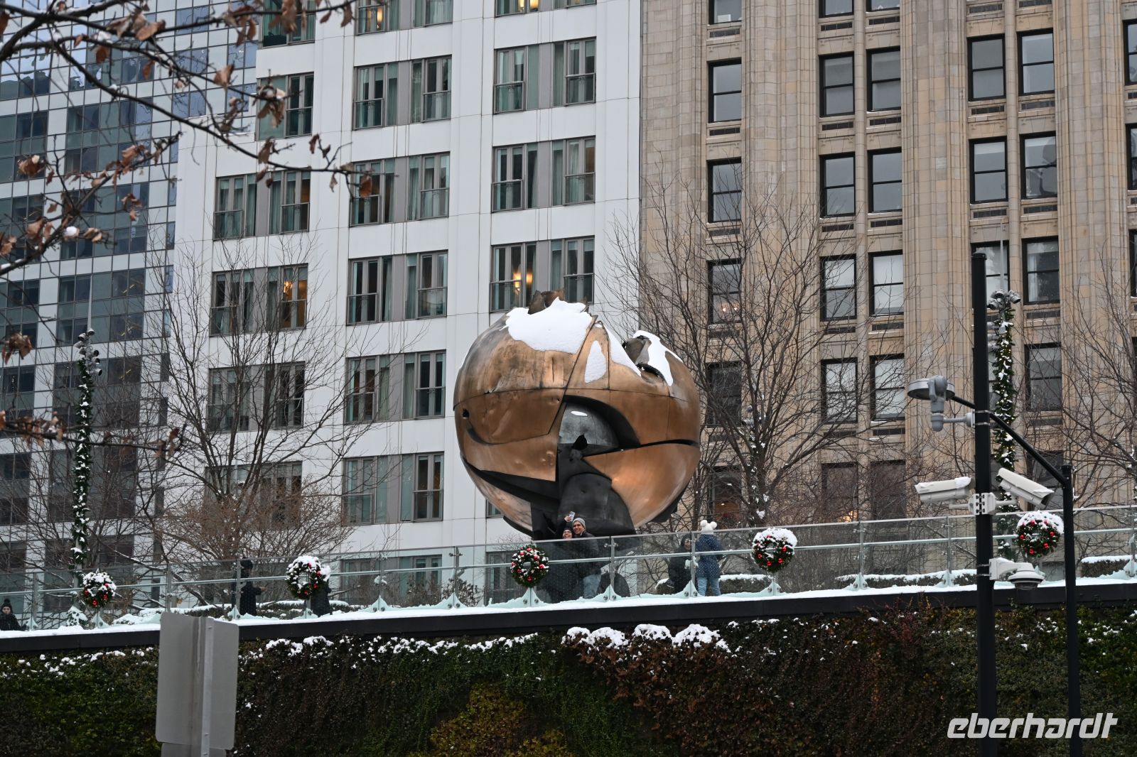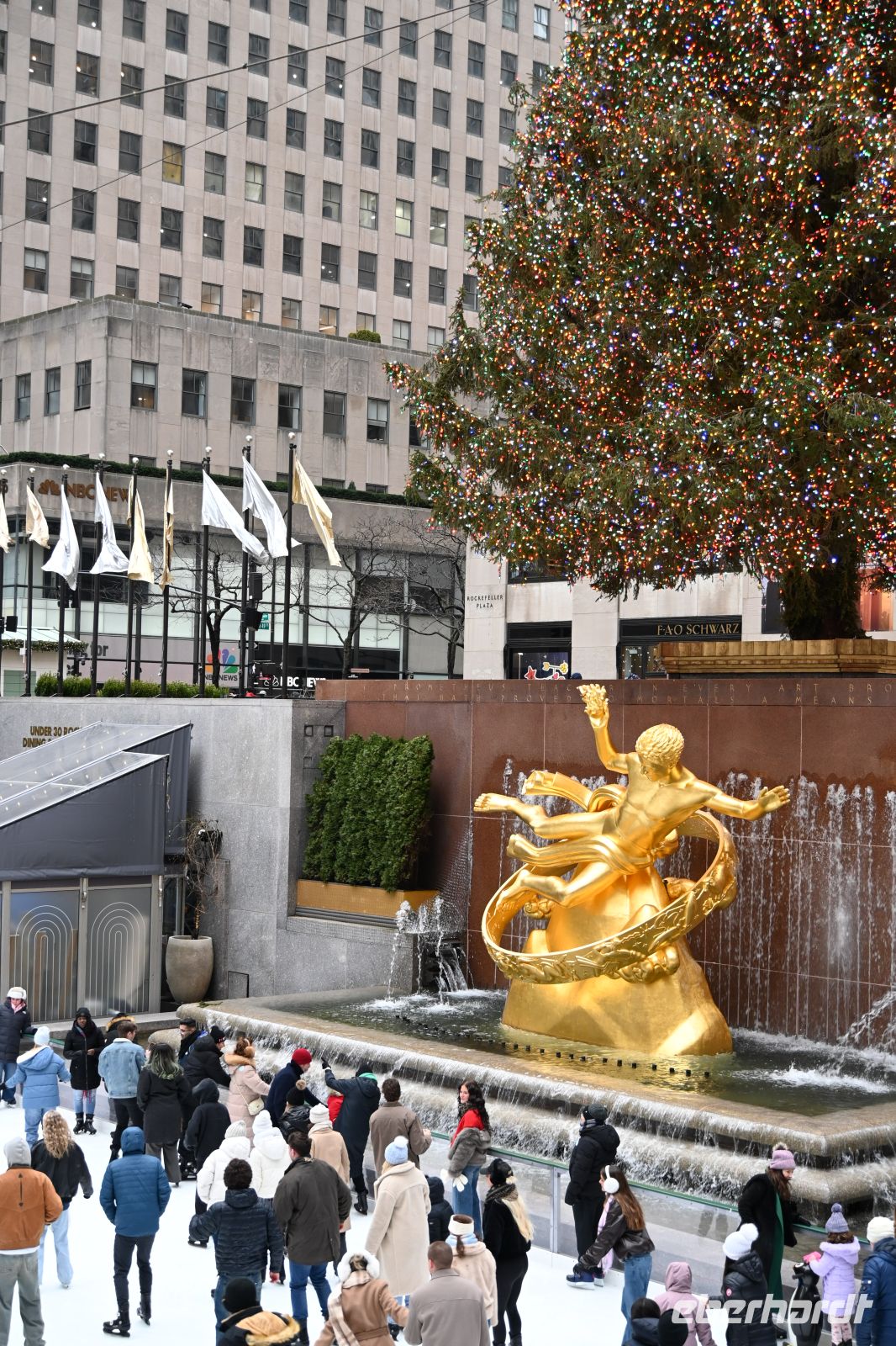 Am Nachmittag wird ein Teil der Gruppe das 9/11-Museum besuchen, das sich unter dem Memorial befindet und den Besuchern die schockierenden Ereignisse des Terroranschlags näherbringt. Jeder nimmt sich Zeit, wie er möchte, und wir treffen uns erst am Abend wieder im Hotel. Ein zweites Mal wollen wir heute hoch hinaus. Wie gewohnt pünktlich, haben noch etwas Zeit, uns umzusehen. Am Rockefeller Center steht der berühmte Weihnachtsbaum der Stadt, eine Tradition, die bereits von den Bauarbeitern zu Zeiten des Baus des Centers eingeführt wurde und bis heute fortgeführt wird.
