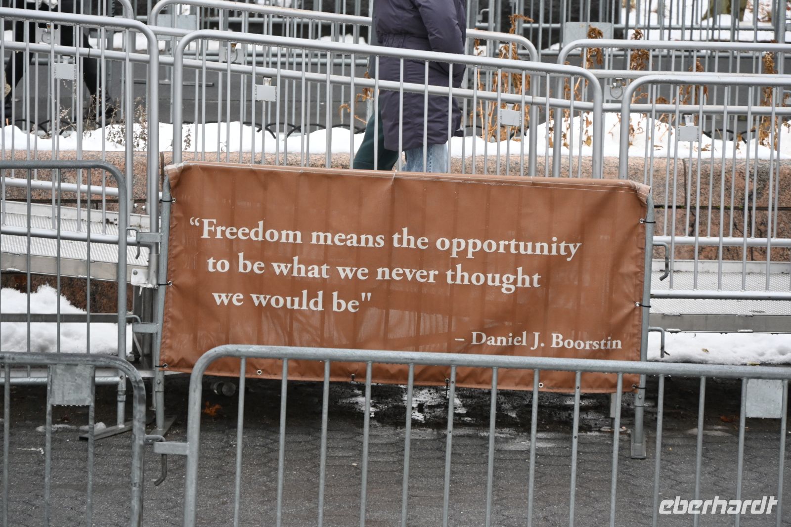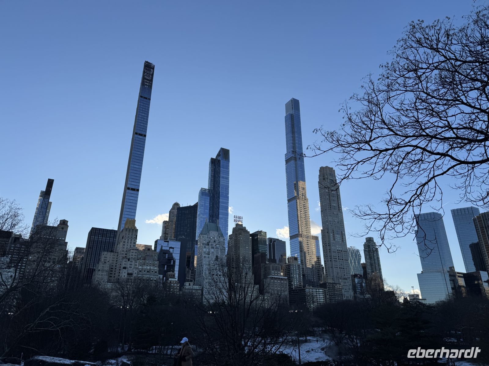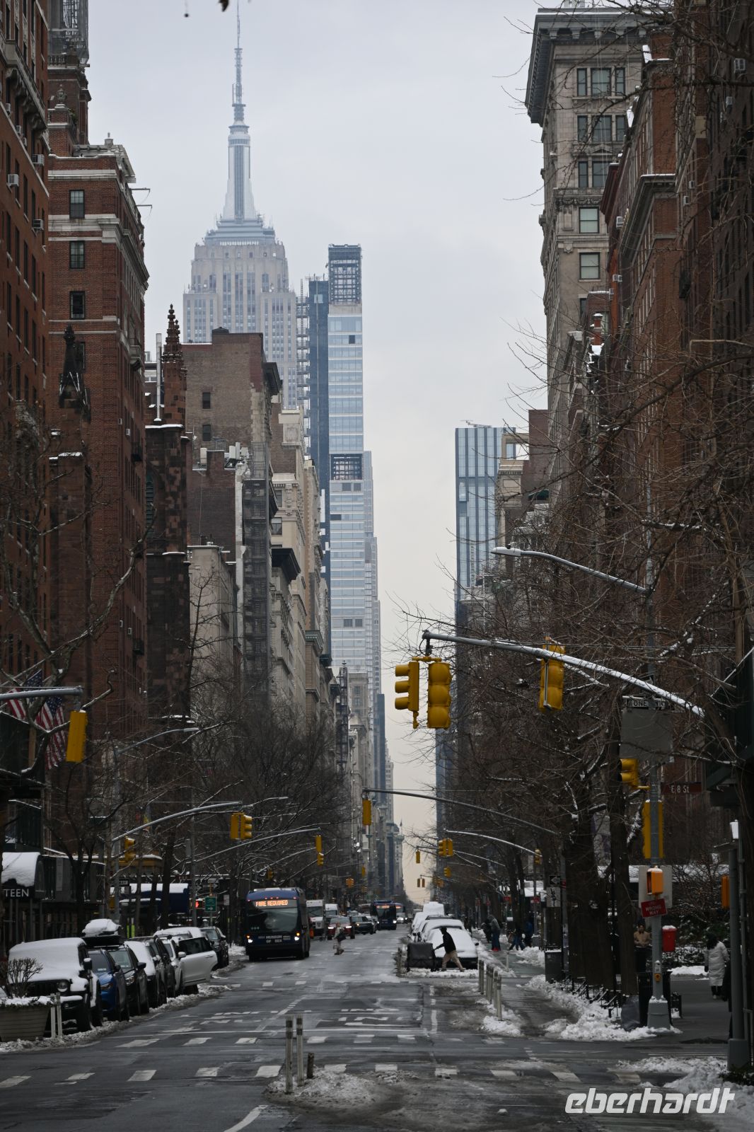 Der neue Tag begrüßt uns mit eisigen Temperaturen und Sonnenschein. Für heute erwartet uns ein Tag gemeinsam mit der Reiseleiterin Lisa. Sie ist bereits seit mehreren Jahrzehnten in New York und zeigt uns heute ihre Stadt. Um noch die Schneepracht zu genießen, legen wir die ersten Stopps am Central Park ein. 4 × 1 km große Park ist die grüne Lunge von New York City und begeistert zu jeder Jahreszeit, die New Yorker und auf seine Touristen. Lisa berichtet uns viel über die Entstehung der Stadt und das Leben der über 8 Millionen Einwohner in über 100 Nationalitäten. Entlang der 5th Avenue fahren wir in den Süden der Stadt und durchqueren verschiedene Viertel, wie Soho und das Greenwich Village. Auch die alten Häuser mit den Feuerleitern sind sehenswert.