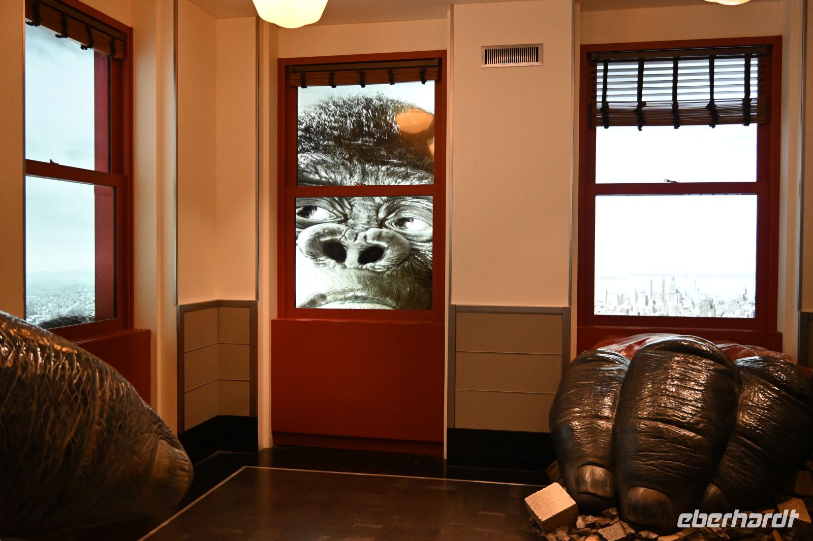 Die vierte und letzte Auffahrt auf eine Aussichtsplattform führt uns zum berühmtesten Gebäude der Stadt - dem Empire State Building. International machte sich das Gebäude durch den Kinofilm "King Kong" einen Namen. Immer wieder werden hier Szenen für bekannte Filme gedreht. In der kleinen Ausstellung im Erdgeschoss machen wir uns davon ein genaueres Bild. Hier erfahren wir auch, dass das Gebäude in nur 1 Jahr und 45 Tages errichtet wurde.