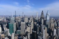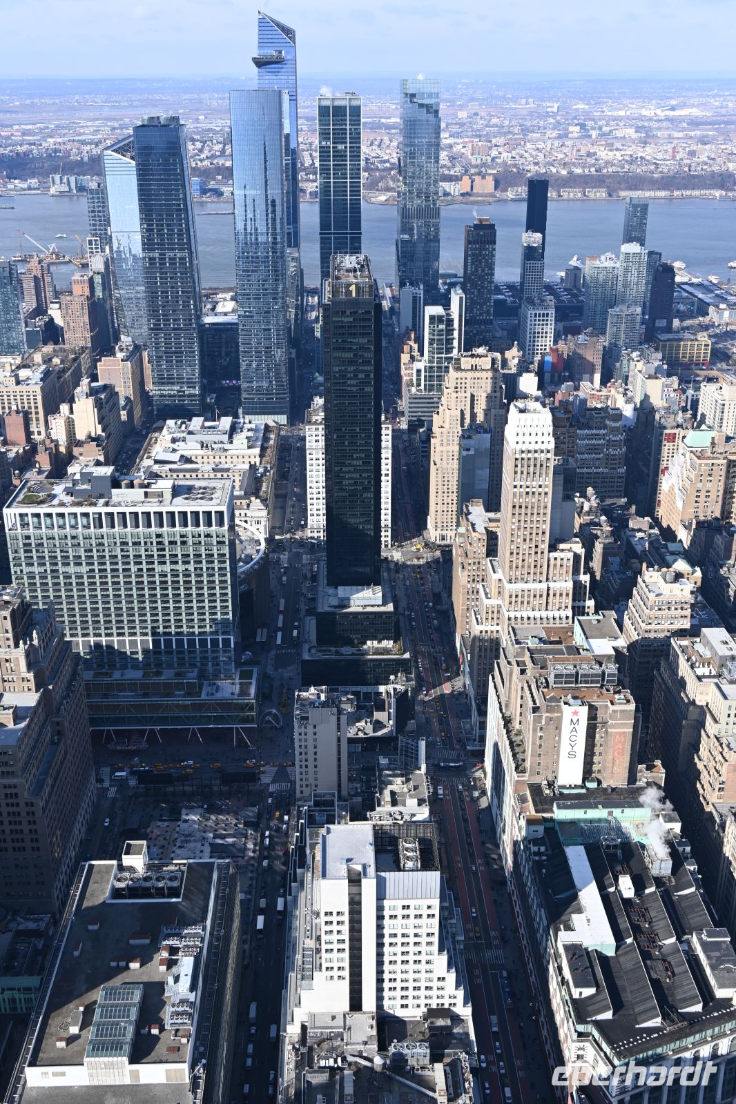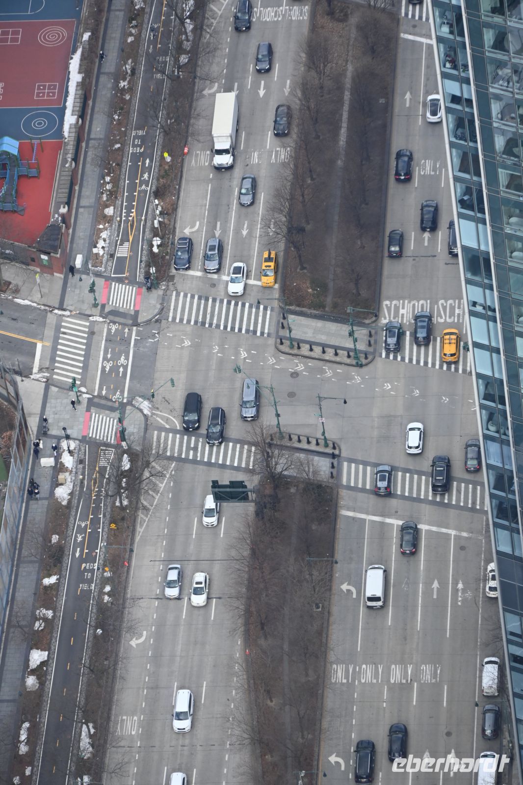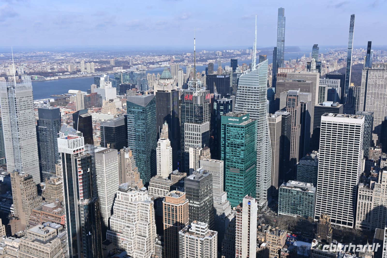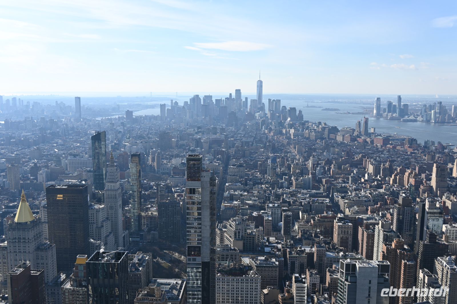 Heute wollen wir auf das höchste Gebäude der Stadt, dem One World Trade Center. Von hier haben wir freie Sicht auf die ganze Stadt und auch rüber nach New Jersey. Bei solch guten Bedingungen kann man bis zu 65 Kilometer weit sehen. Nach den Ereignissen des 11. Septembers 2001 wurde der Bau des Wolkenkratzers 2006 begonnen und 2014 abgeschlossen.