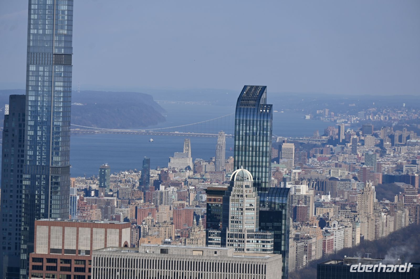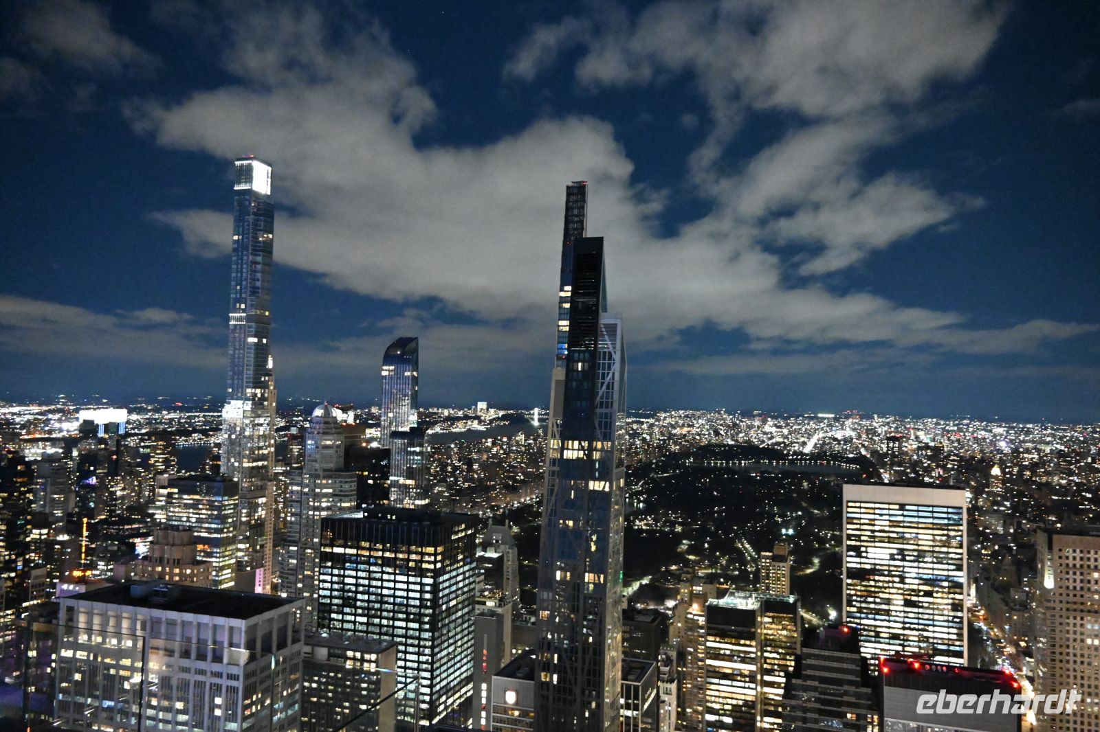 Im Anschluss fahren wir zurück zum Hotel und haben dort die Möglichkeit das Gesehene kurz zu verarbeiten, bevor es schon wieder weitergeht. Denn am heutigen Abend wollen wir uns die Stadt das erste Mal von oben ansehen. Nicht weit vom Hotel entfernt, wurde vor wenigen Jahren die Aussichtsplattform SUMMIT One Vanderbilt eröffnet. Auf drei Etagen sehen wir die Stadt in einem ganz neuen Winkel. Die Auffahrt war genau zum richtigen Zeitpunkt gewählt, denn als wir wieder unten ankommen, fängt es an zu regnen und die Spitze des Gebäudes wird von einer dichten Wolke umhüllt.
