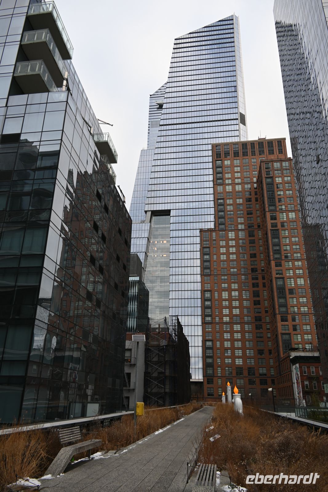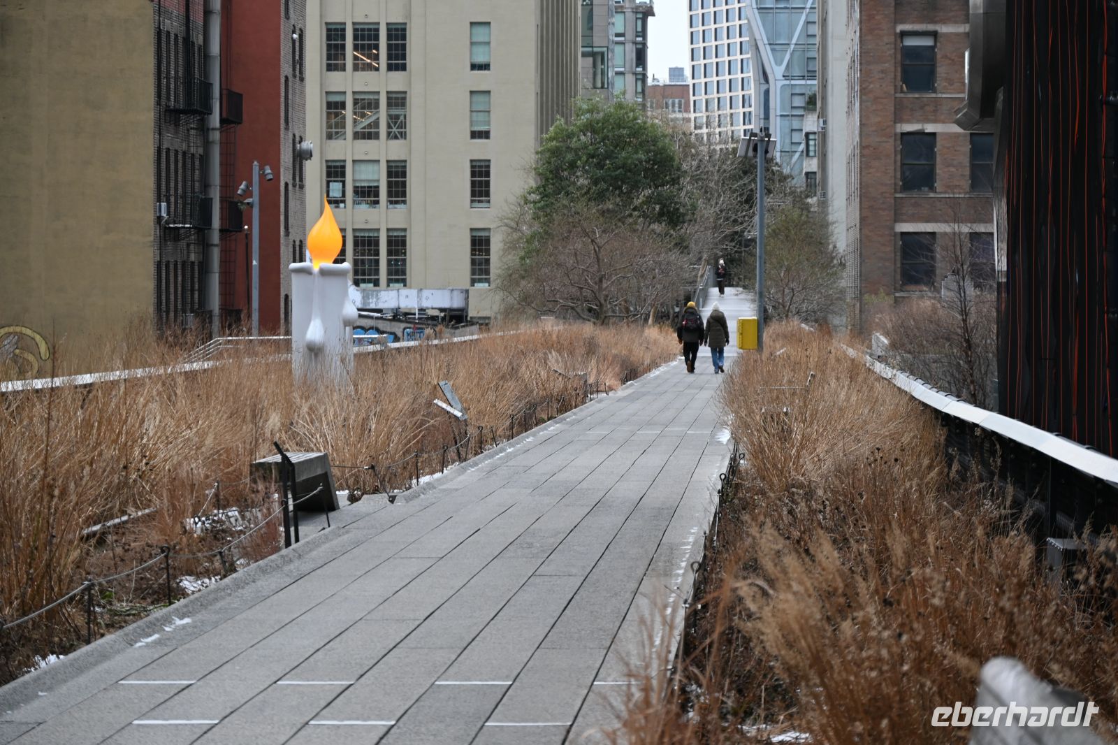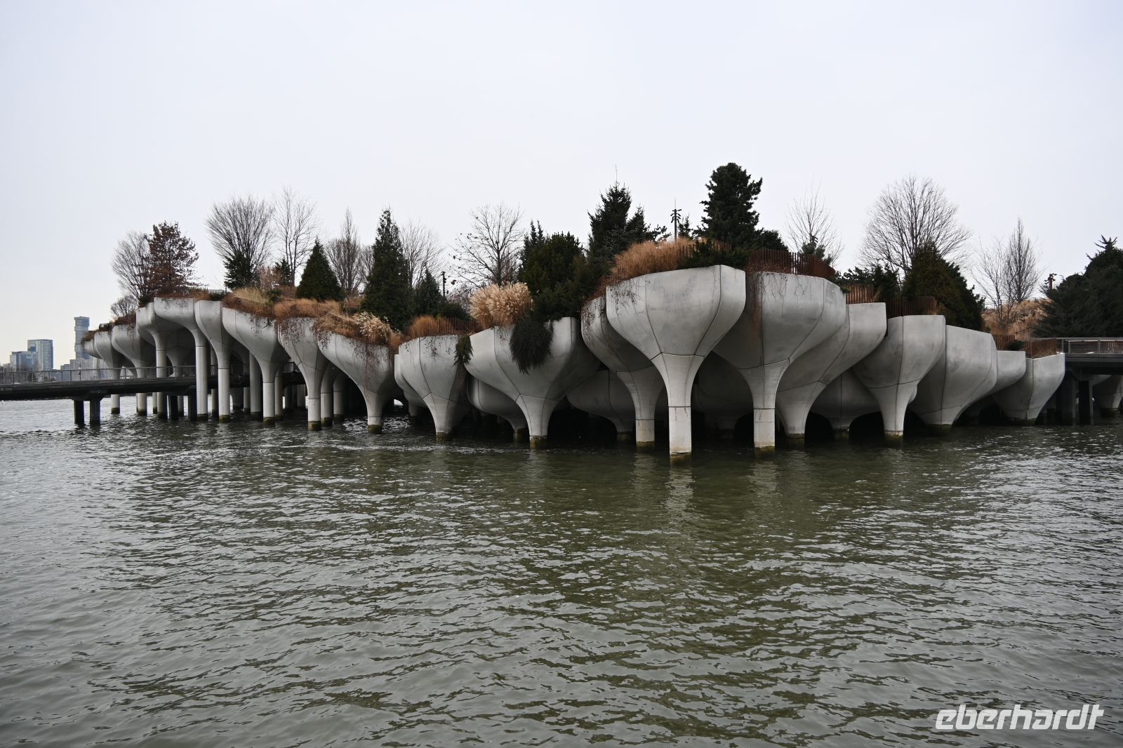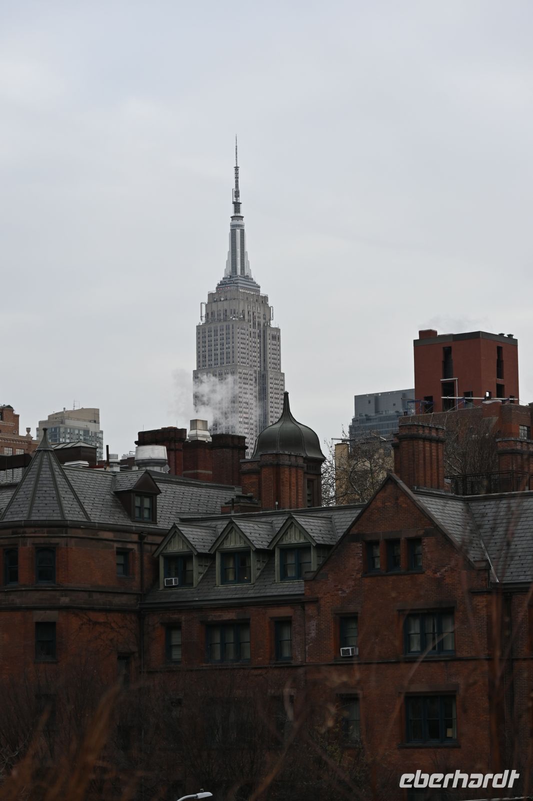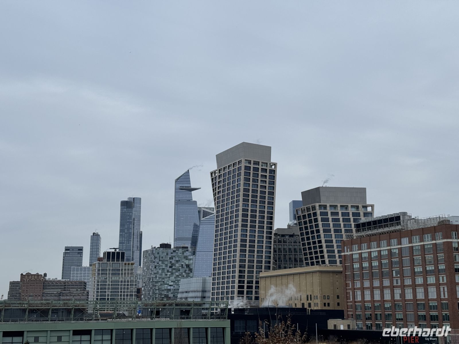 Das Hudson Yards-Viertel wurde erst seit 2012 erbaut. Ein echtes Highlight ist die fast drei Kilometer lange High Line, eine ehemalige Güterzugstrecke, die nun als Fußgängerweg mit grünen Beeten umgestaltet wurde. Da es noch früh am Tag ist, ist es hier ziemlich ruhig, und wir können entspannt entlang des Weges spazieren und neue Perspektiven auf die Straßen von Manhattan genießen. Am Ende der High Line erreichen wir den Hudson River. Erst 2021 wurde hier die "Little Island" eröffnet, eine kleine grüne Insel, die auf Stelzen über dem Wasser schwebt. An diesem Pier 54 sollte 1912 die Titanic ankommen. Der angrenzende Meatpacking District, der früher als Schlachterviertel bekannt war, ist mittlerweile eines der angesagtesten Viertel der Stadt. Die alten Klinkergebäude, die früher als Schlachthöfe dienten, beherbergen heute auch den Chelsea Market, wo einst eine der Fabriken für die berühmten Oreo-Kekse war. Leider sind die Geschäfte noch nicht geöffnet, aber später kann man hier hervorragend essen oder handgemachten Schmuck und Kleidung kaufen.