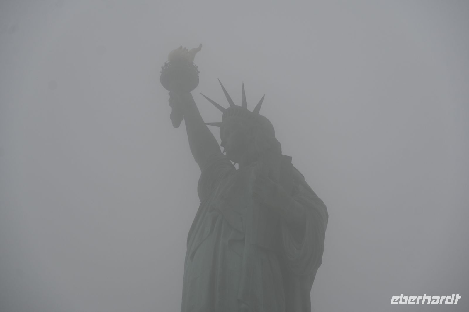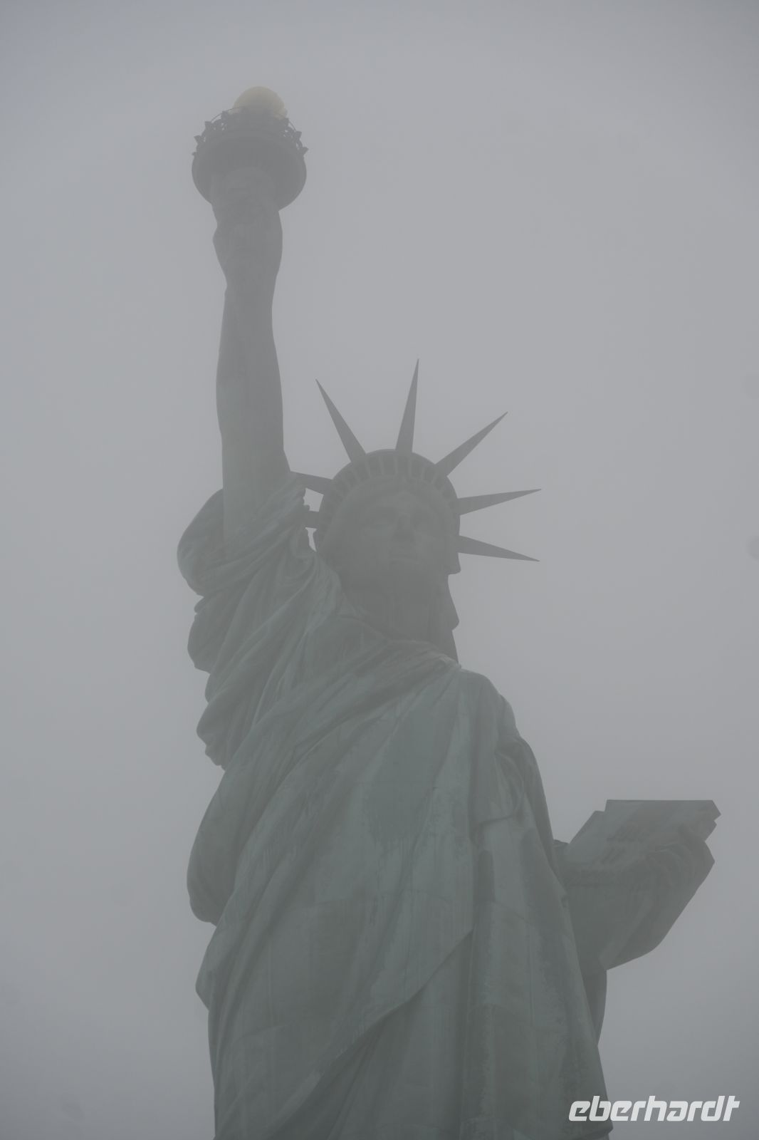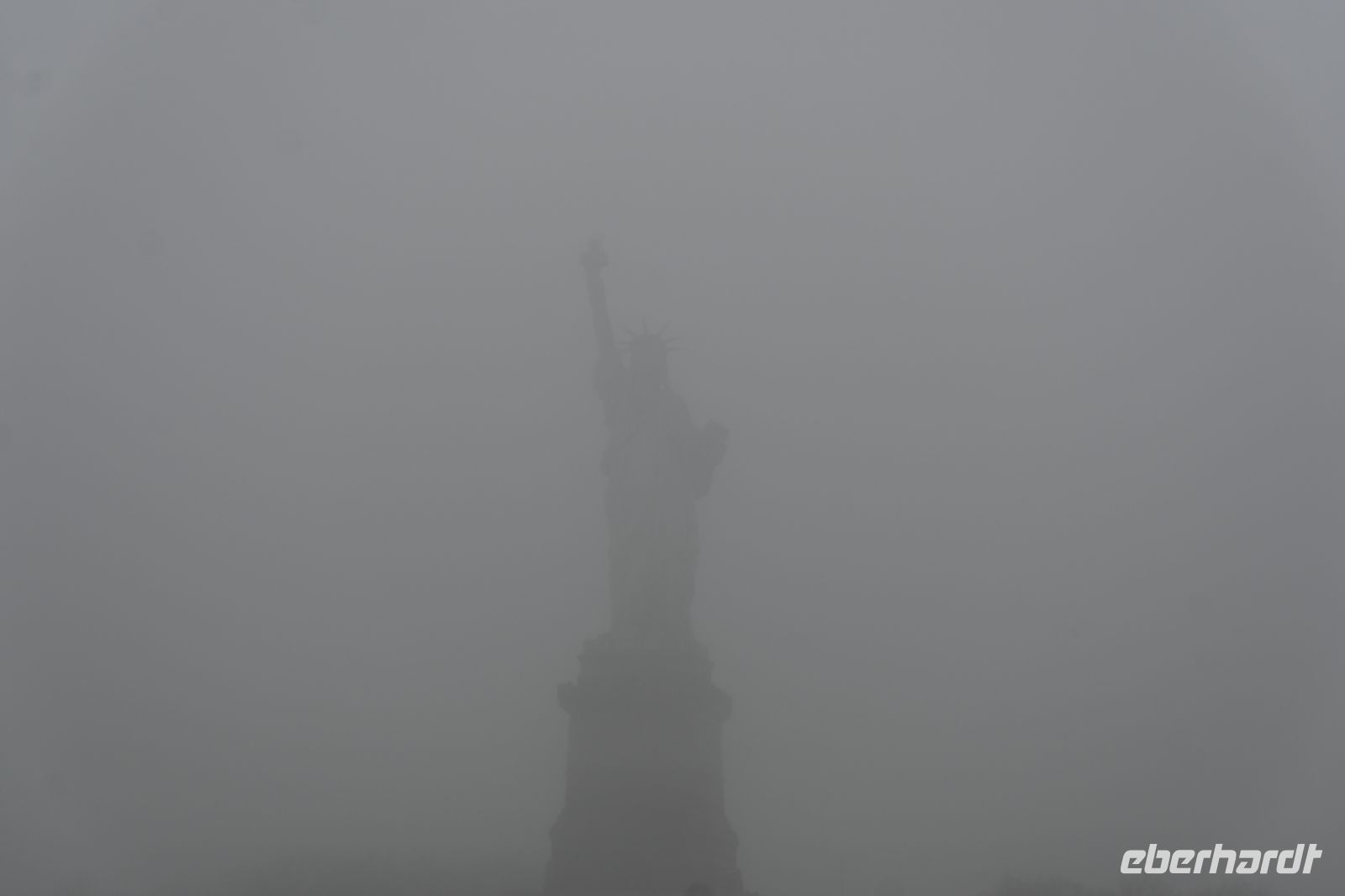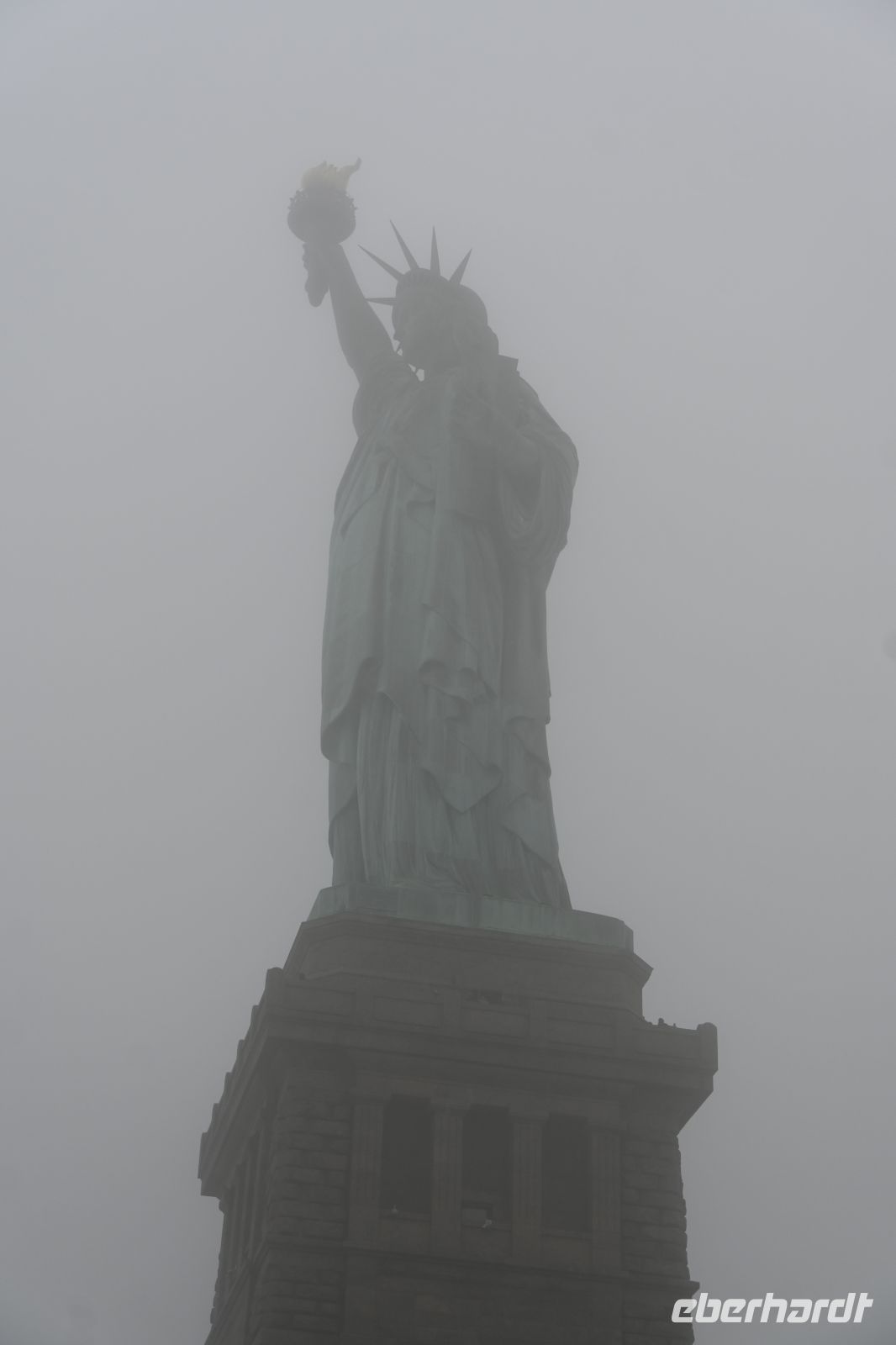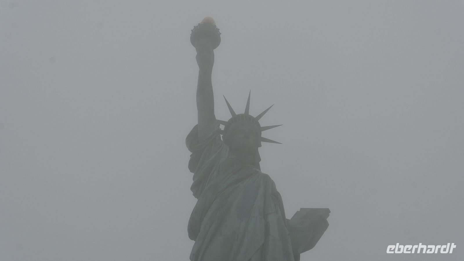 Das von gestern Wetter hält sich hartnäckig. Dichte Wolken umhüllen immer noch die Hochhäuser. Unser Tagesprogramm widmet sich heute der Geschichte der USA und seine Millionen Einwanderer, Ende des 19. Jahrhunderts. Mit der Subway fahren wir in den Süden Manhattans und nehmen dort die Fähre nach Liberty Island. Seit 1886 steht hier wohl die berühmteste Frau der Welt auf einem sternförmigen Sockel. Die Freiheitsstatue ist ein Geschenk Frankreichs an die USA zum 100. Jubiläum der Unabhängigkeitserklärung.