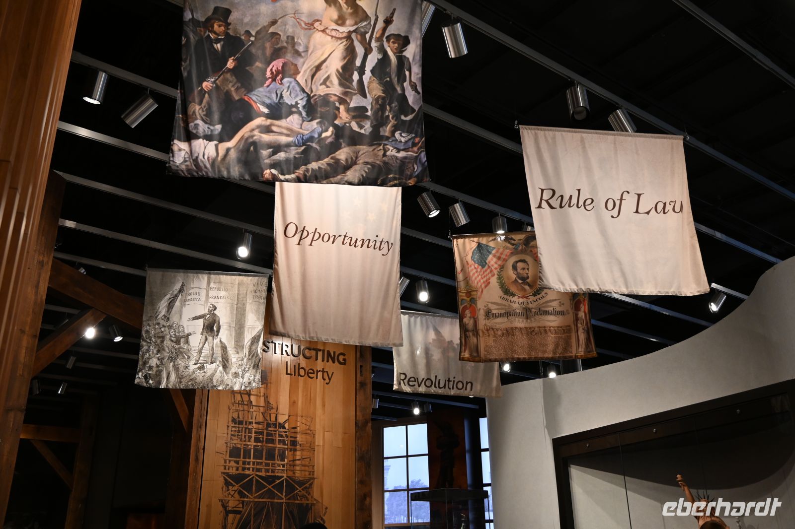 Mit der Fähre setzen wir über nach Ellis Island, der Einwandererinsel. Zwischen 1892 und 1954 kamen Millionen Menschen in das Land der unbegrenzten Möglichkeiten, und die Insel war ihre erste Anlaufstelle. In der umfangreichen Ausstellung lernen wir heute, wie es den Menschen erging und welcher Bedingungen sie für die Einreise erfüllen mussten.