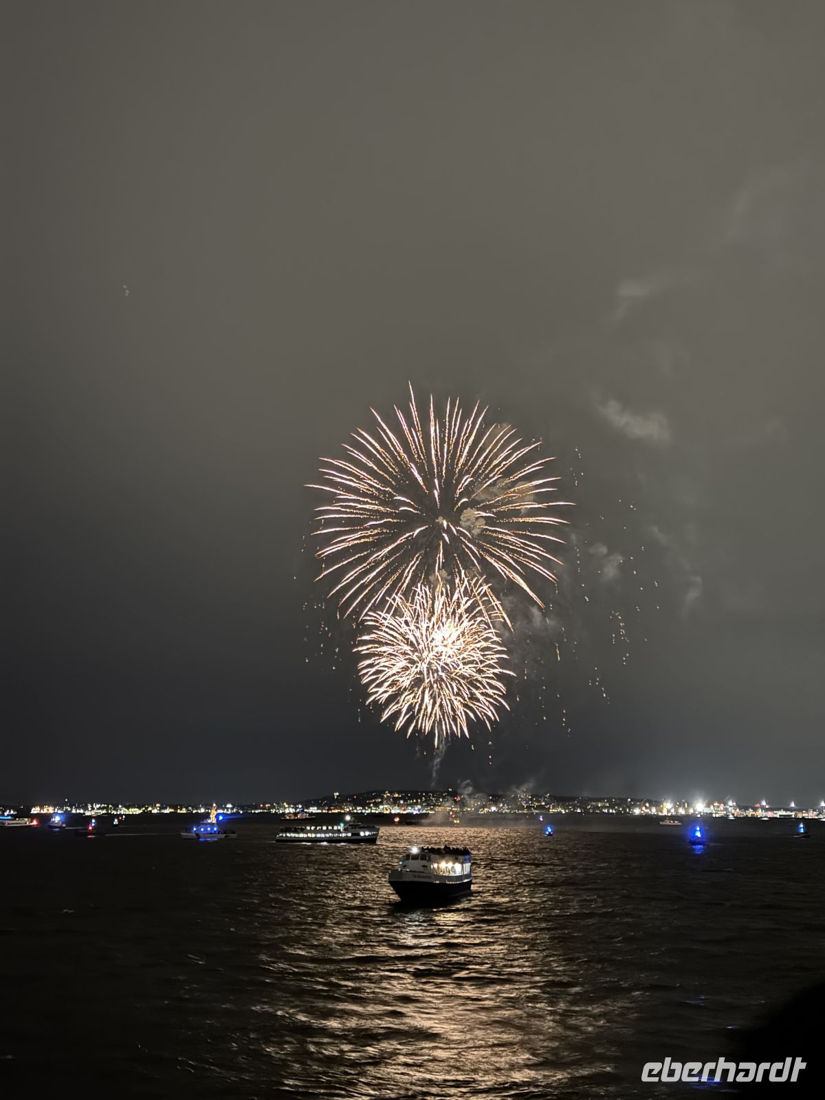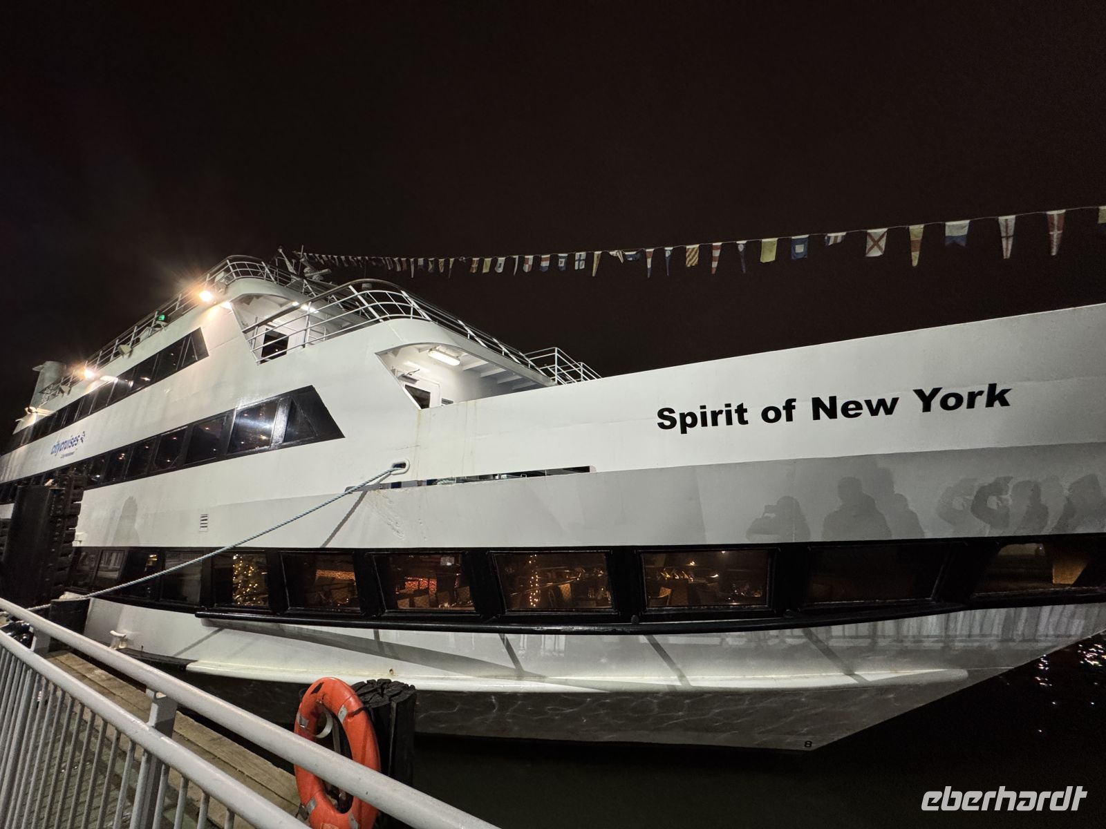 Freunde und Familie schicken unterdessen schon Neujahrsgrüße. Gegen 20 Uhr ist es bei uns auch soweit und wir fahren mit Bahn und Bus zum Pier 61, in den Südwesten der Stadt. Hier startet unsere dreistündige Silvesterschifffahrt mit Buffet, Freigetränken, Musik und Tanz. Um Mitternacht treffen wir uns auf dem Außendeck. Wir haben in der Nähe der Freiheitsstatue geankert und haben einen Blick auf die Skyline und das kleine Feuerwerk.