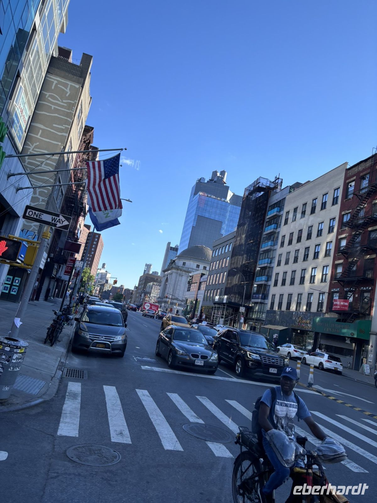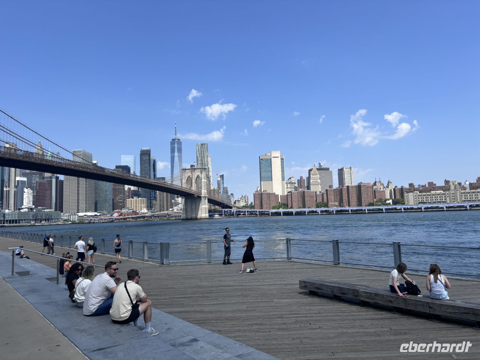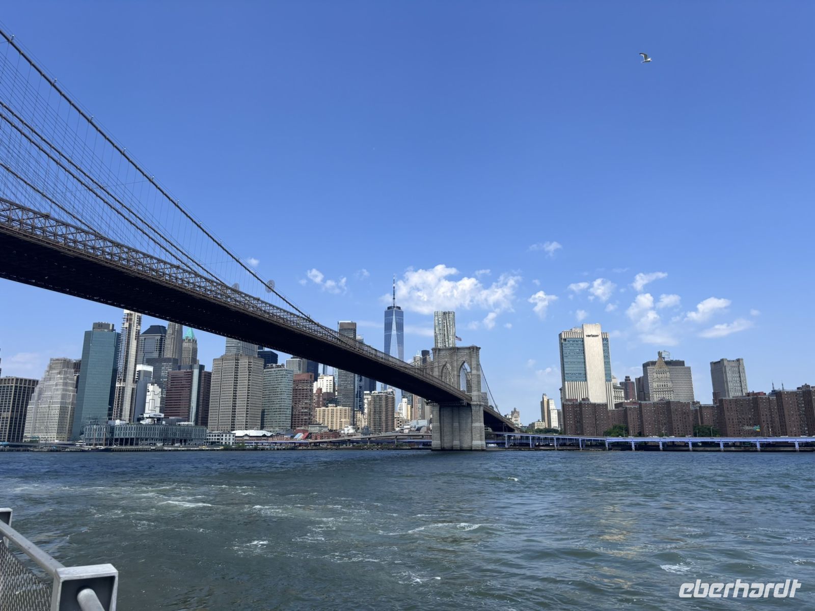 Wir überquerten die 1,8 km lange Brooklyn Bridge in Richtung Manhattan mit der atemberaubenden Skyline vor uns. Bei diesem Anblick hat man auch für einen kurzen Moment die warmen Temperaturen vergessen.