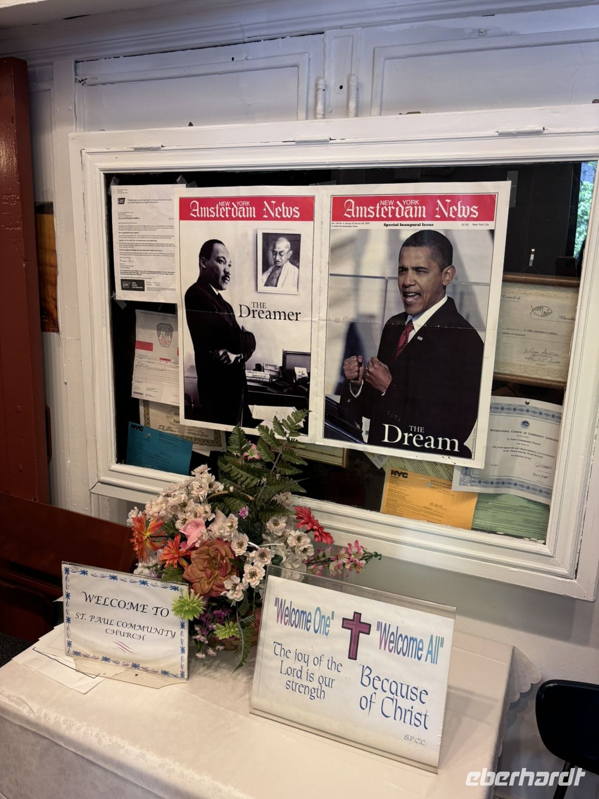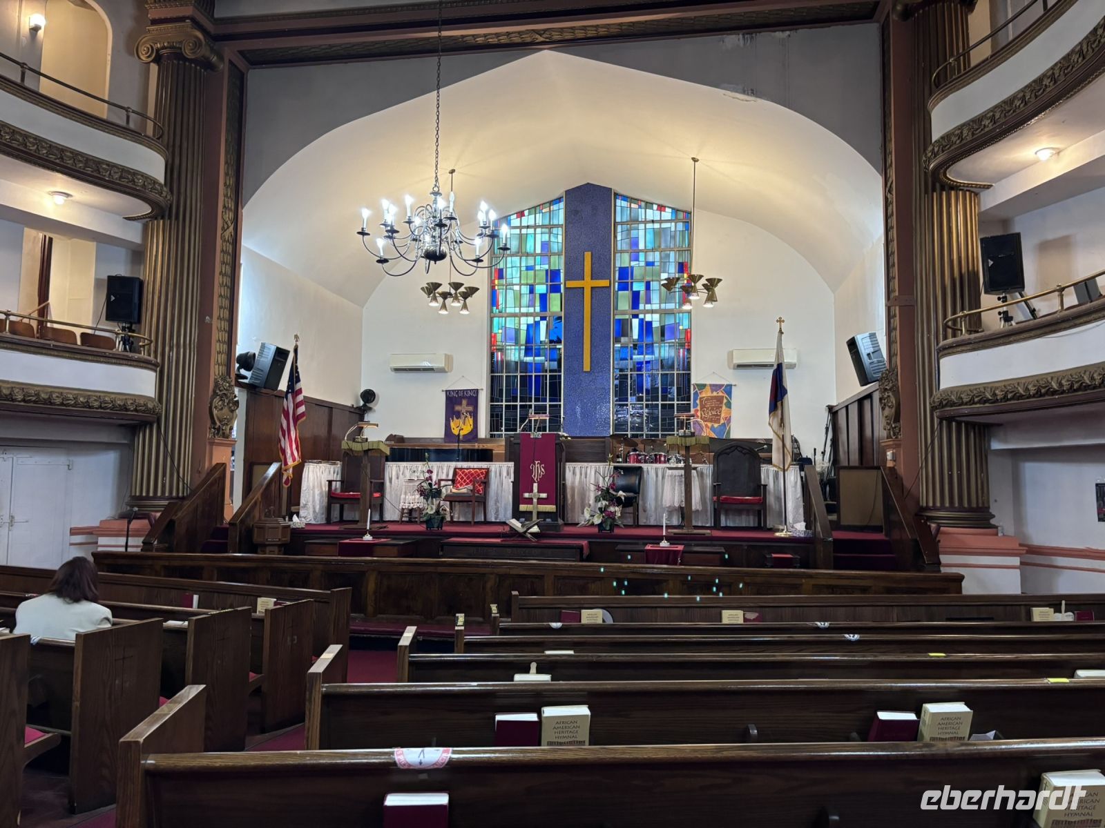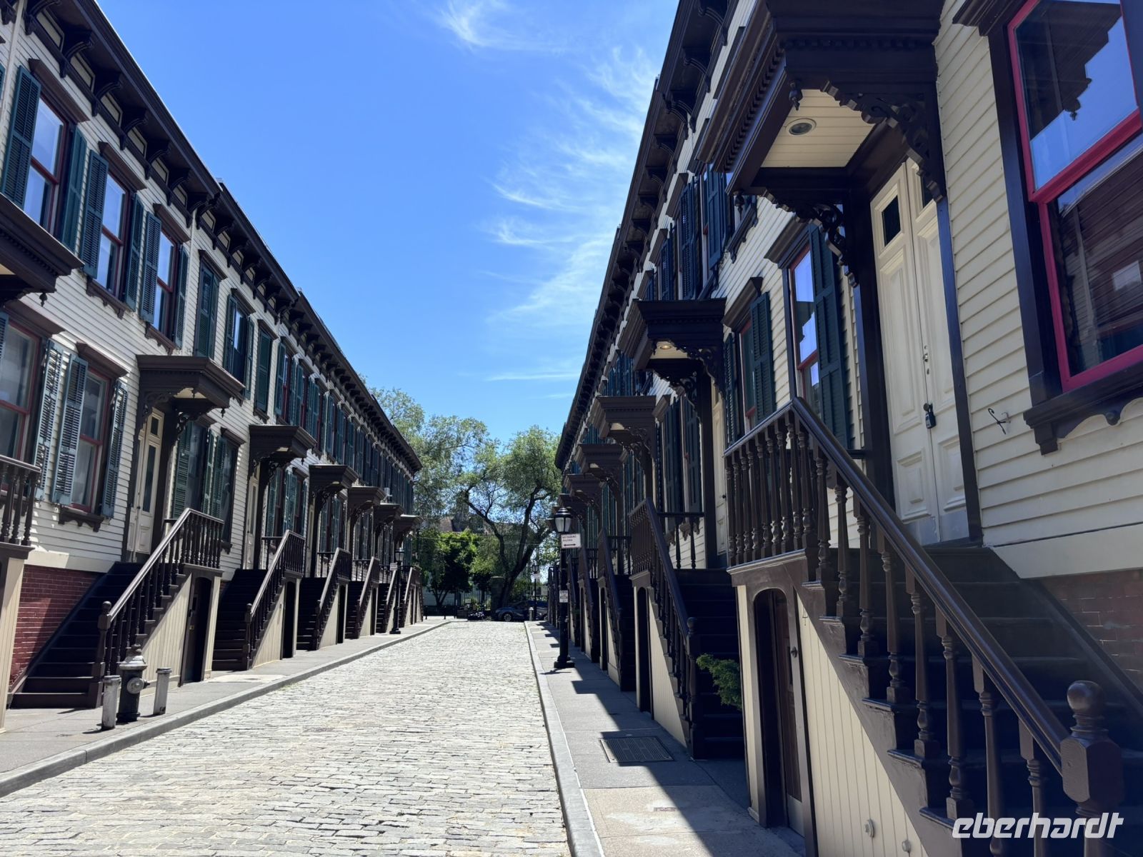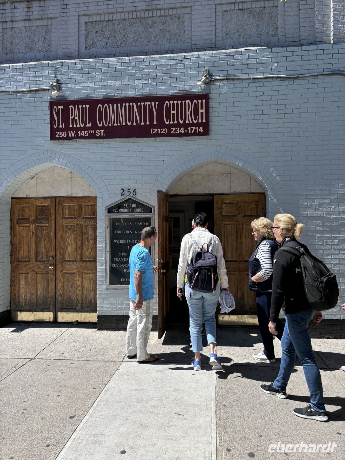 Wir machten einen kleinen Spaziergang durch den Bahnhof und stiegen wieder in unseren Bus ein. 11:00 Uhr hatten wir einen Termin. Es war Sonntag und somit nutzen wir die Gelegenheit, an einem Gospelgottesdienst in Harlem teilzunehmen. Nach 30 Minuten Power-Gesang in der St. Paul Community Church ging unsere Tour weiter durch Harlem. Wir hielten an der Morris-Jumel Mansion, dem ältesten Gebäude in Manhattan aus dem Jahr 1776, das während des amerikanischen Unabhängigkeitskrieges George Washingtons Hauptquartier war. Eine hübsche alte Villa mit einem schönen Garten. Doch noch beeindruckender war die kleine Straße Sylvan Terrace neben der Mansion, mit mehreren Stadthäusern aus den 1880er Jahren. Eine historische Ansammlung von 20 dreistöckigen Holzstadthäusern, wo früher die Bediensteten wohnten und nun Wohnhäuser im Wert von einer Million Dollar sind.