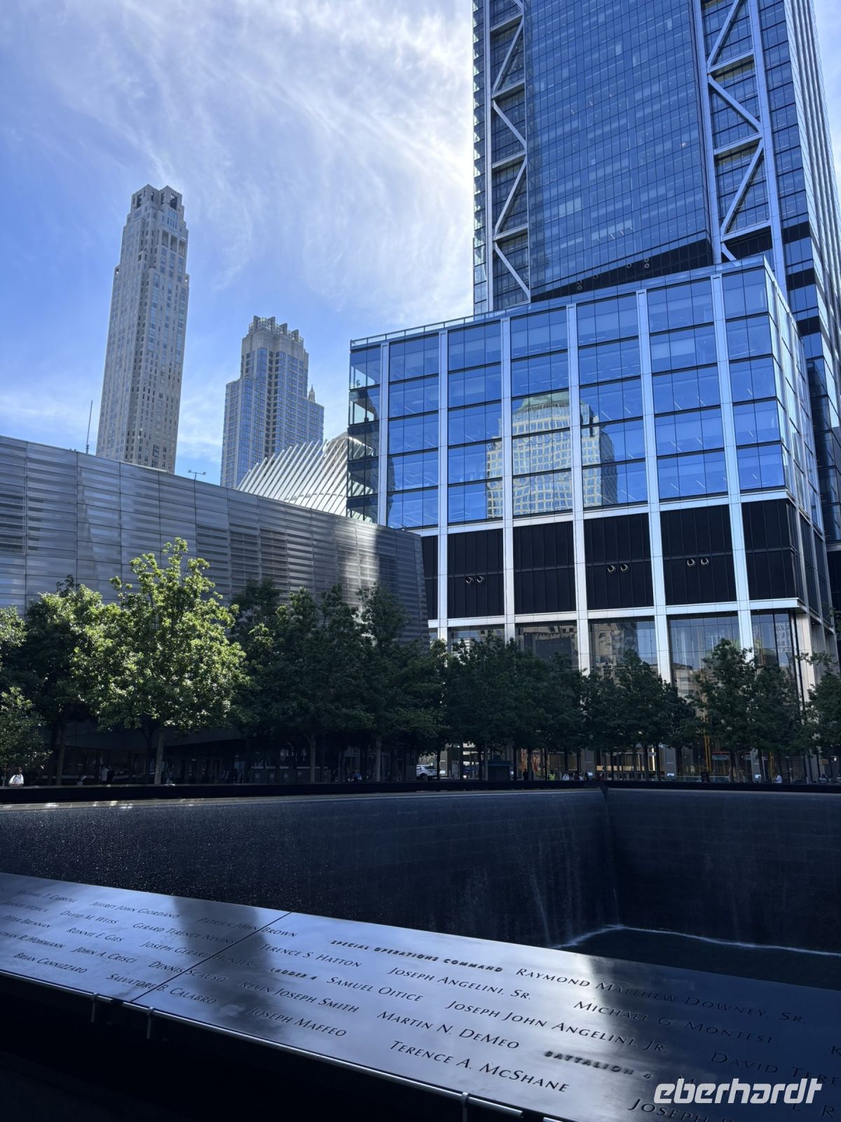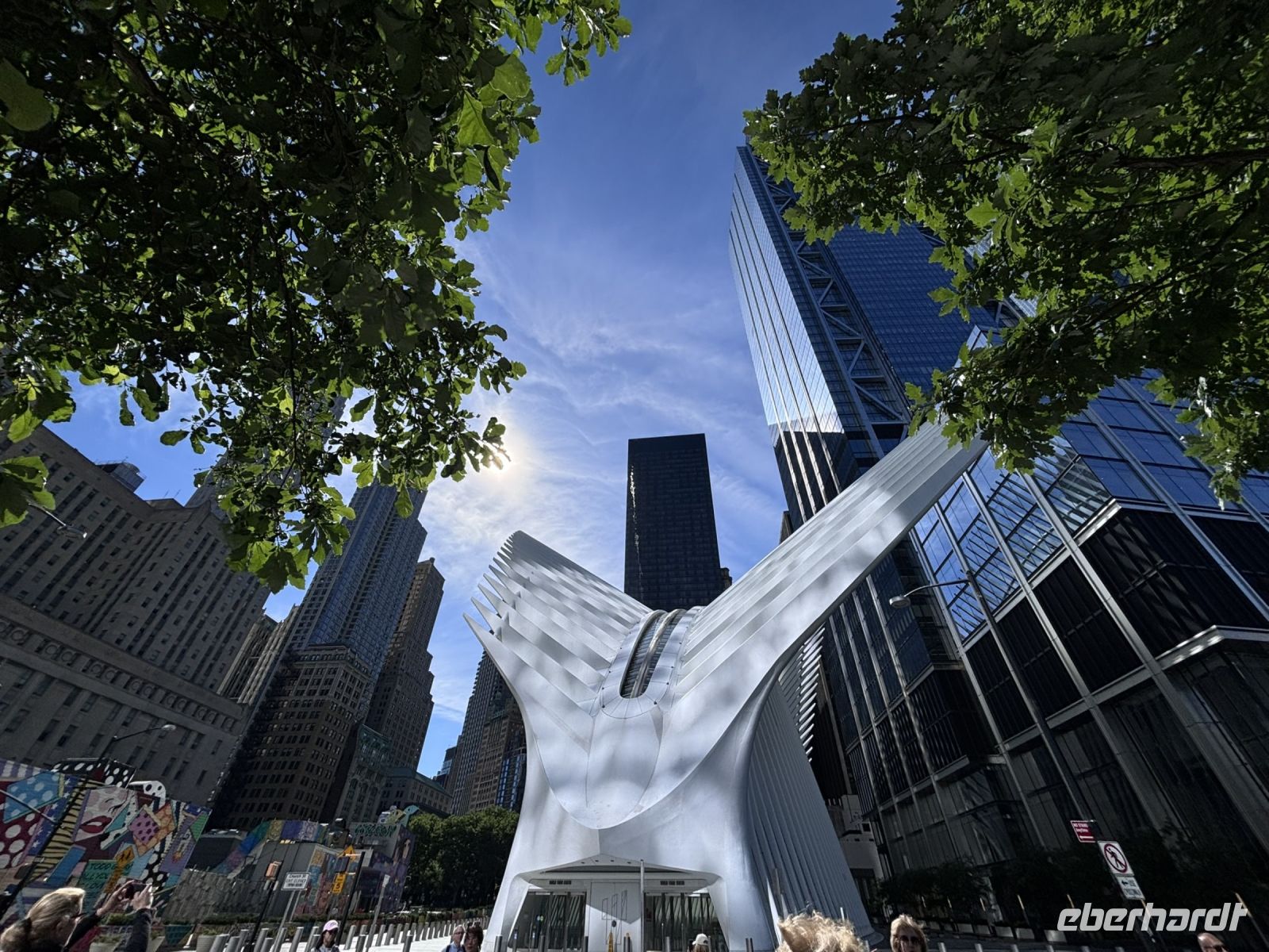 Weiter ging der Spaziergang zum berühmten Bullen, DAS Symbol der Börse in New York. Wir spazierten zum Ground Zero, dem 9/11 Memorial mit den zwei Brunnen, die nun anstelle der Zwillingstürme stehen. Neben dem Ground Zero steht wohl der schönste und teuerste Bahnhof der Welt - Oculus. Mit sieben Jahren Verspätung wurde der Bahnhof 2016 fertiggestellt und kostete stolze 4 Milliarden Dollar.
