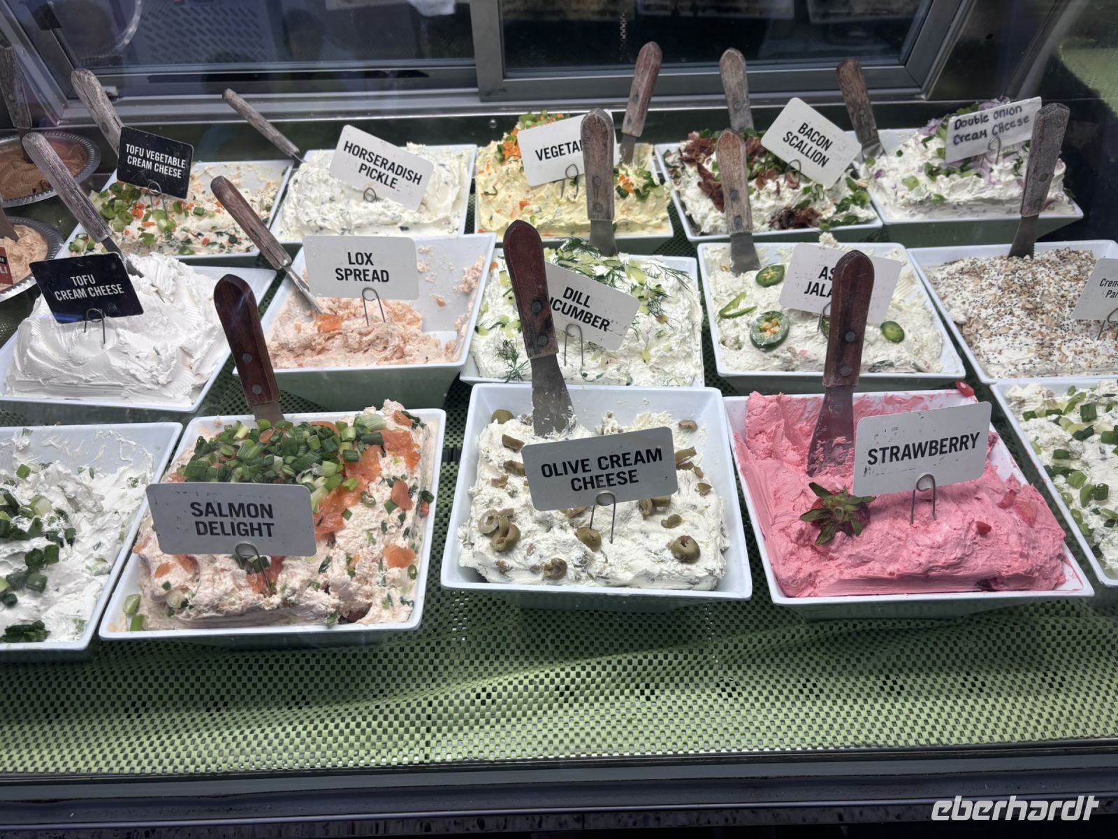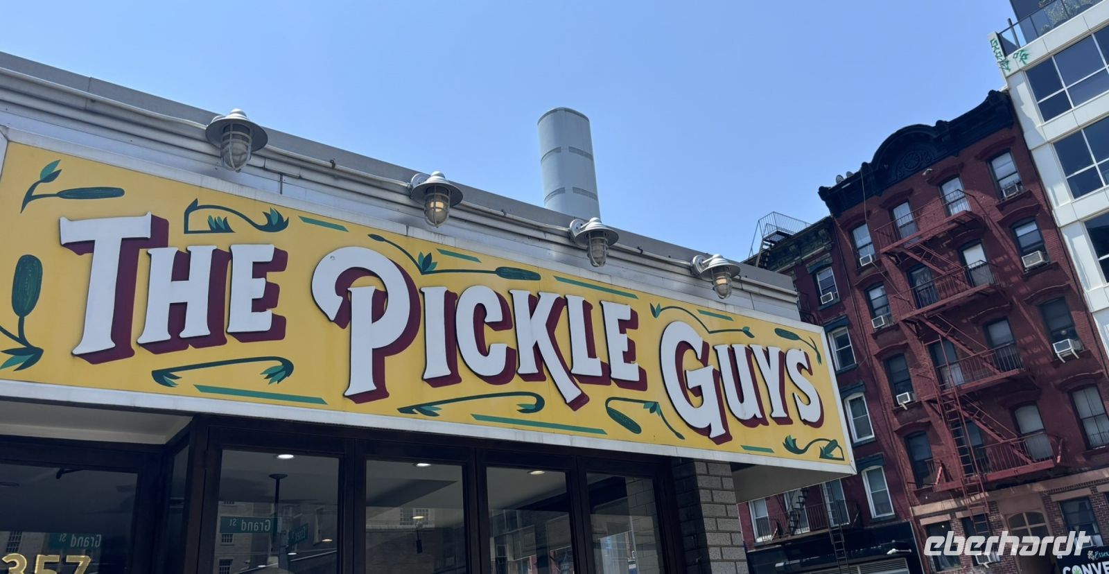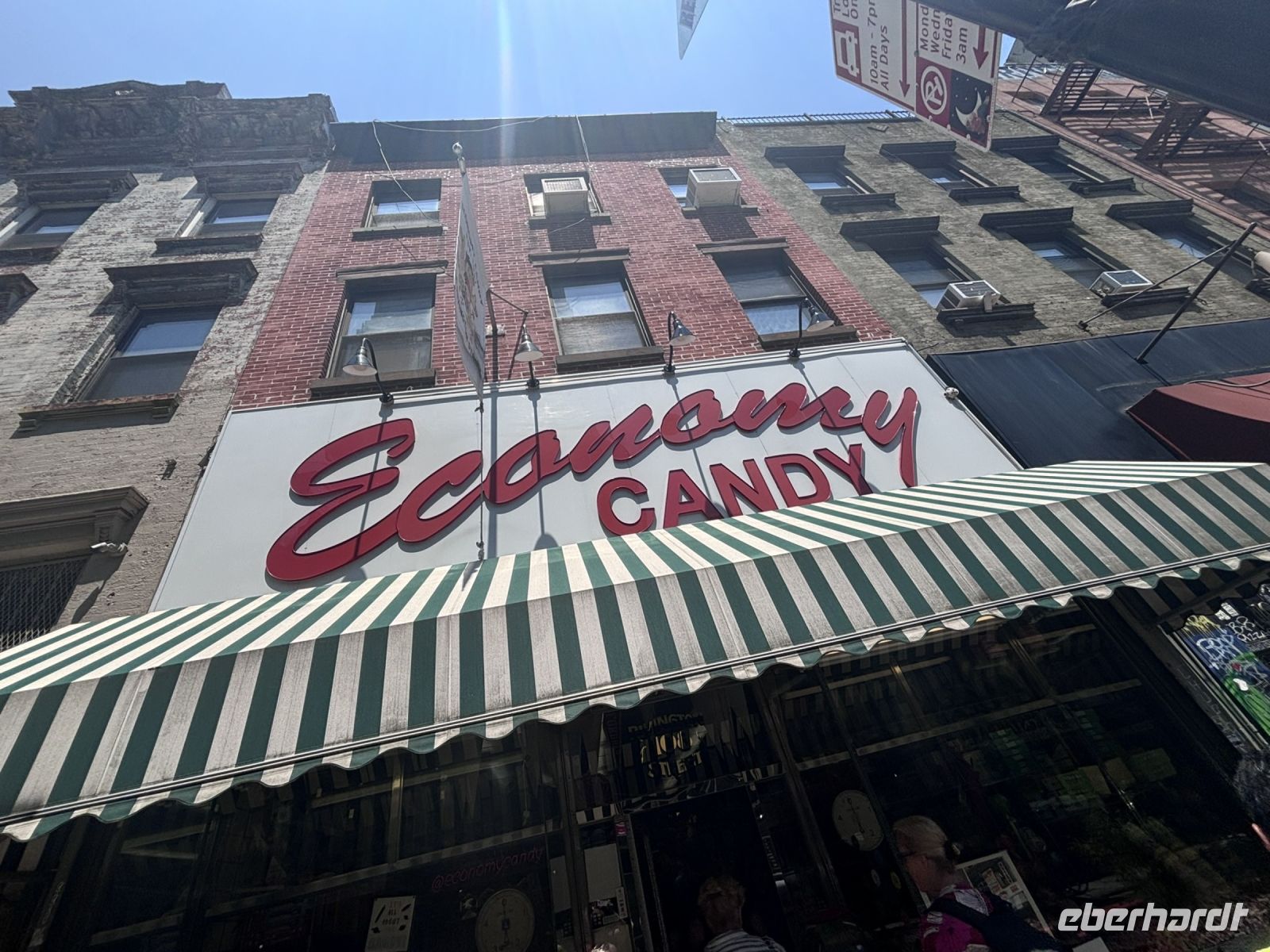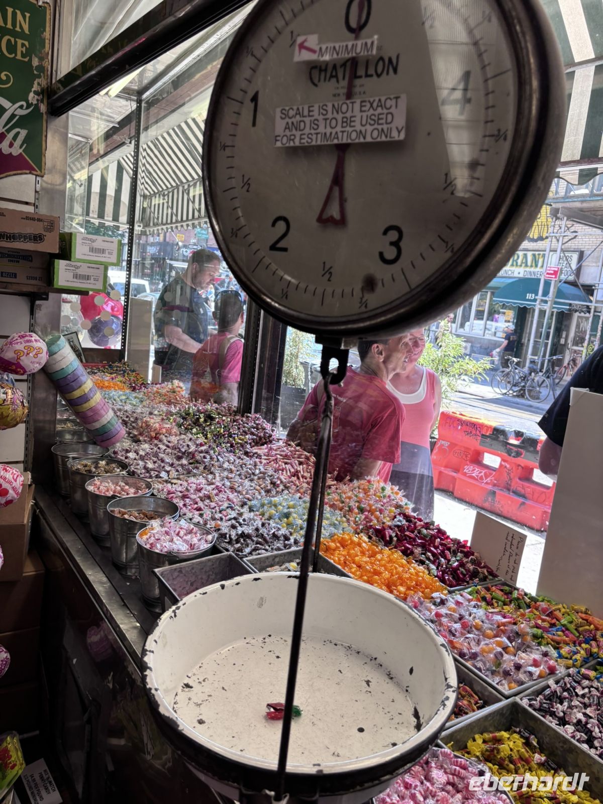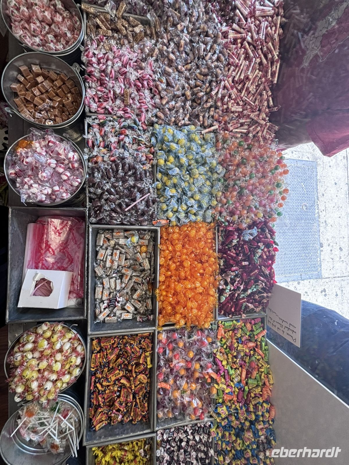 Die Lower Eastside hat auf Grund der vielen Kulturen, die sich hier vereinen, einiges an Kulinarik zu bieten. Weiter ging es zu „Kossar’s“ die Bagels und Bialys mit den verschiedensten Aufstrichen anboten. Wie verkosteten einen Bialy mit Frischkäse und Butter, ein jüdisches Gepäck, was Form und Aussehen eines Bagels hat, sich aber in der Zubereitung zum Bagel unterscheidet. Gleich daneben befand sich „The Pickle Guys“. Früher, als es noch keine Kühlmöglichkeiten gab, war Einlegen und Einwecken eine gute Variante, Lebensmittel haltbar zu machen. Seit 2002 setzt der Laden die Tradition der jüdischen Einwanderer fort und bietet eine beeindruckende Auswahl an eingelegtem Gemüse, von klassischen Dillgurken bis hin zu exotischeren Optionen wie eingelegtem Knoblauch und Mangos. Danach folgten süße Verkostungen wie Halva, eine traditionelle Süßigkeit, die hauptsächlich aus Sesampaste, Zucker und Nüssen besteht.