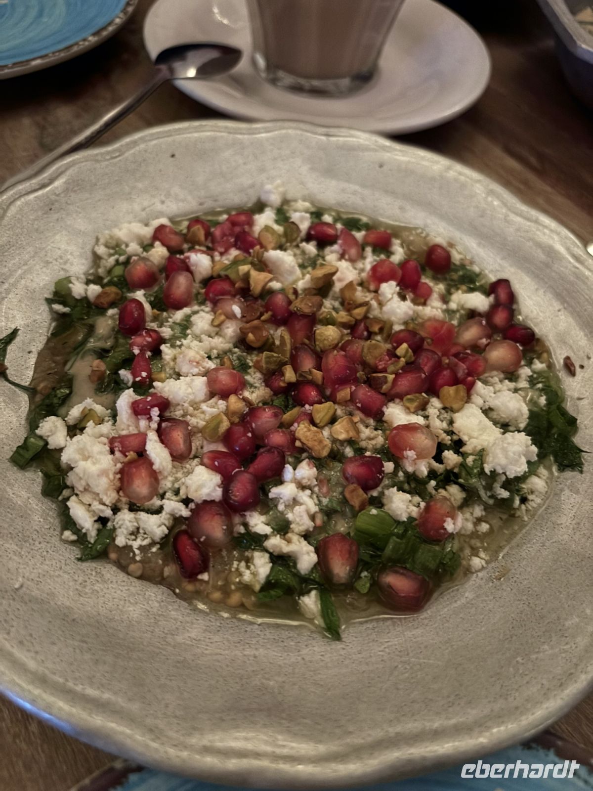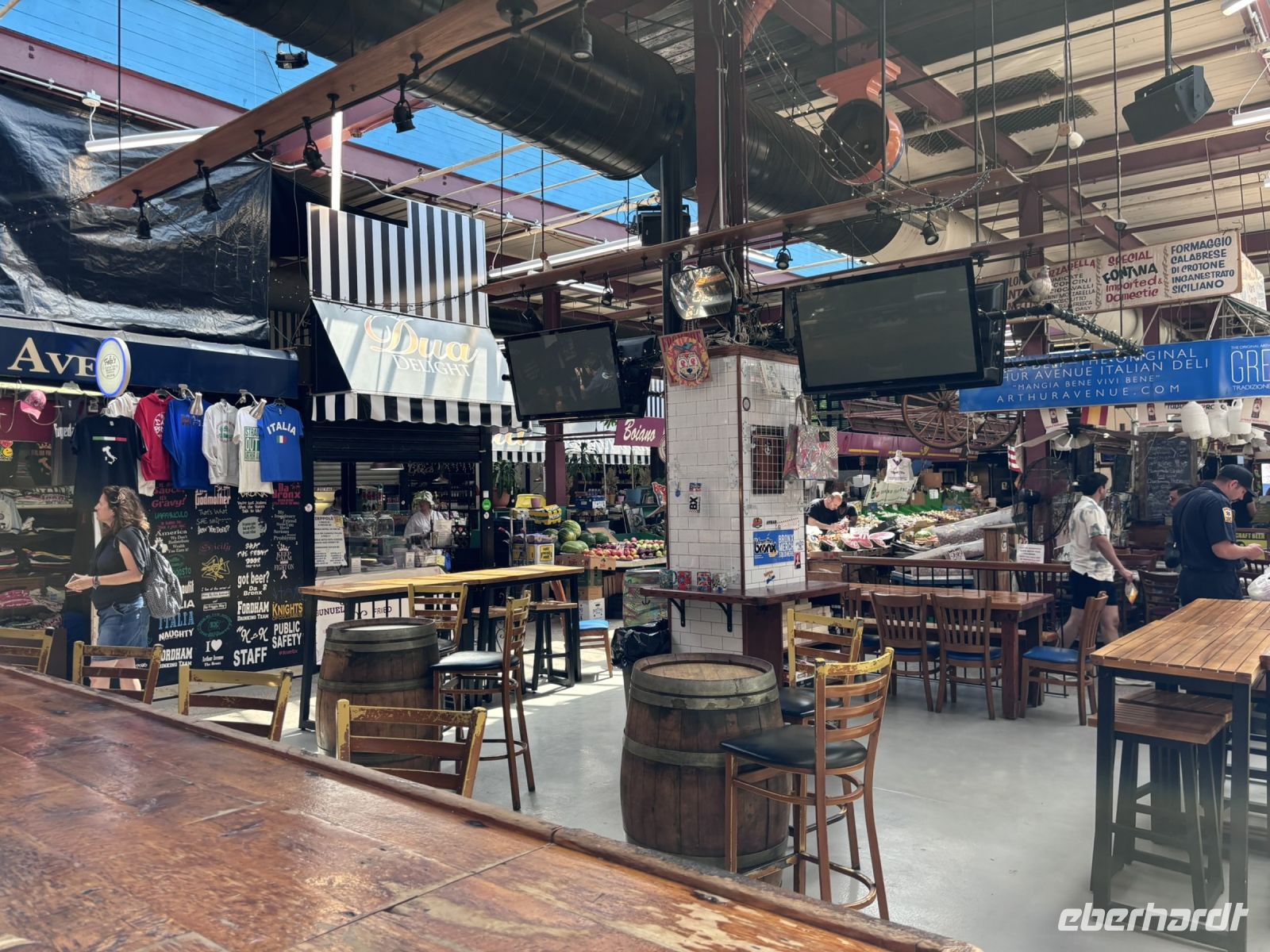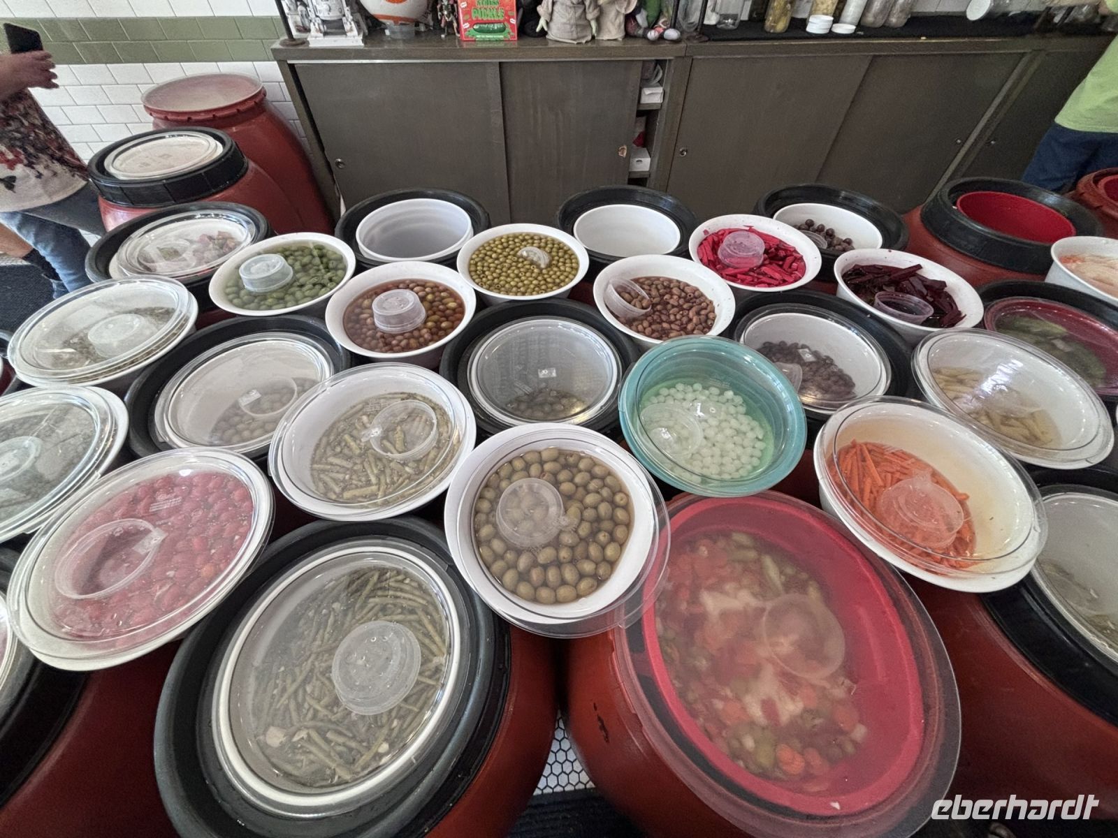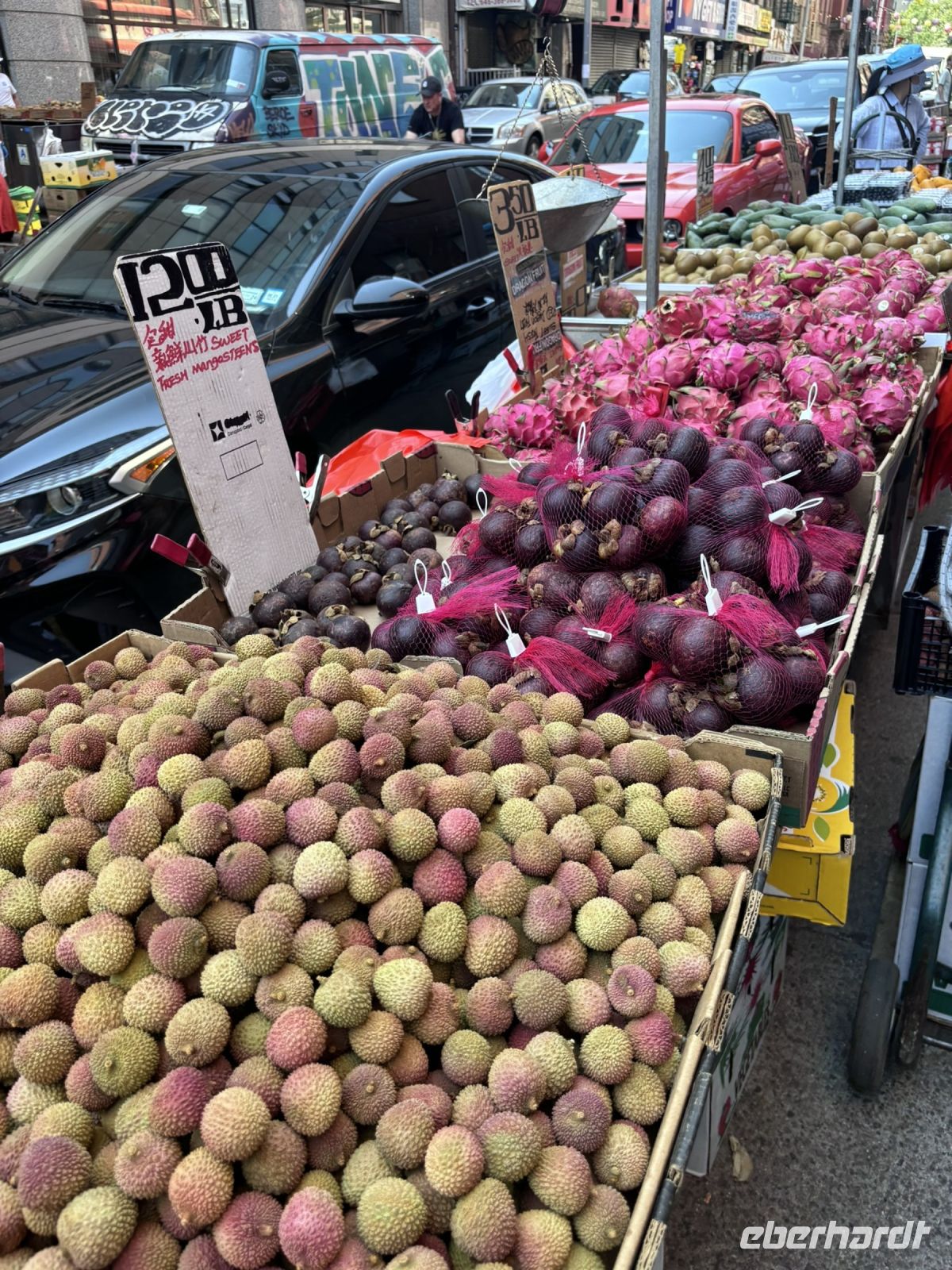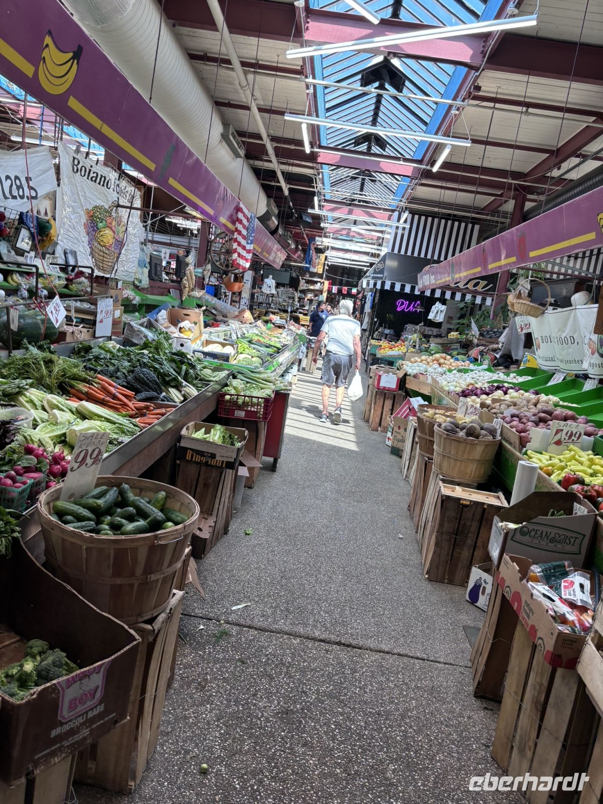Die Lower Eastside hat auf Grund der vielen Kulturen, die sich hier vereinen, einiges an Kulinarik zu bieten. Weiter ging es zu „Kossar’s“ die Bagels und Bialys mit den verschiedensten Aufstrichen anboten. Wie verkosteten einen Bialy mit Frischkäse und Butter, ein jüdisches Gepäck, was Form und Aussehen eines Bagels hat, sich aber in der Zubereitung zum Bagel unterscheidet. Gleich daneben befand sich „The Pickle Guys“. Früher, als es noch keine Kühlmöglichkeiten gab, war Einlegen und Einwecken eine gute Variante, Lebensmittel haltbar zu machen. Seit 2002 setzt der Laden die Tradition der jüdischen Einwanderer fort und bietet eine beeindruckende Auswahl an eingelegtem Gemüse, von klassischen Dillgurken bis hin zu exotischeren Optionen wie eingelegtem Knoblauch und Mangos. Danach folgten süße Verkostungen wie Halva, eine traditionelle Süßigkeit, die hauptsächlich aus Sesampaste, Zucker und Nüssen besteht.