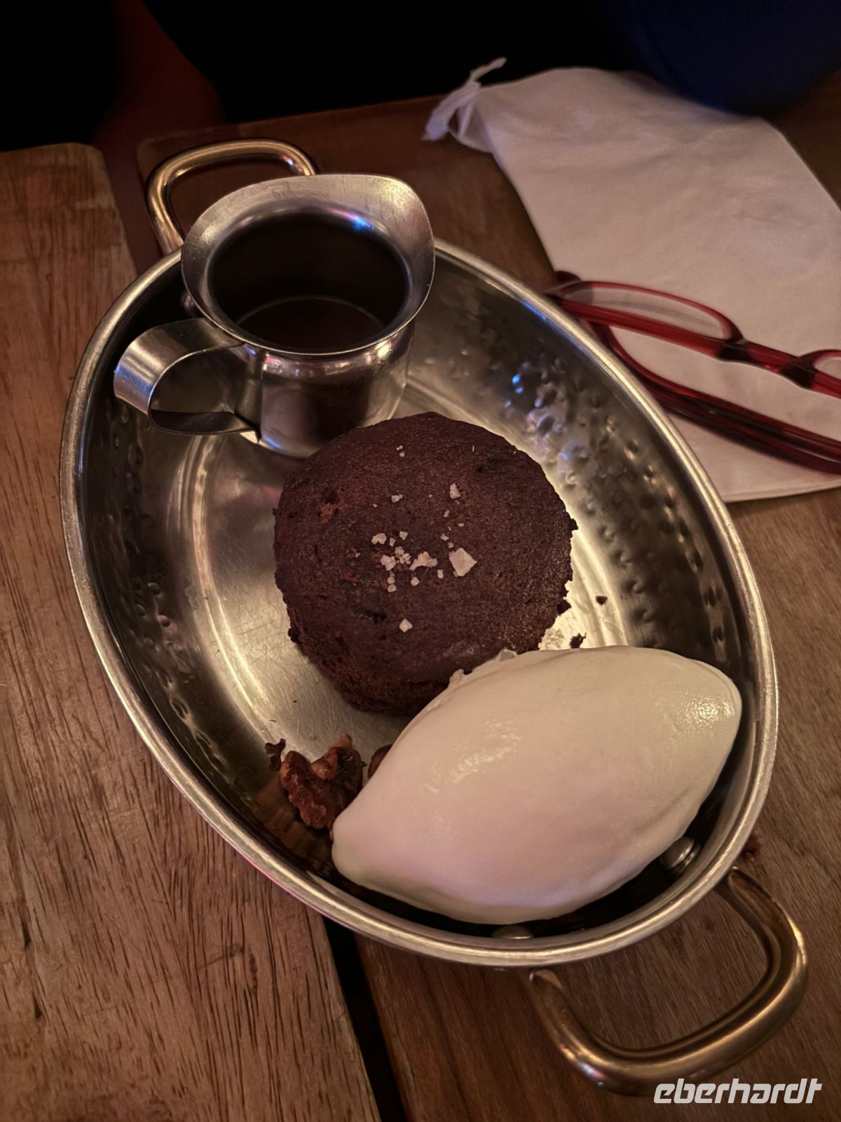 Aus dem Feinkostladen „Russ & Daughters“, der seit 1914 für seine Delikatessen bekannt ist, verkosteten wir einen kleinen Schokokuchen.
