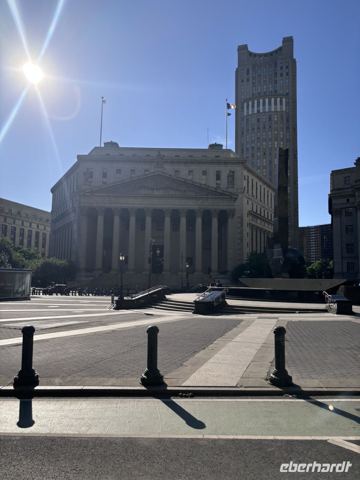 Der erste Halt war der Financial District im Süden Manhattans. Wir spazierten zur Trinity Kirche, eine der ältesten Kirchen aus dem Jahr 1846 mitten im Hochhausdschungel New Yorks. Gegenüber der Kirche ging eine kleine Straße zur berühmten Wall Street, wo sich die Börse und die Federal Hall mit der George Washington Statue befand. Eine andere bekannte Statue stand gegenüber der New Yorker Börse - The fearless Girl, das furchtlose Mädchen. Das kleine Mädchen bot jahrelang dem Wall Street Bullen die Stirn, bis es im Dezember 2018 gegenüber der New Yorker Börse platziert wurde. Sie sollte als Symbol für mehr Frauen in Führungspositionen dienen.